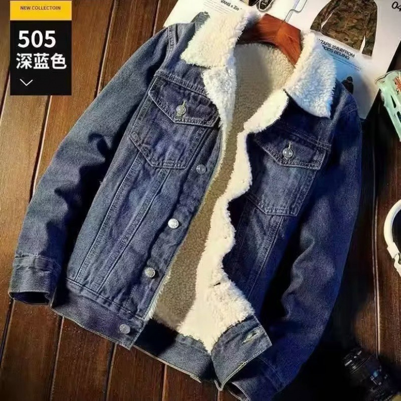 겨울 벨벳 데님 재킷 남자의 두꺼운 따뜻한 양고기 벨벳 데님 재킷 가을과 겨울 느슨한 플러스 사이즈 면 옷 유행스토어 가기