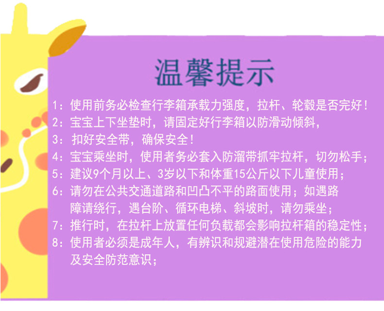 크로스보더 귀여운 여행가방 24inch 어린이 휴대용 쿠션 여행용 유모차 설치가 쉬운 트롤리 박스 안전 쿠션