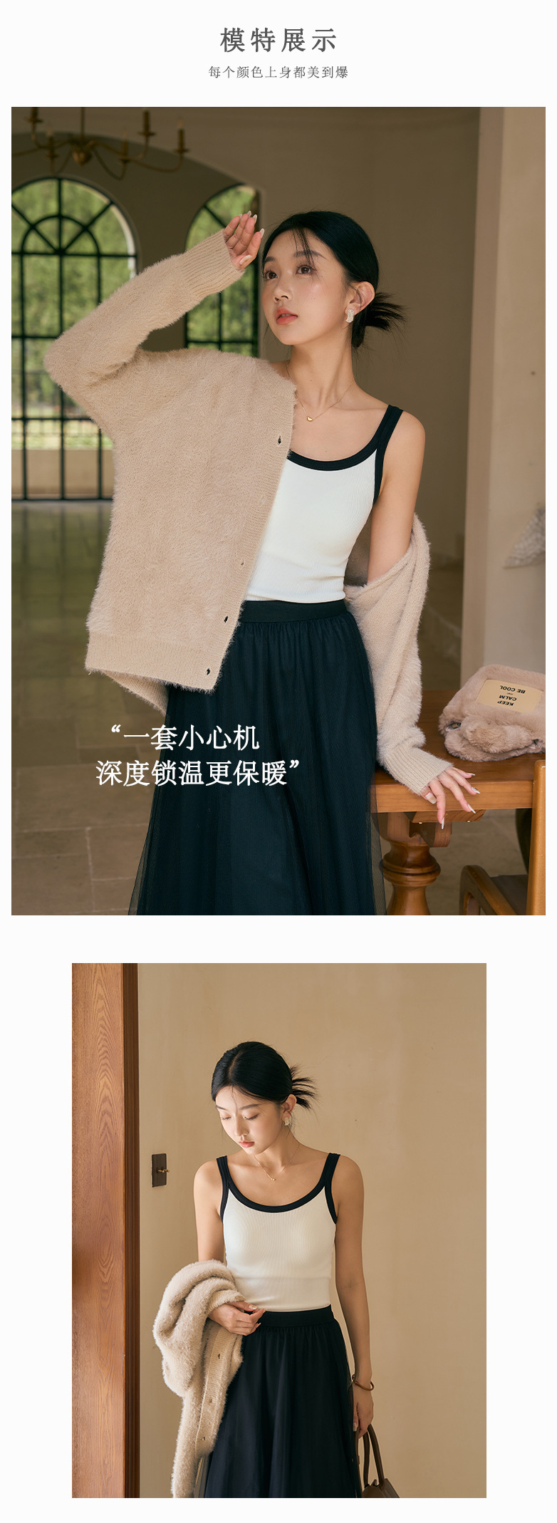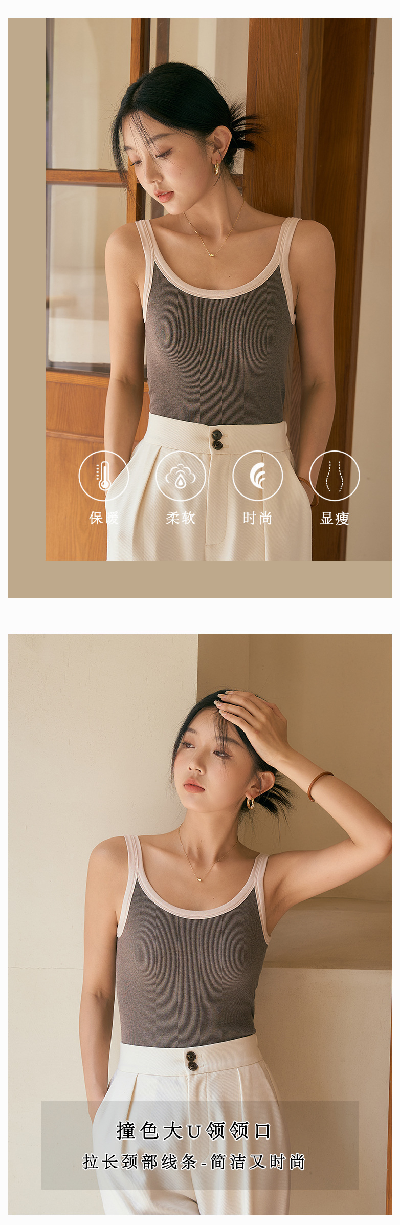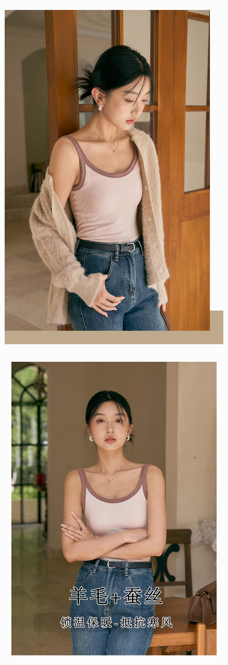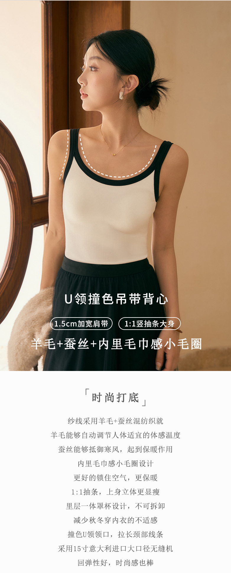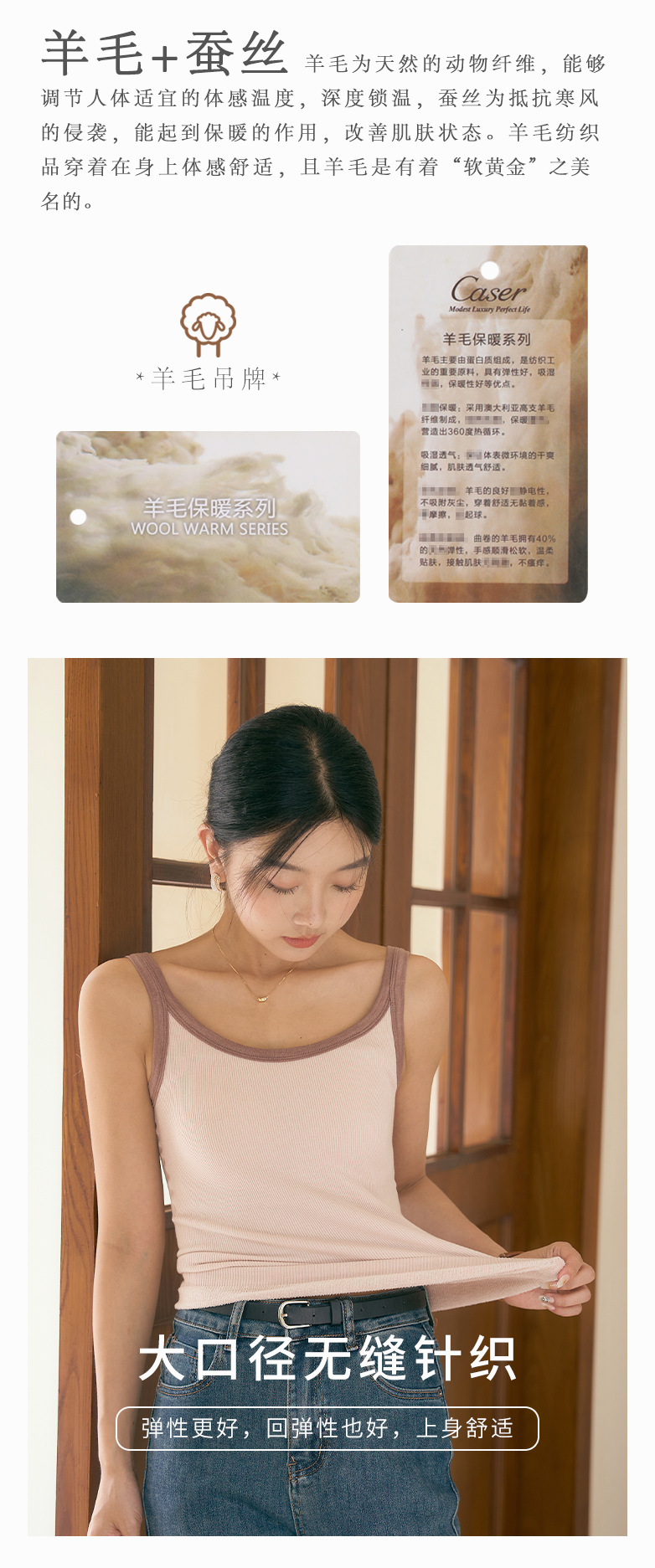 여성용 울 실크 따뜻한 조끼 컵 테리 착용 세로 스트라이프 모든 매치 베이스 슬링 2381