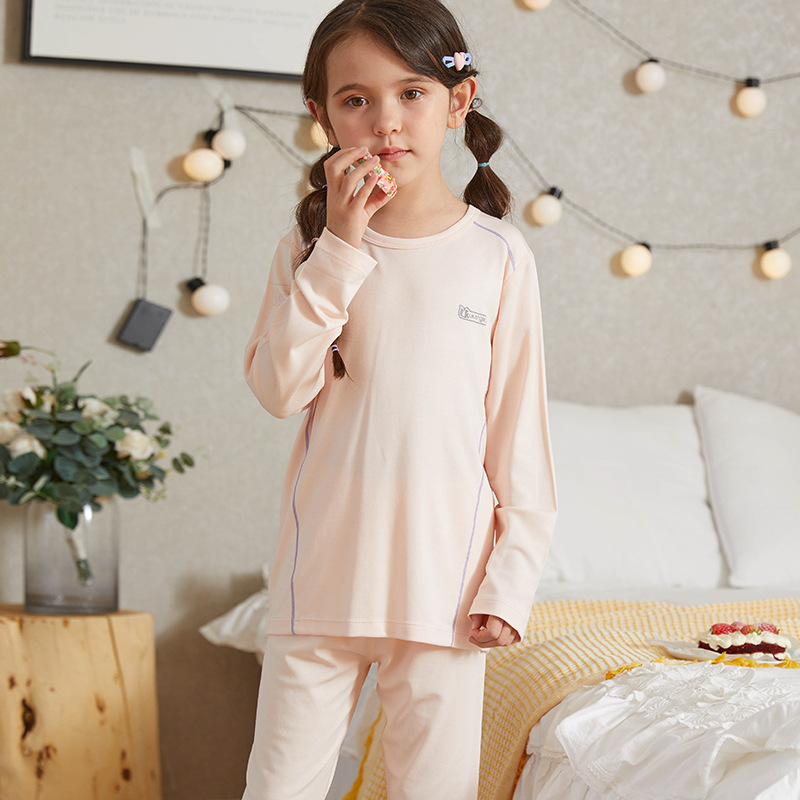 봄과 가을 새로운 아기 가정 의류 Lanjing Modal 어린이 잠옷 세트 여자 남자의 아이스 실크 에어컨 옷 도매