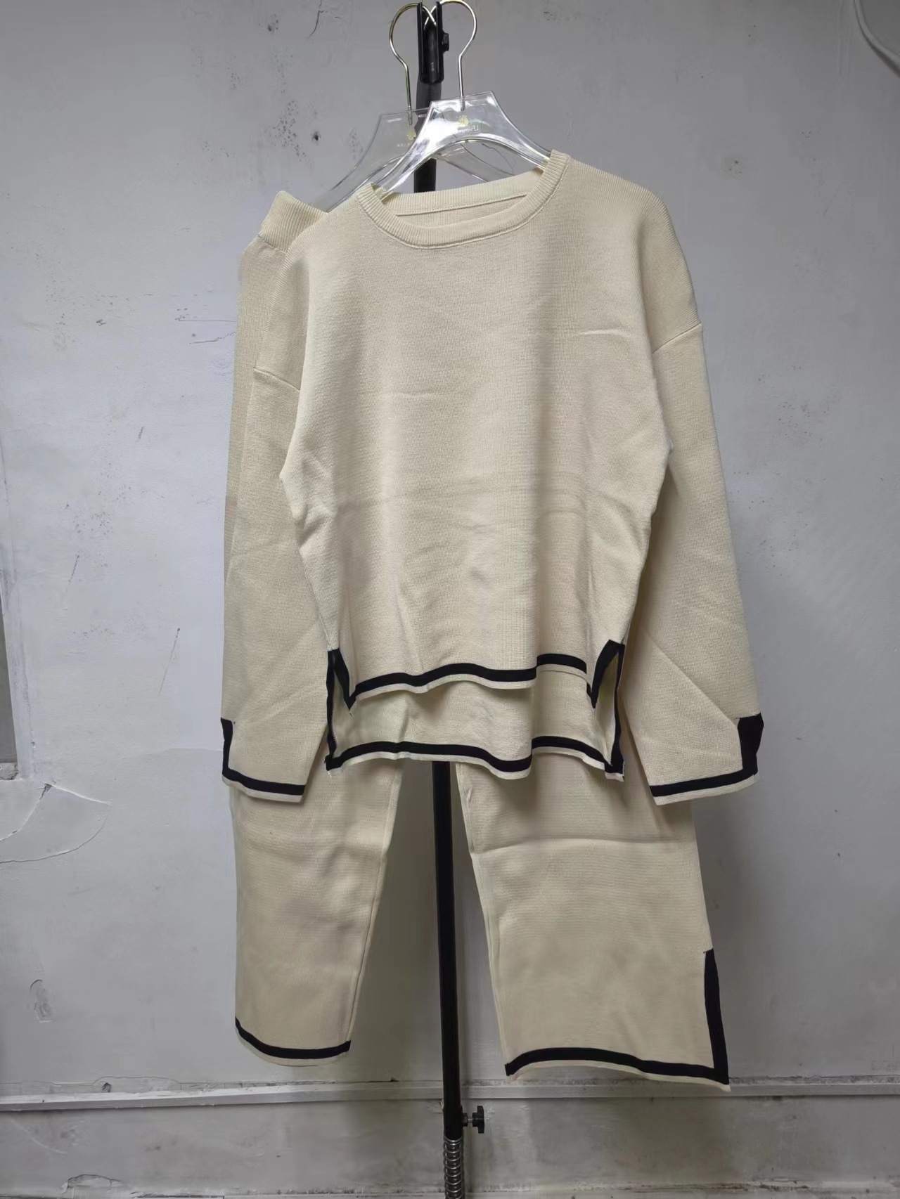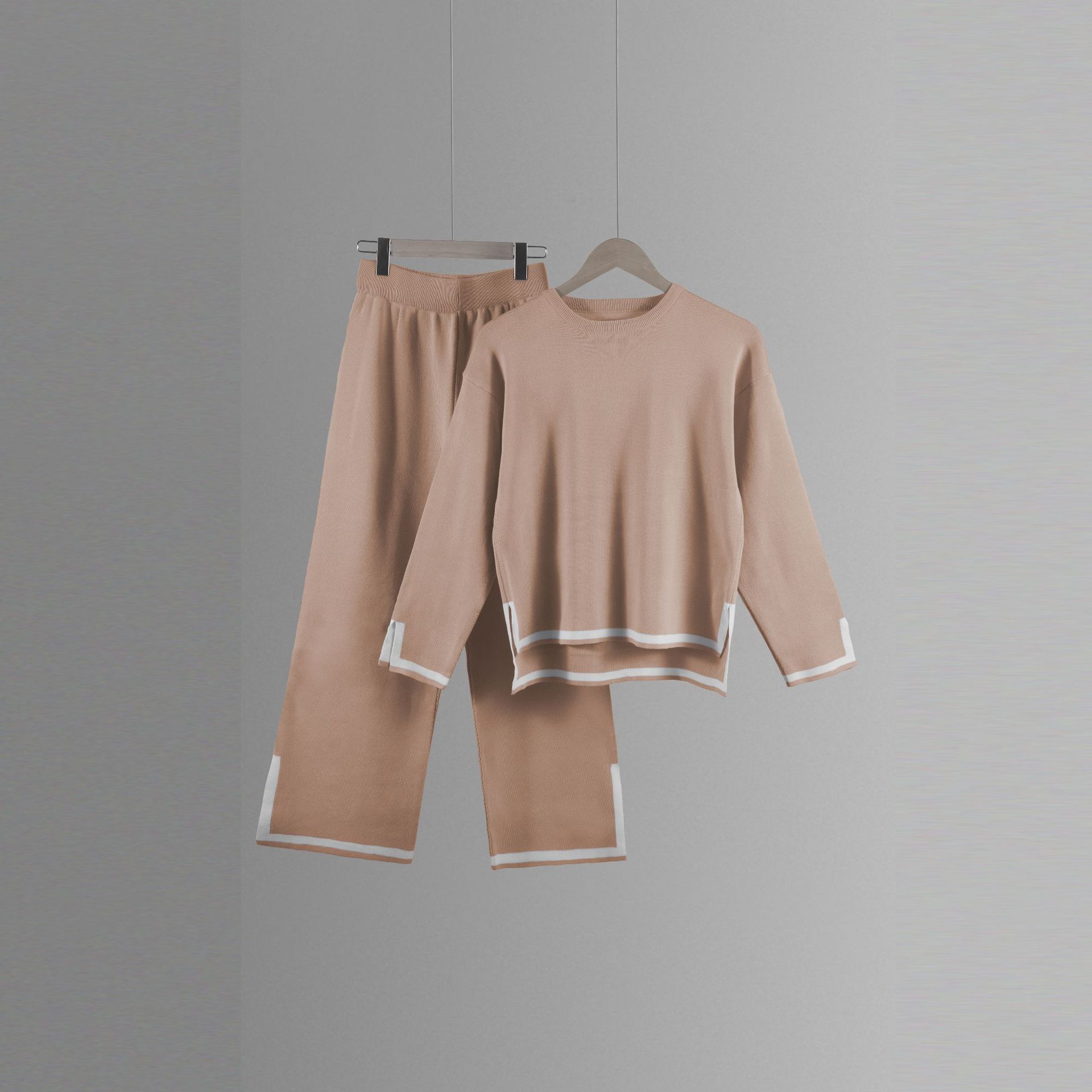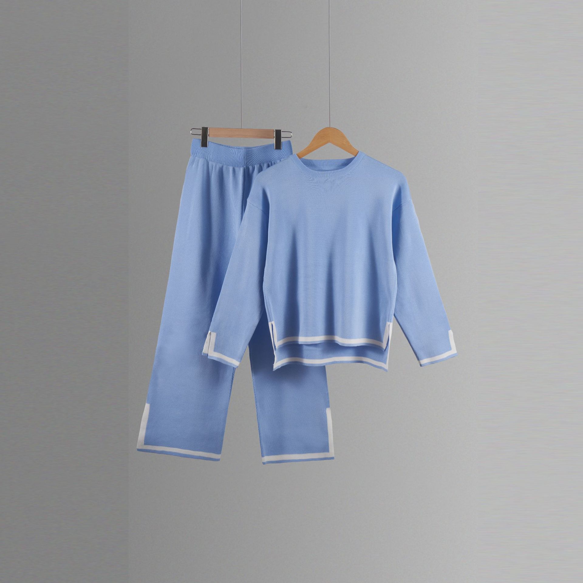 유럽과 미국 크로스 국경 새로운 가정 의류 세트 2 피스 긴 소매 니트 스웨터 재킷 넓은 다리 바지 캐주얼 세트