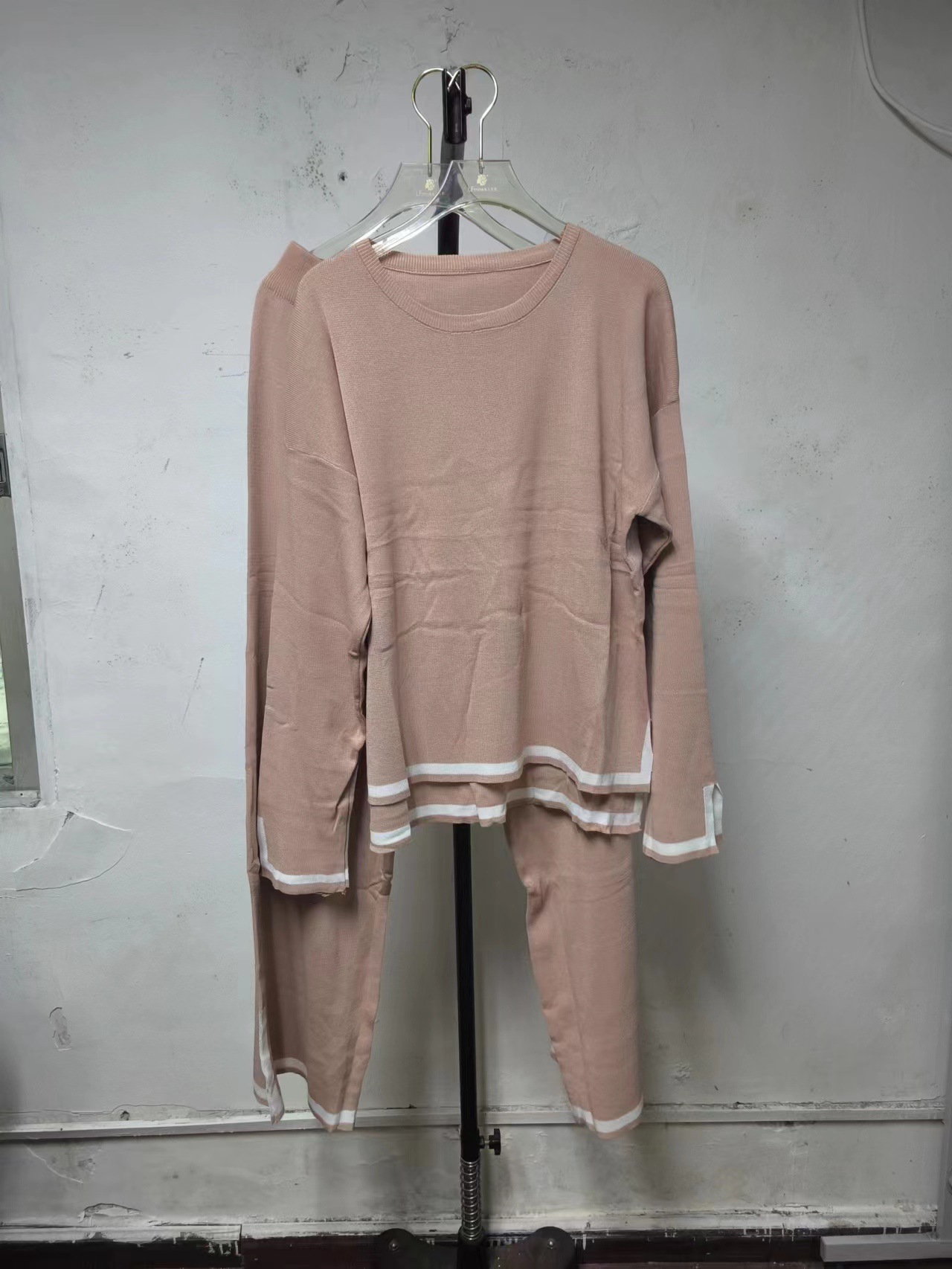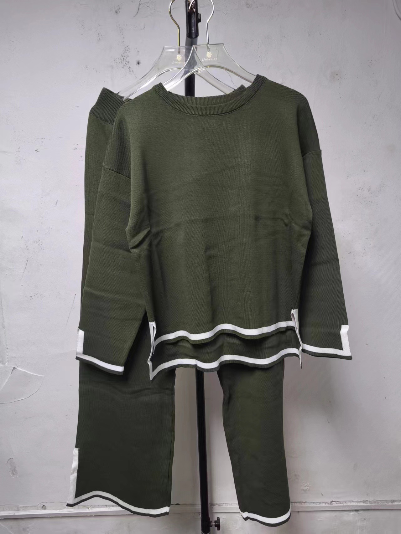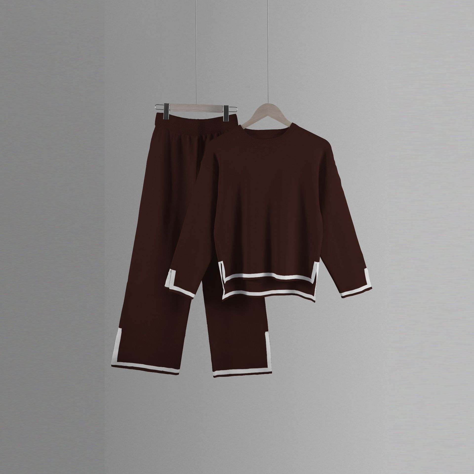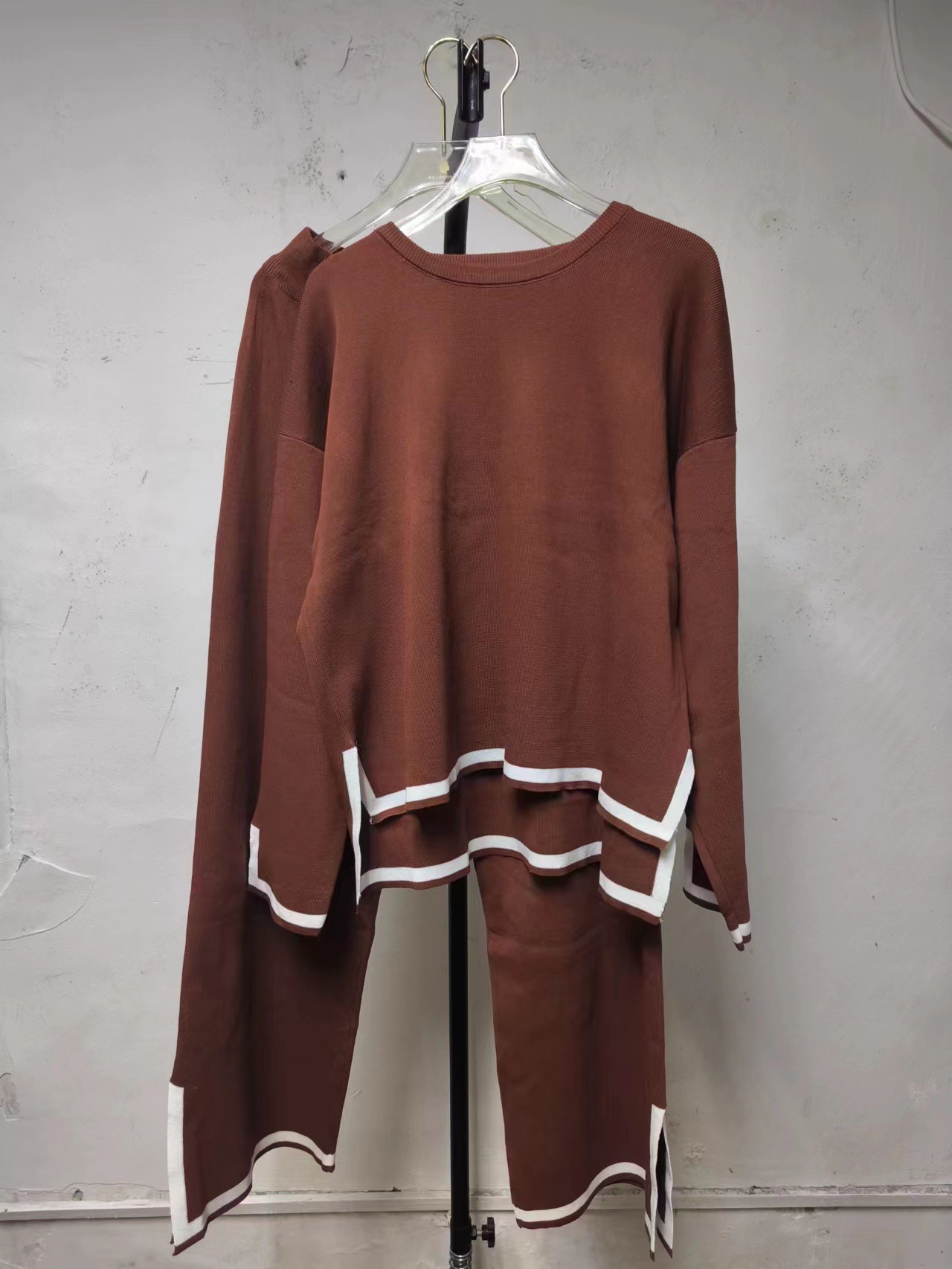 유럽과 미국 크로스 국경 새로운 가정 의류 세트 2 피스 긴 소매 니트 스웨터 재킷 넓은 다리 바지 캐주얼 세트