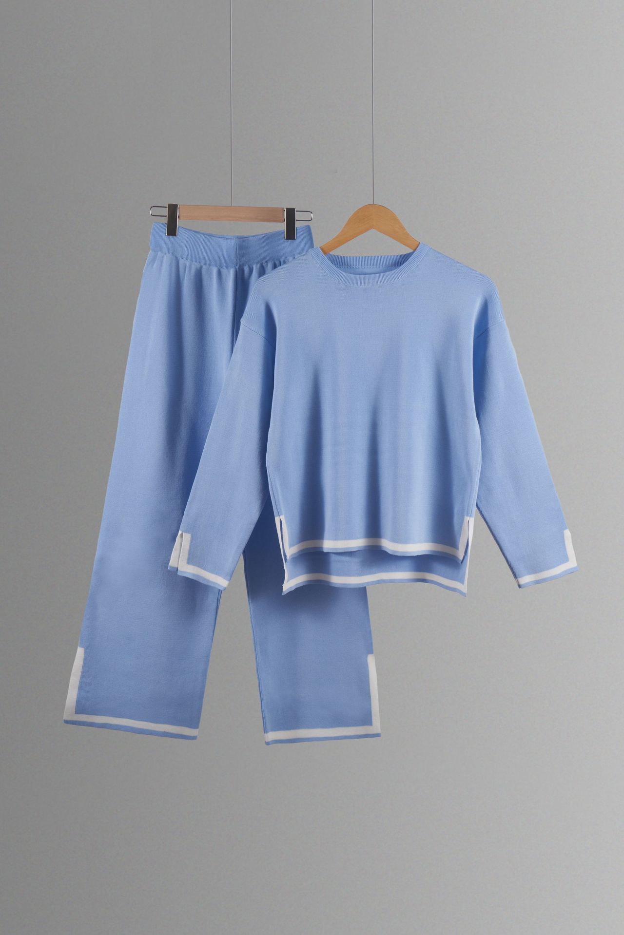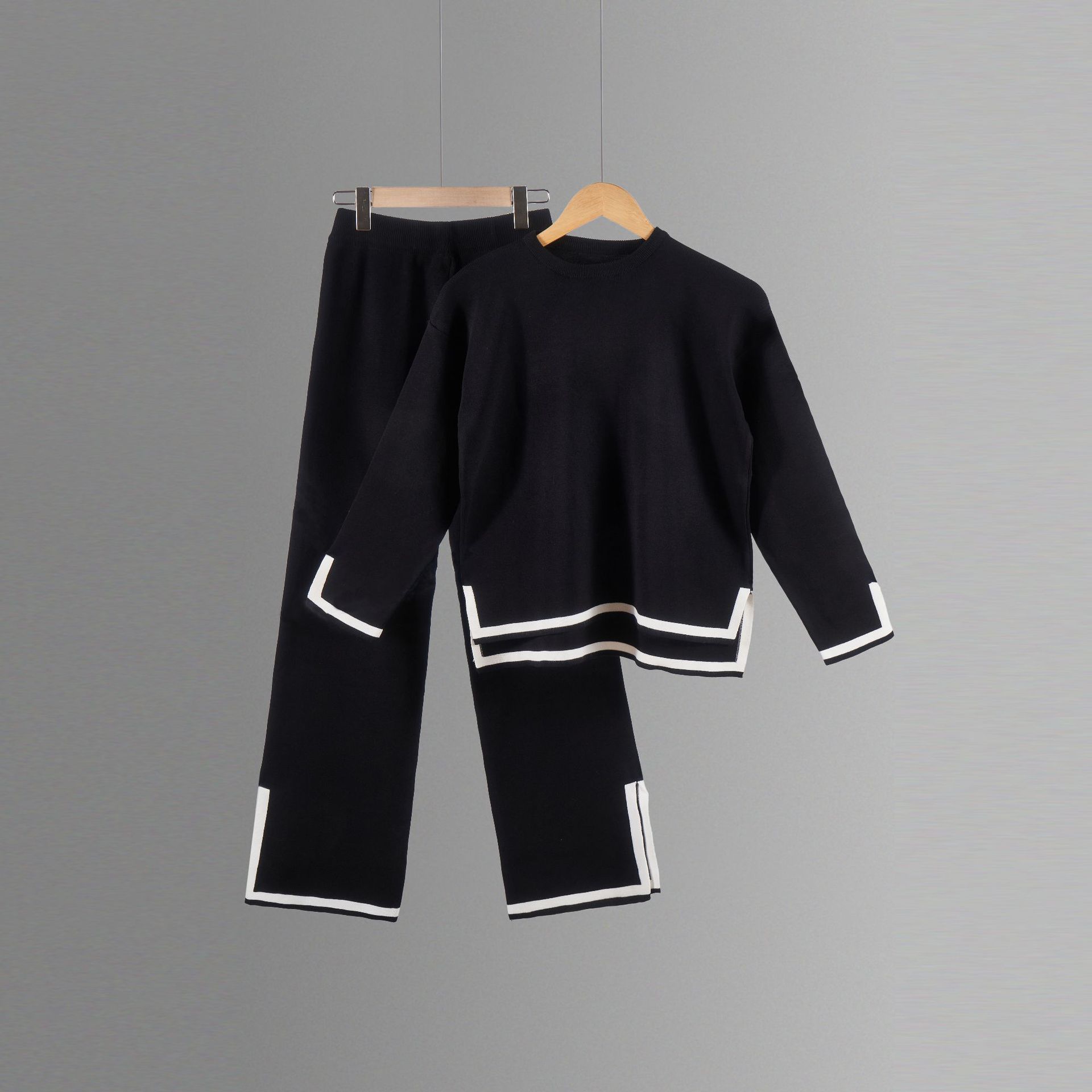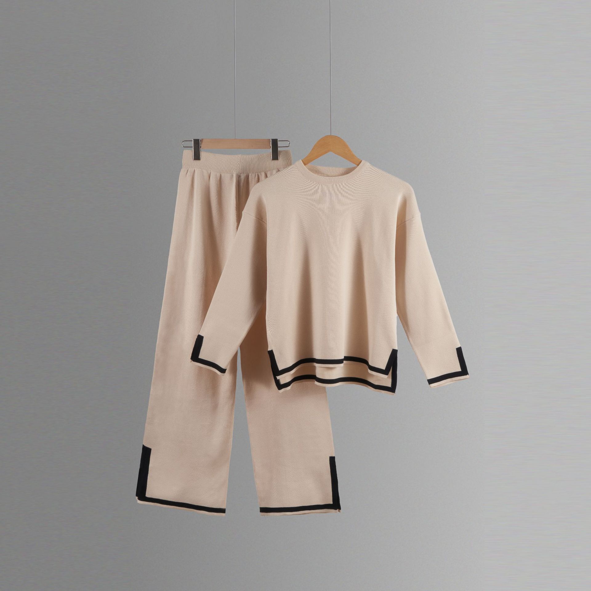 유럽과 미국 크로스 국경 새로운 가정 의류 세트 2 피스 긴 소매 니트 스웨터 재킷 넓은 다리 바지 캐주얼 세트스토어 가기