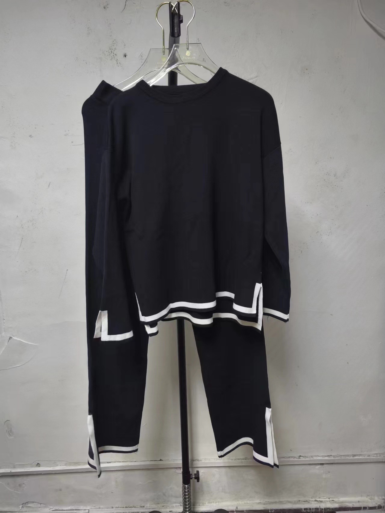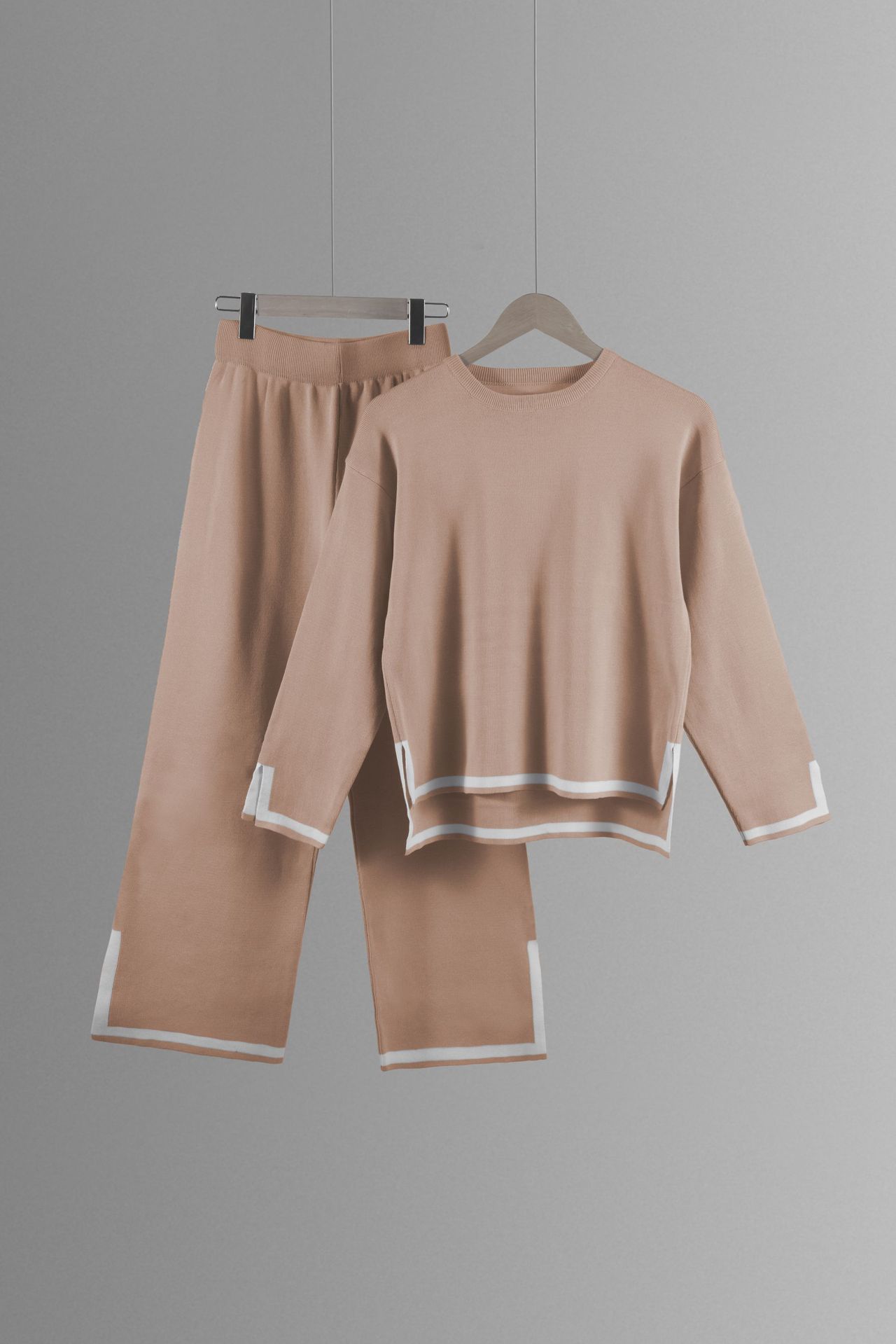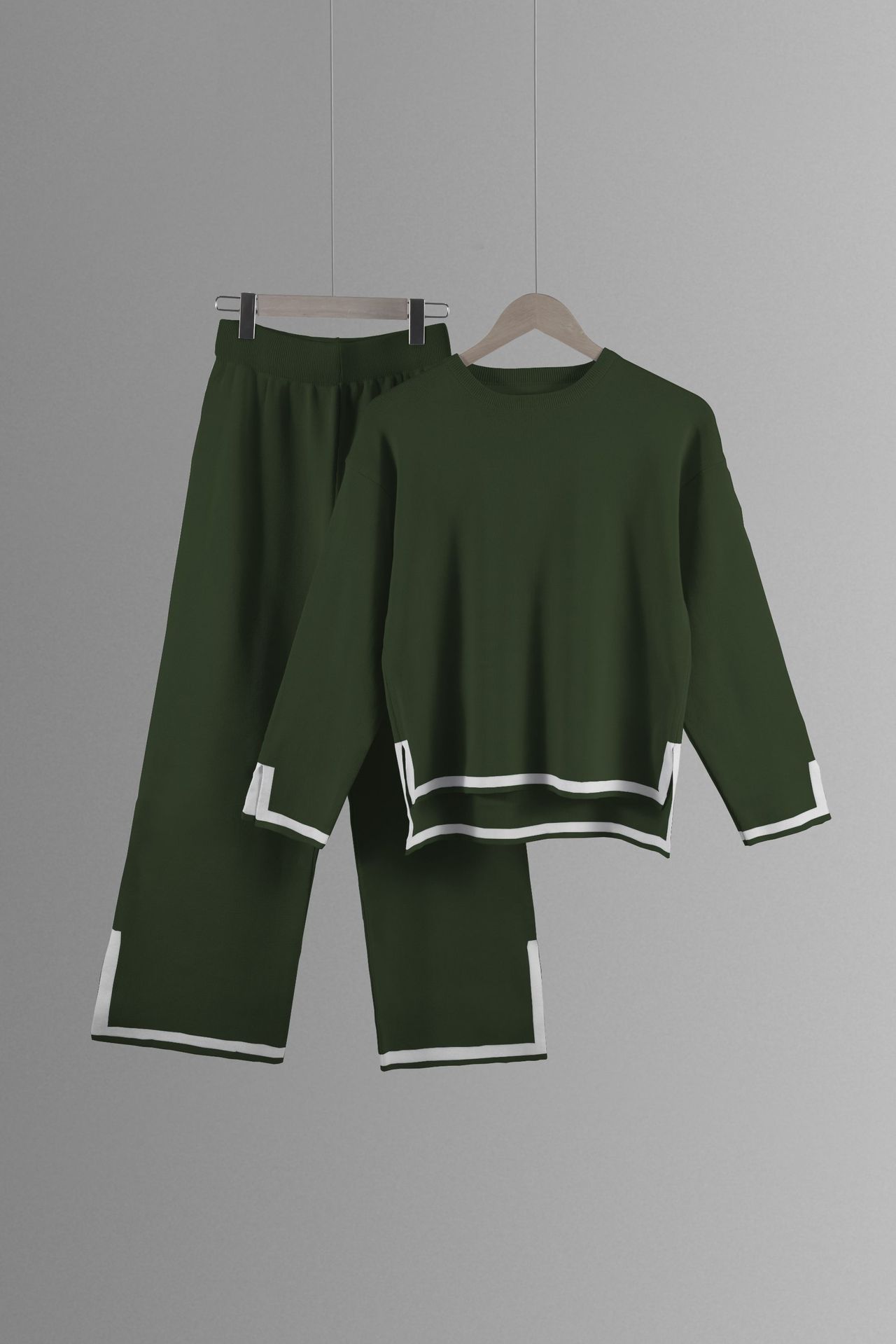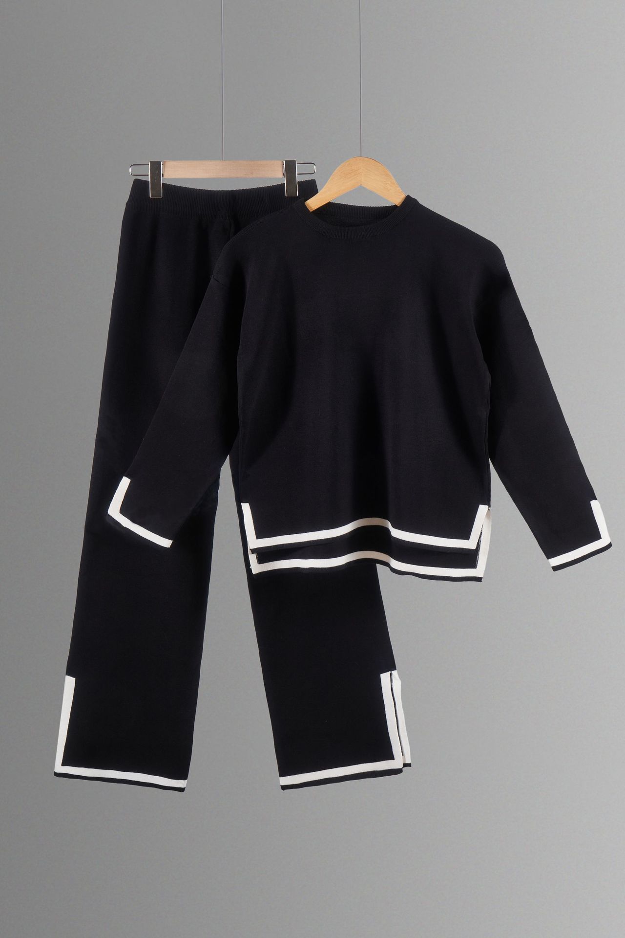 유럽과 미국 크로스 국경 새로운 가정 의류 세트 2 피스 긴 소매 니트 스웨터 재킷 넓은 다리 바지 캐주얼 세트스토어 가기