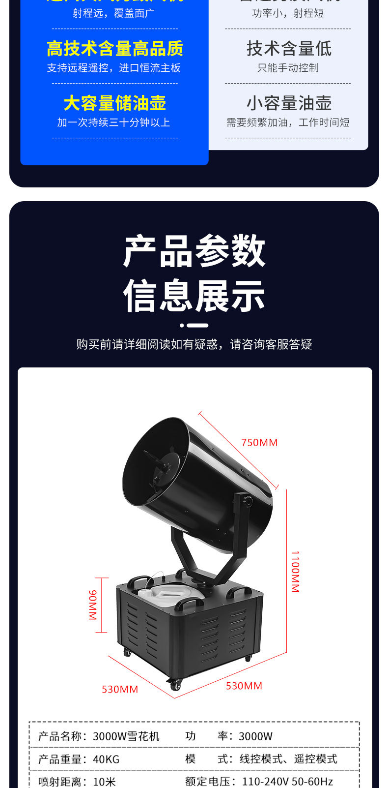 • 【듀얼 분사구/4000와트/목재 포장】 회전형 눈꽃 기계 + 눈꽃 오일 3통