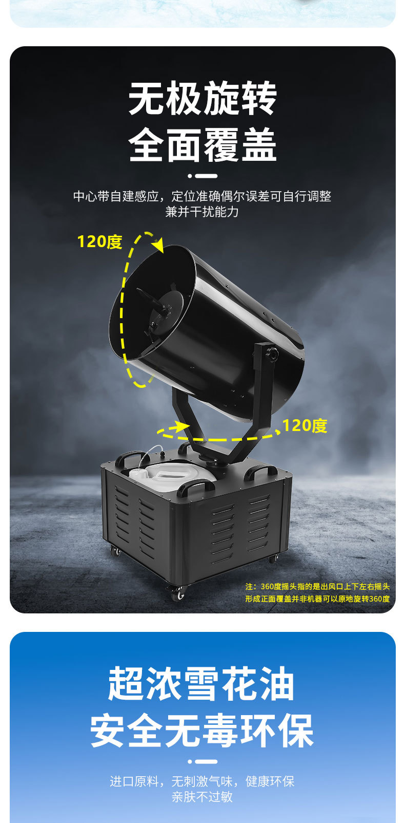 • 【듀얼 노즐/3500와트/항공 케이스 포장】 무빙 스노우 머신 + 스노우 오일 2통