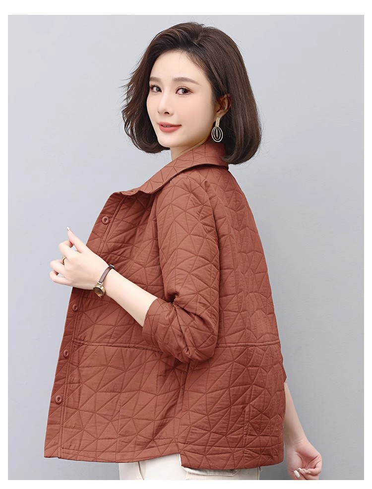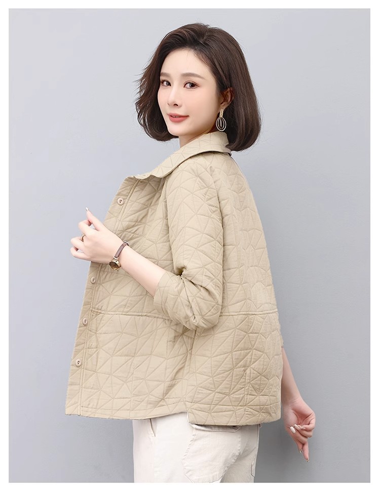 여성용 다이아몬드 패턴 캐주얼 숏자켓, 2026년 봄/가을 신상, 작은 체형의 엄마들을 위한 예술적인 분위기의 루즈핏 탑 자켓