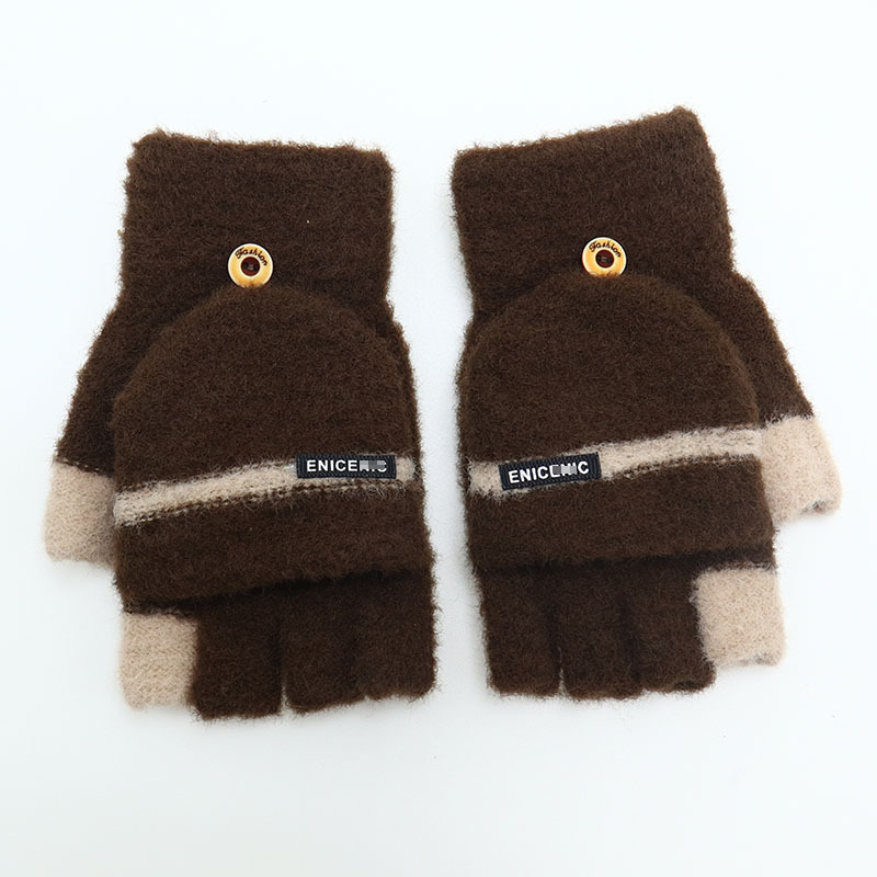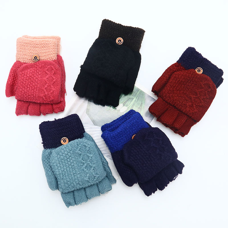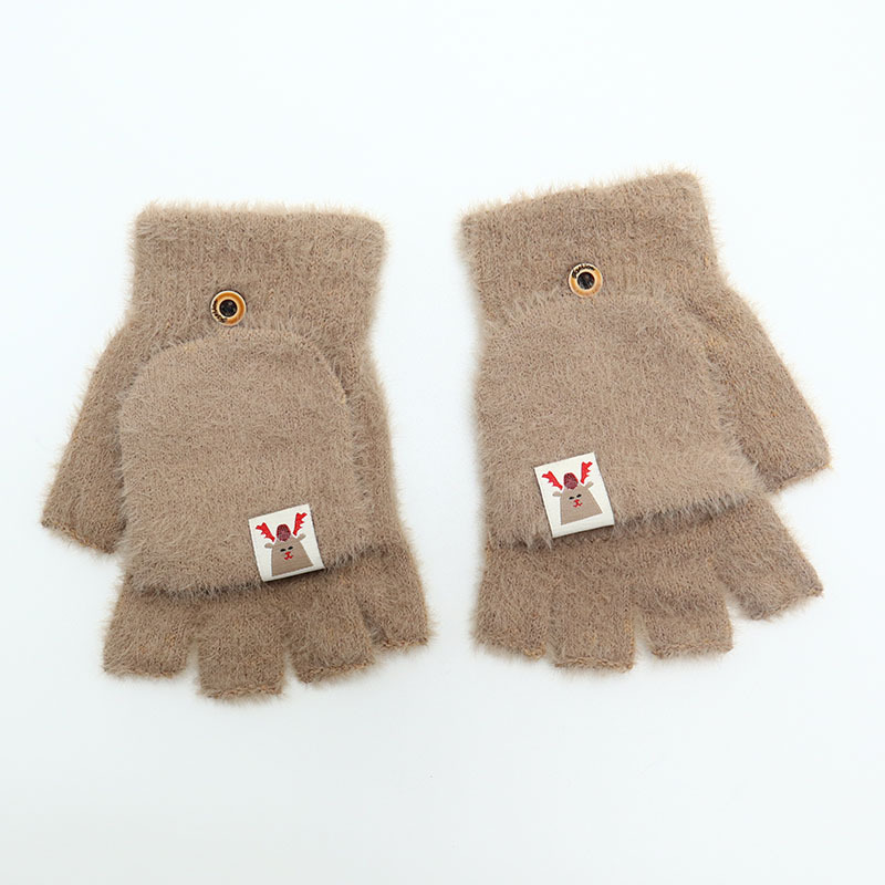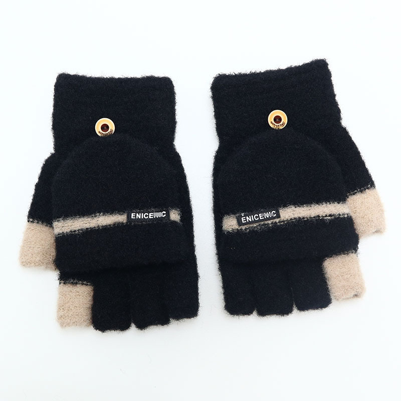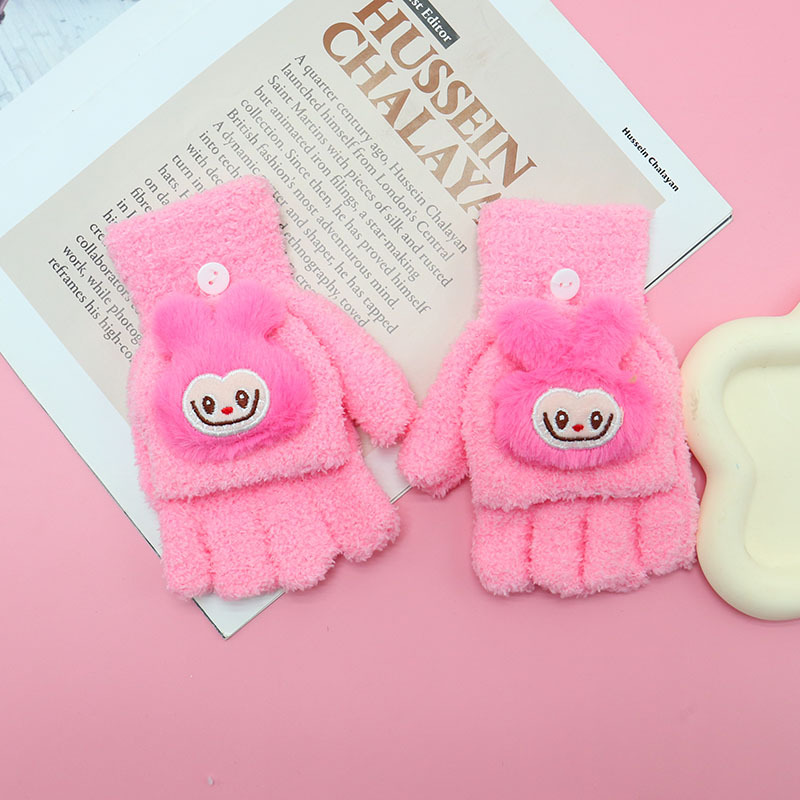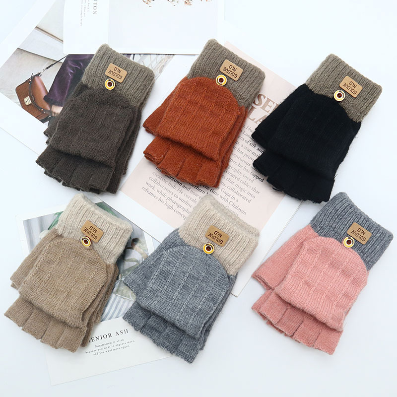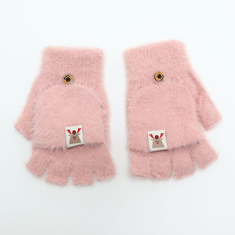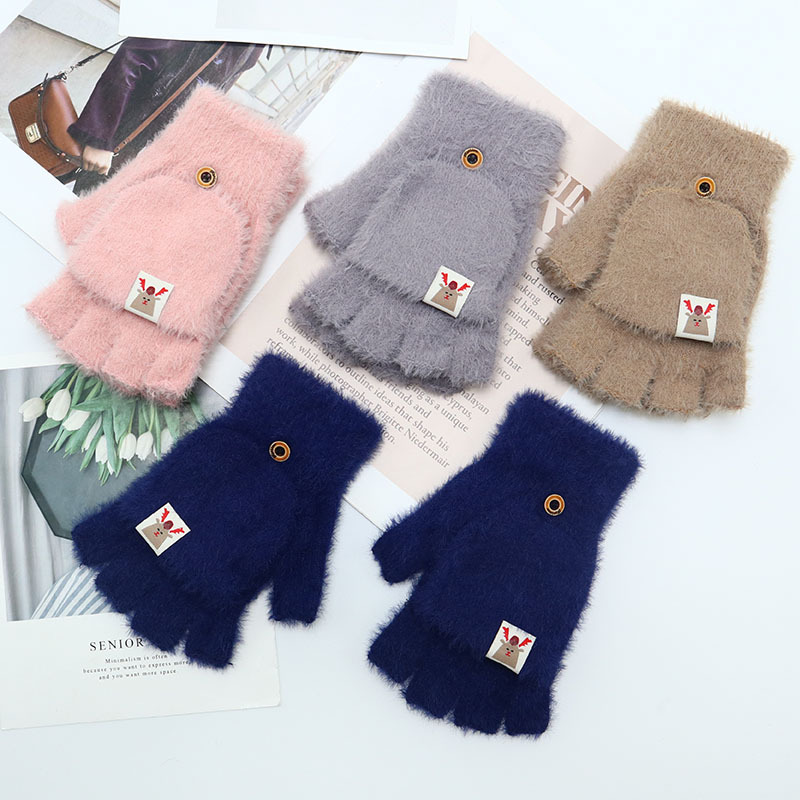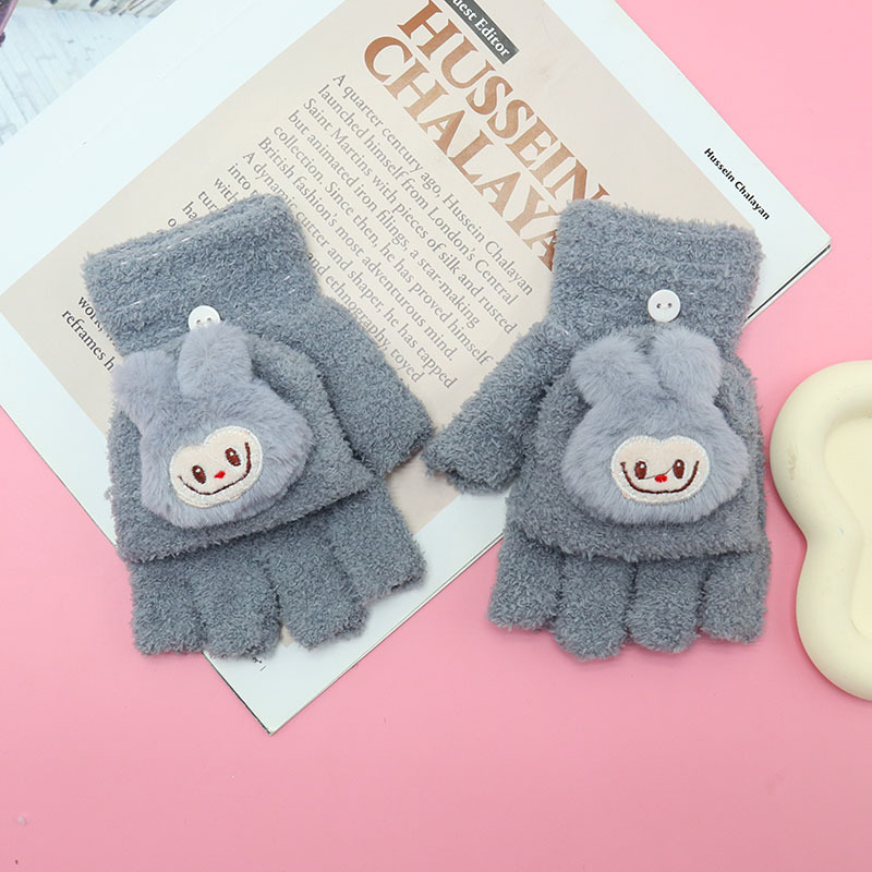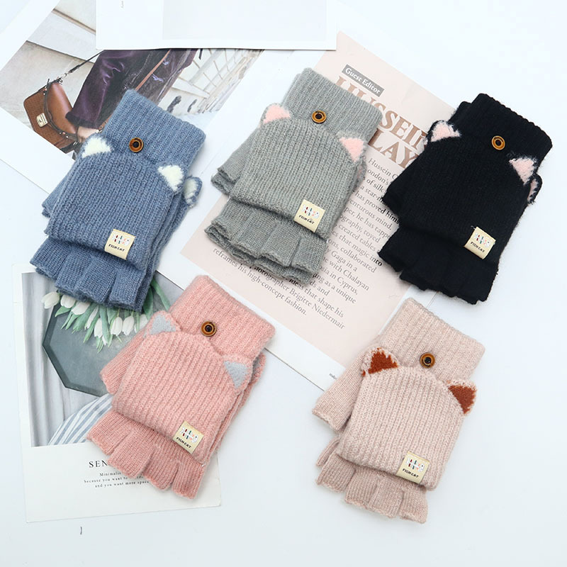 겨울 장갑 따뜻한 귀여운 새로운 만화 플립 반 손가락 벨벳 두꺼운 니트 야외 승마 여성 학생을위한 방한스토어 가기