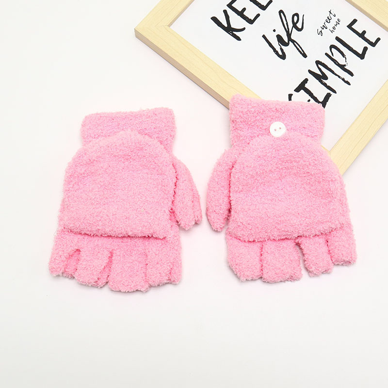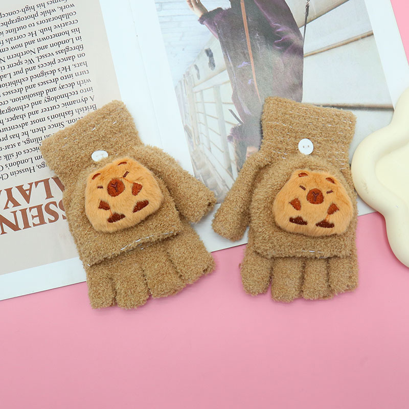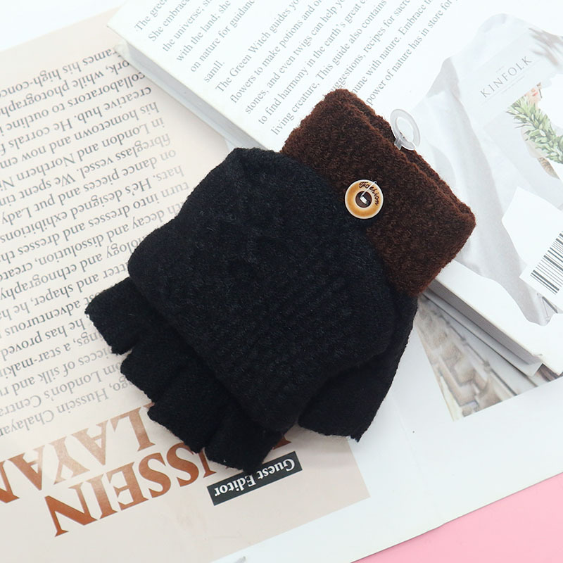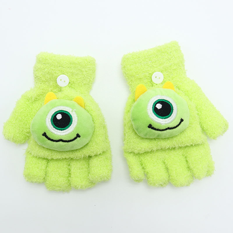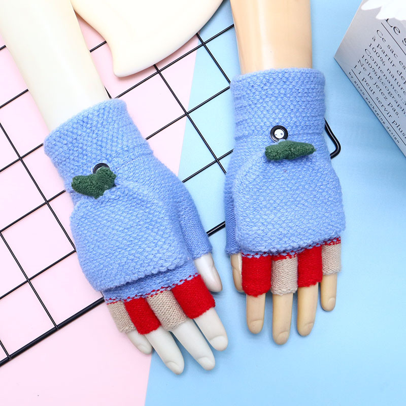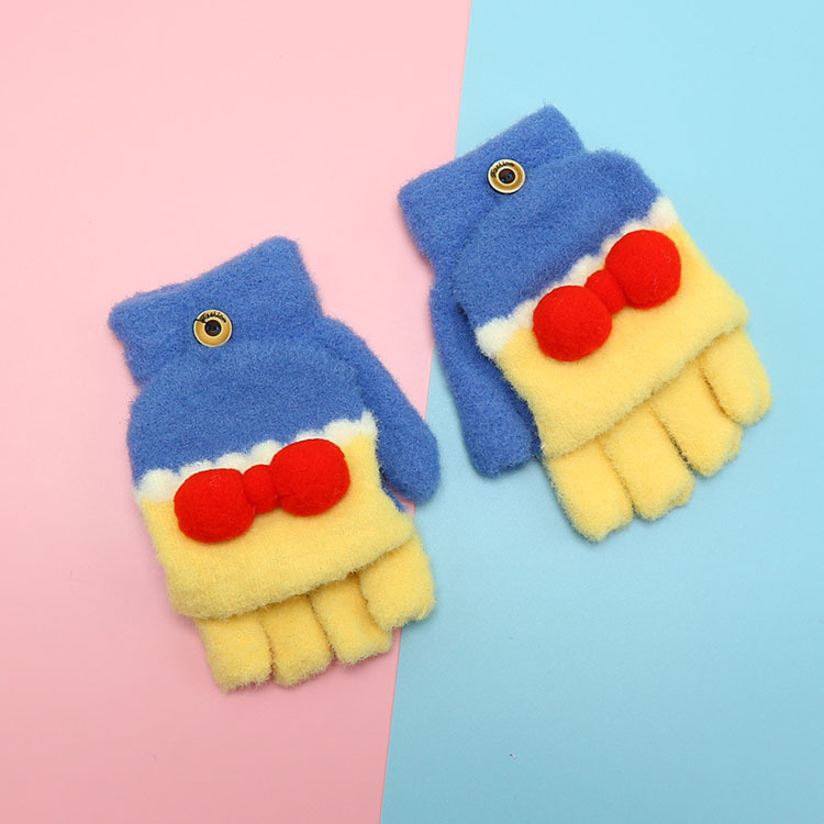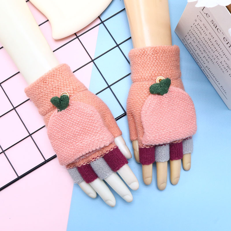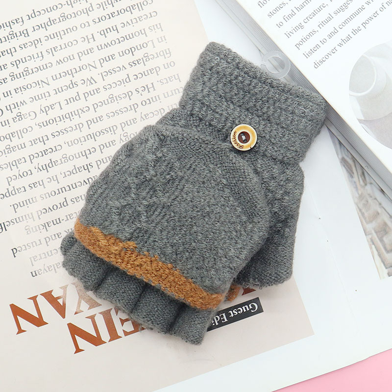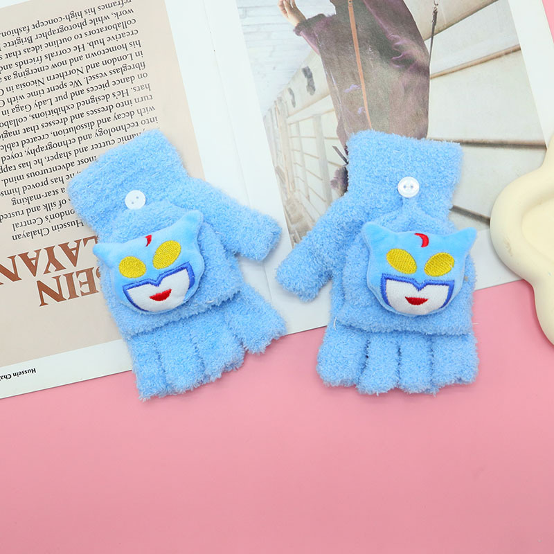 겨울 장갑 따뜻한 귀여운 새로운 만화 플립 반 손가락 벨벳 두꺼운 니트 야외 승마 여성 학생을위한 방한스토어 가기