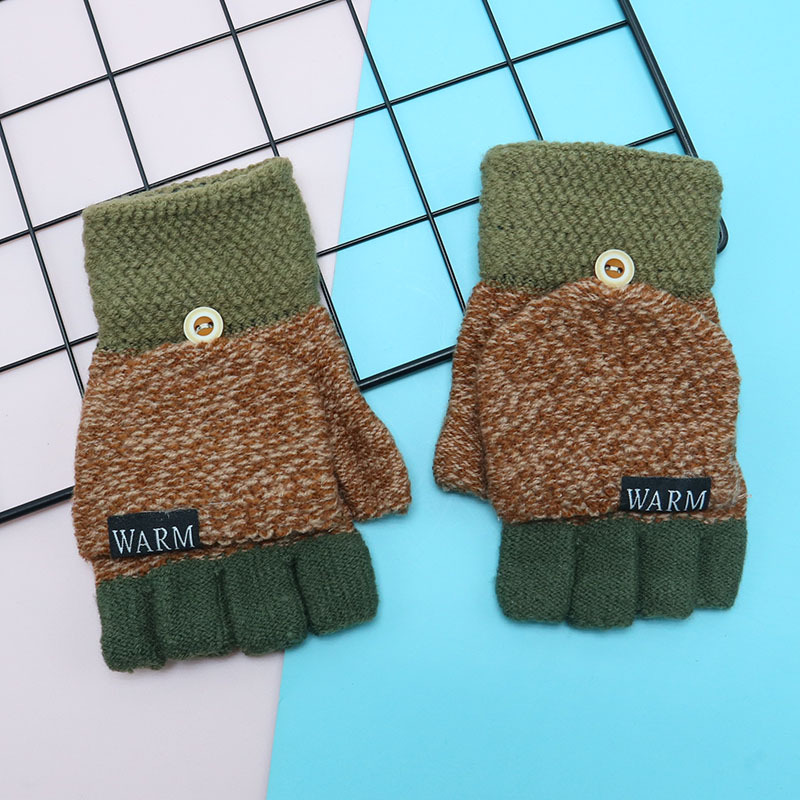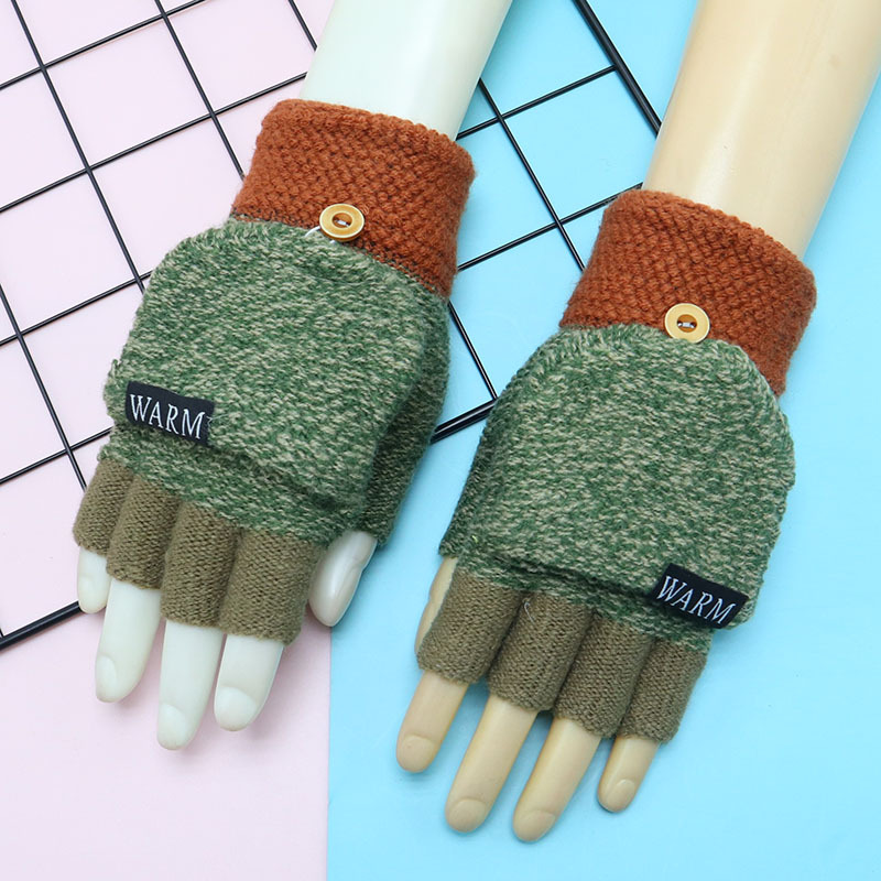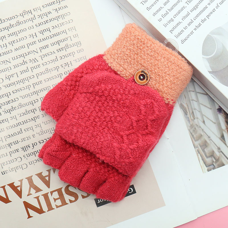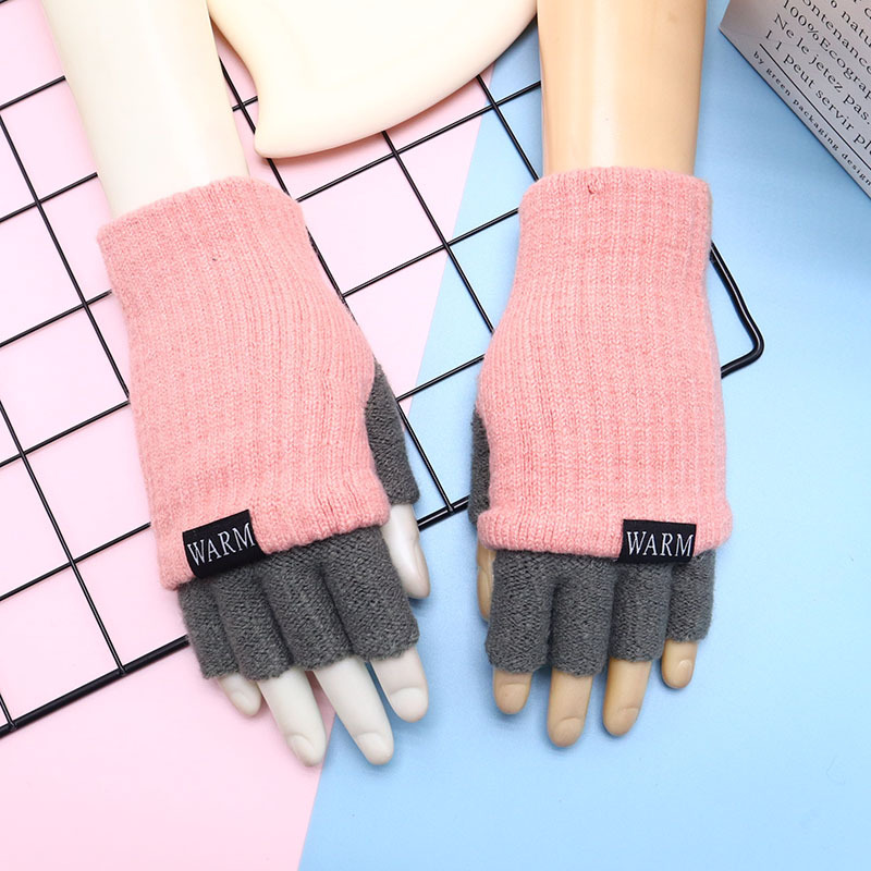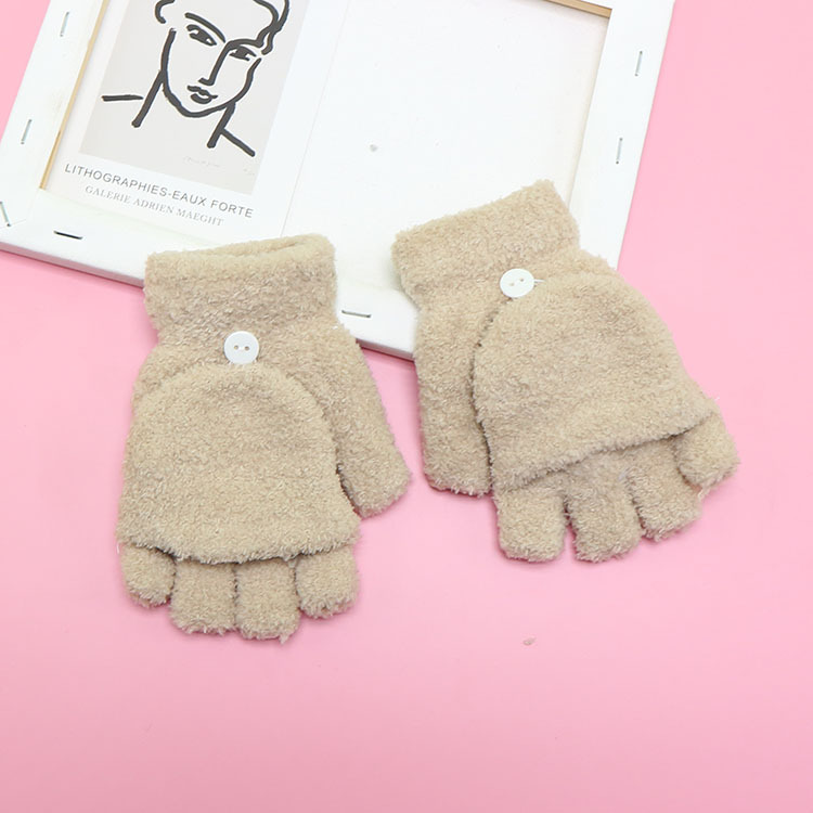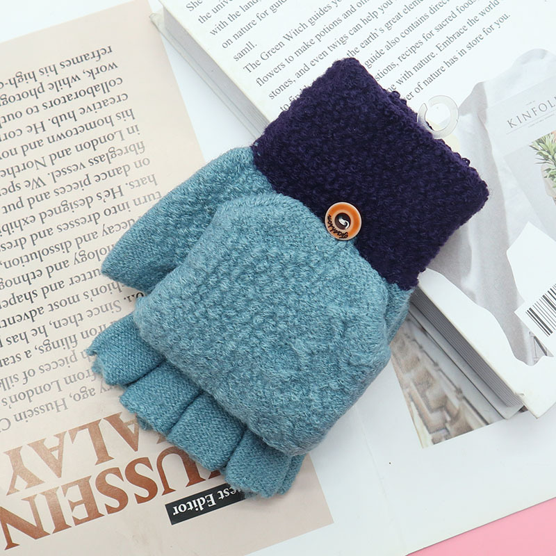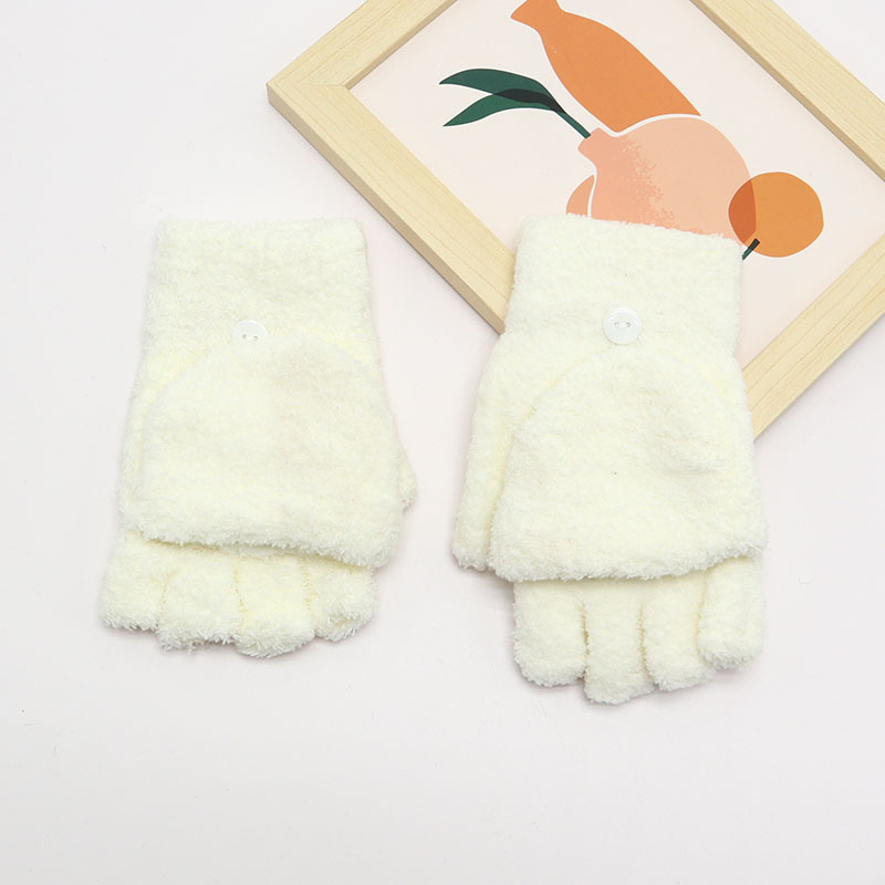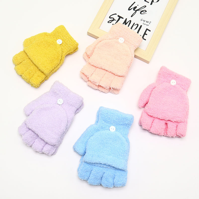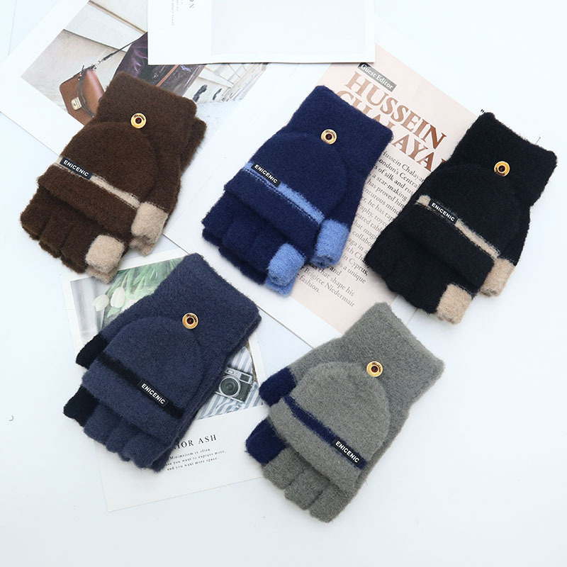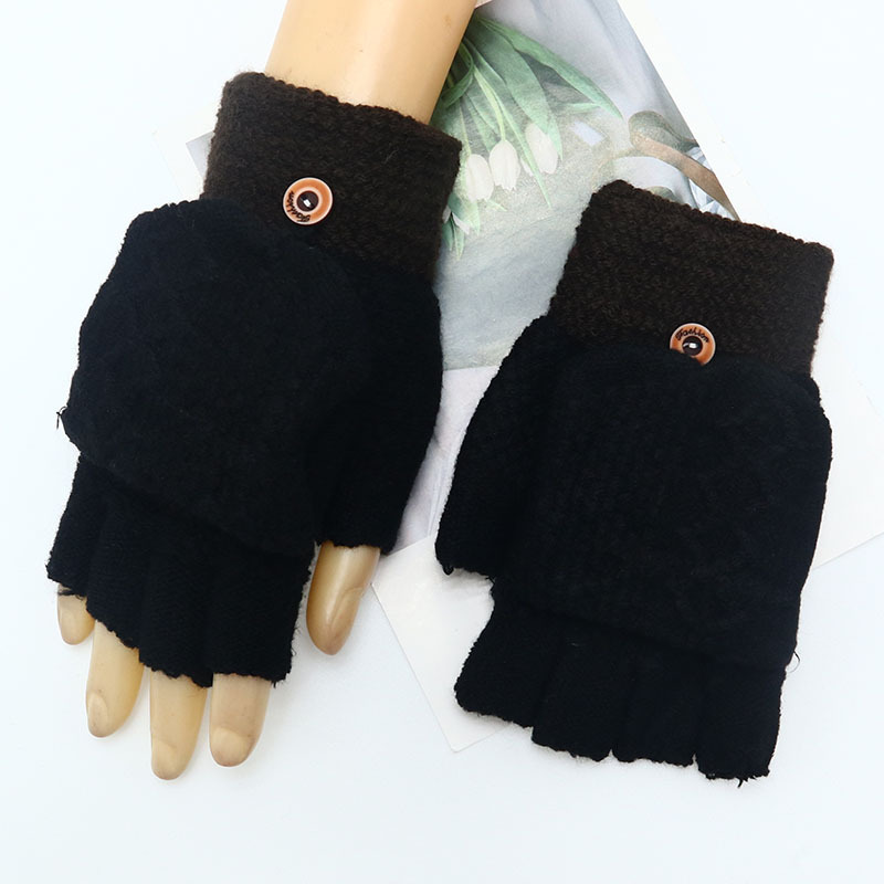 겨울 장갑 따뜻한 귀여운 새로운 만화 플립 반 손가락 벨벳 두꺼운 니트 야외 승마 여성 학생을위한 방한스토어 가기