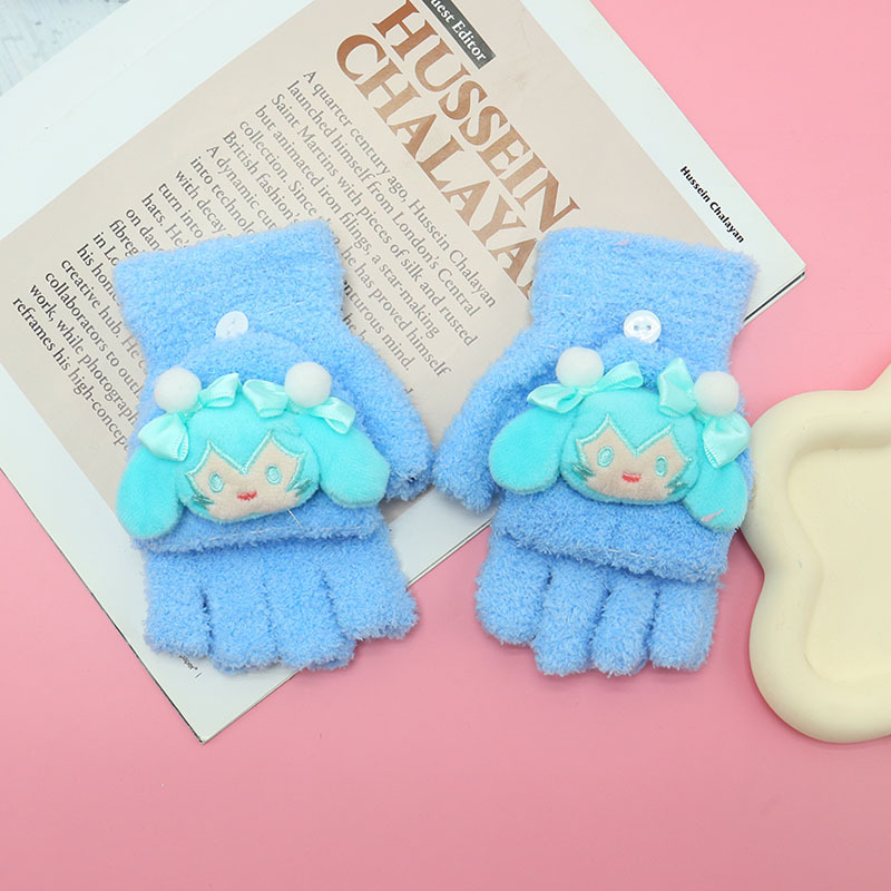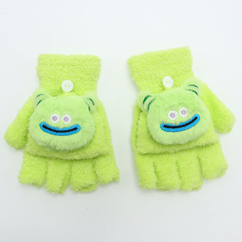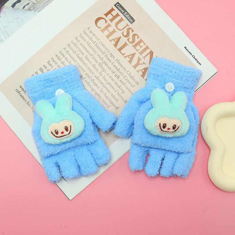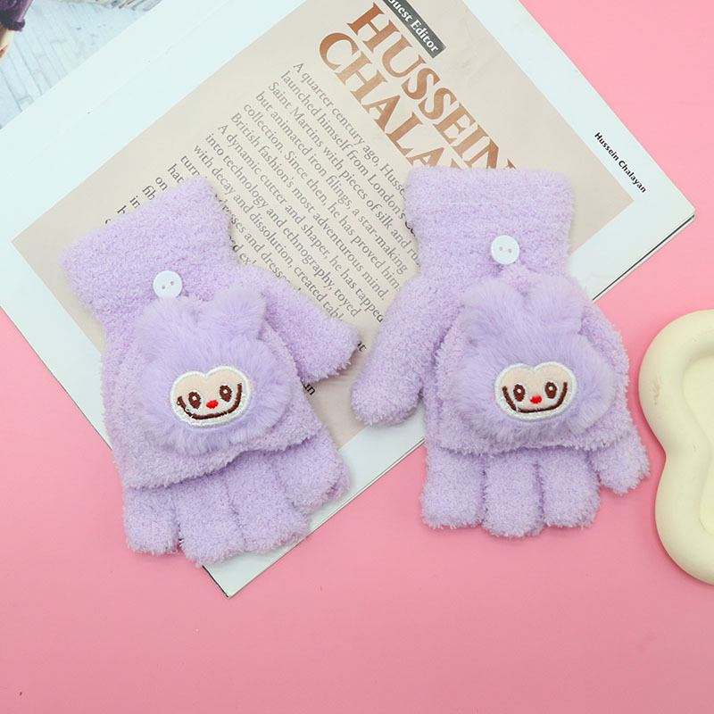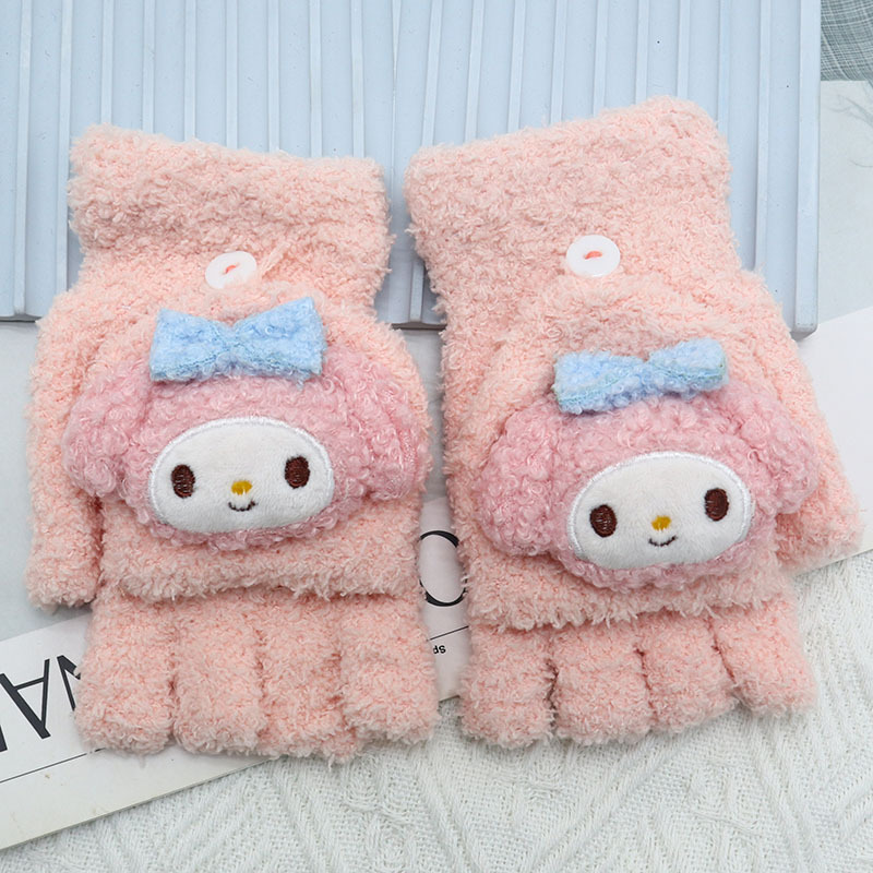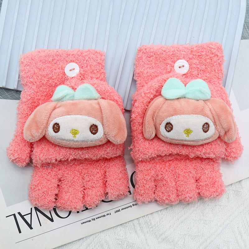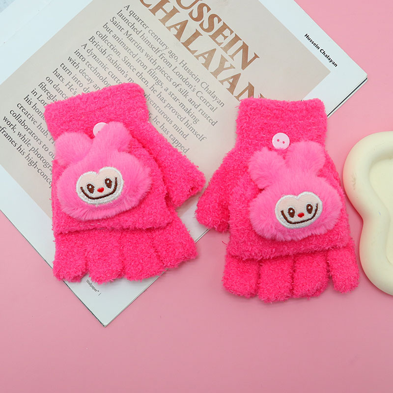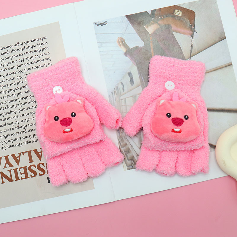 겨울 장갑 따뜻한 귀여운 새로운 만화 플립 반 손가락 벨벳 두꺼운 니트 야외 승마 여성 학생을위한 방한