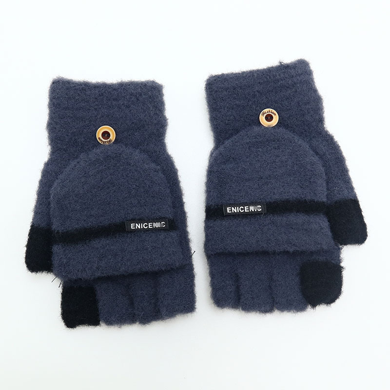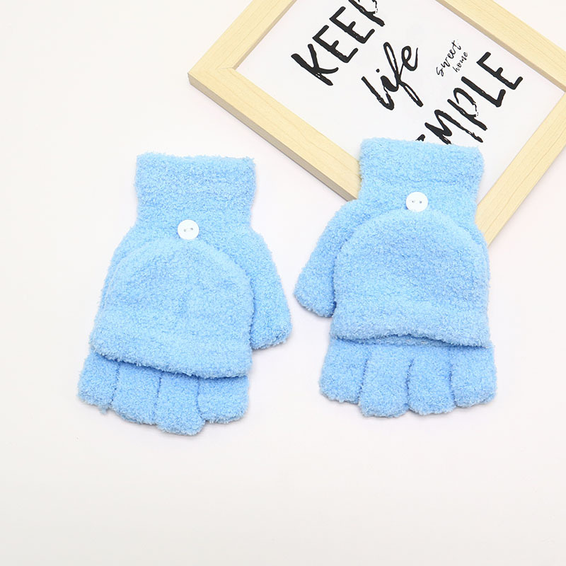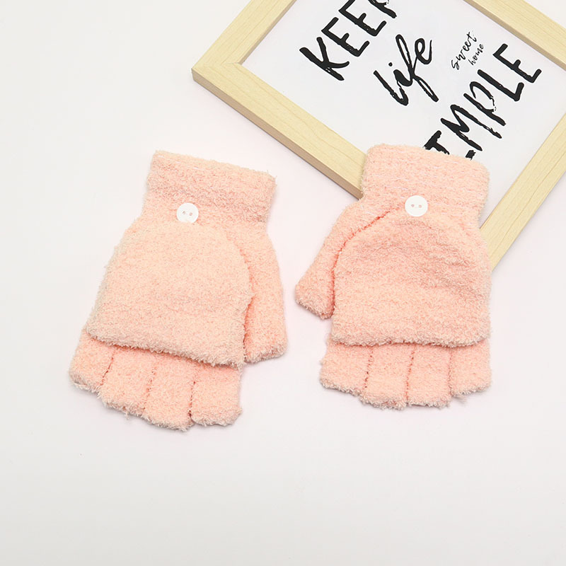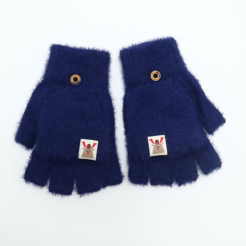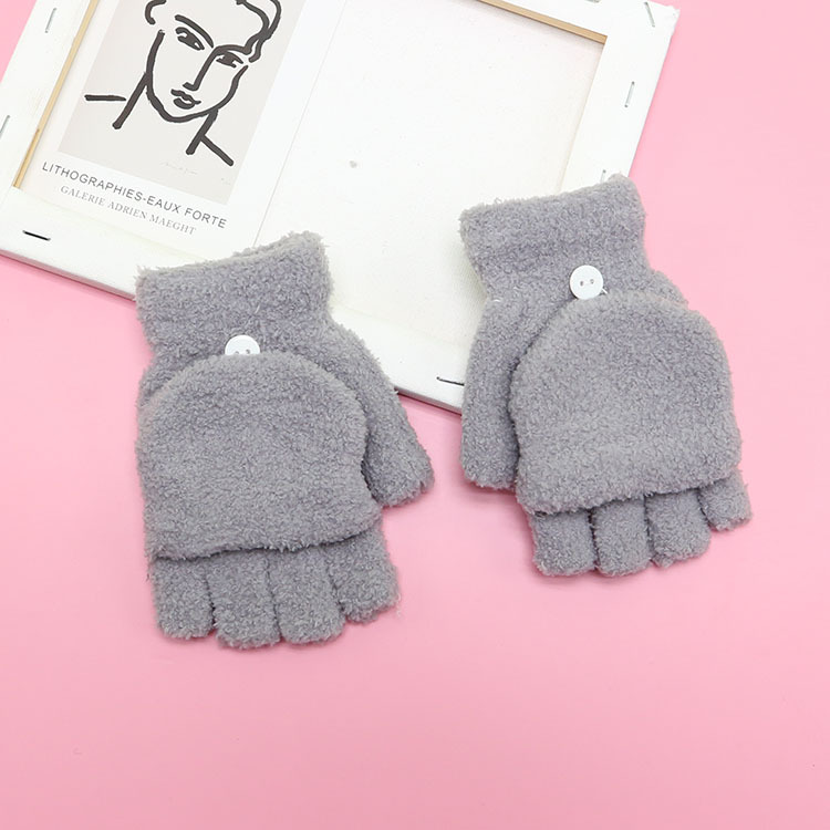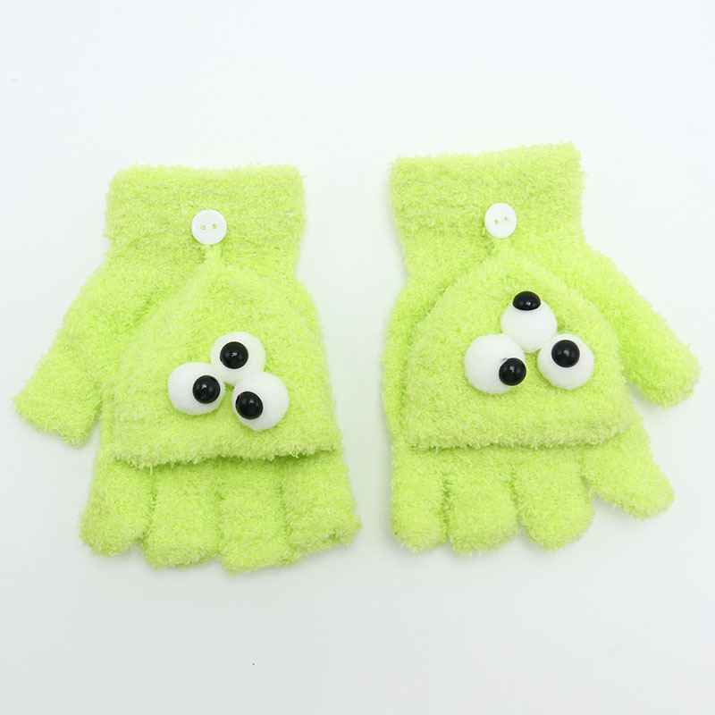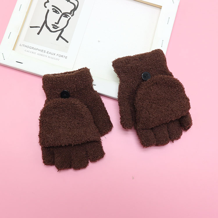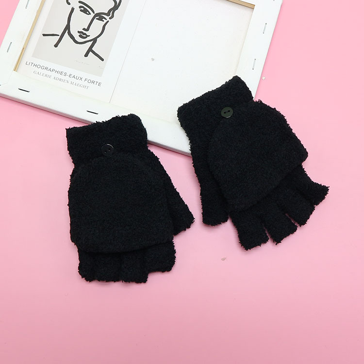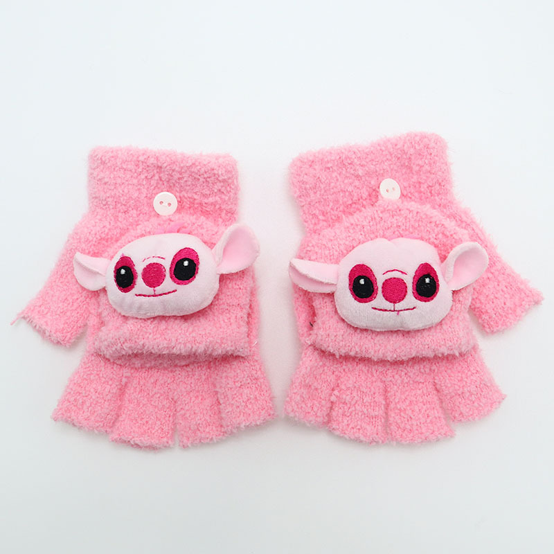 겨울 장갑 따뜻한 귀여운 새로운 만화 플립 반 손가락 벨벳 두꺼운 니트 야외 승마 여성 학생을위한 방한