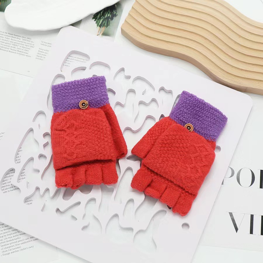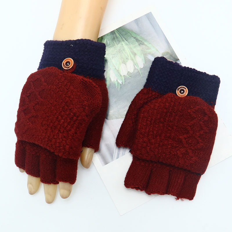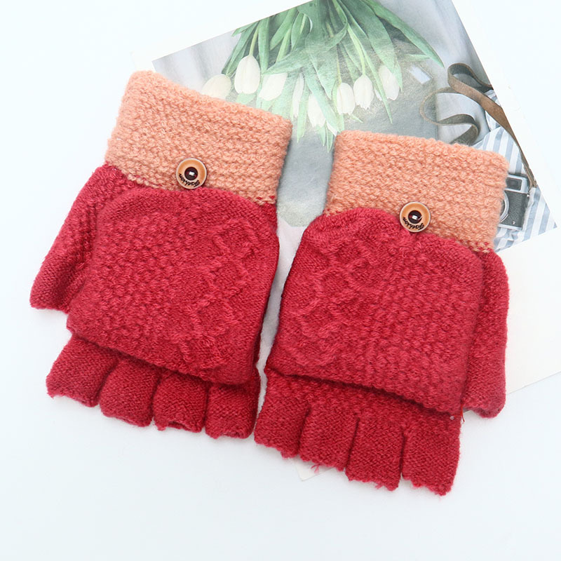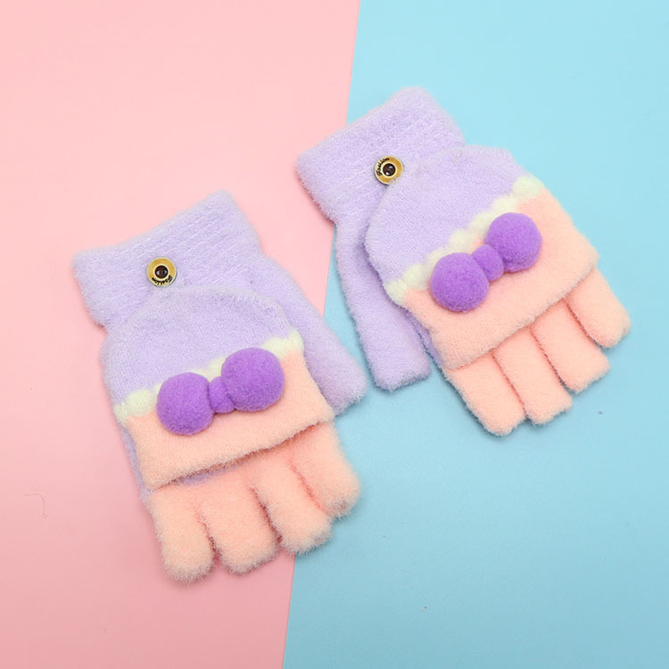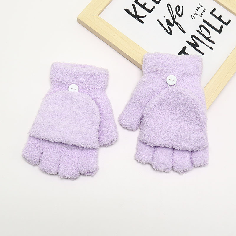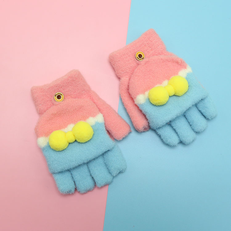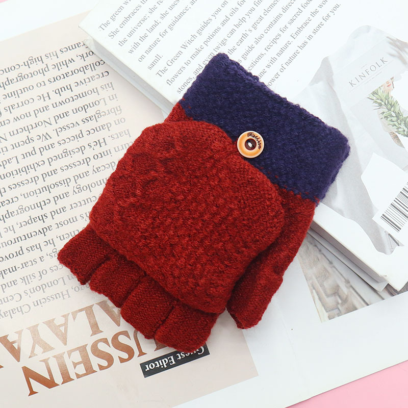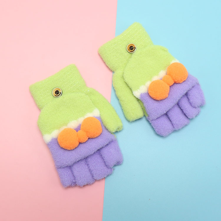 겨울 장갑 따뜻한 귀여운 새로운 만화 플립 반 손가락 벨벳 두꺼운 니트 야외 승마 여성 학생을위한 방한