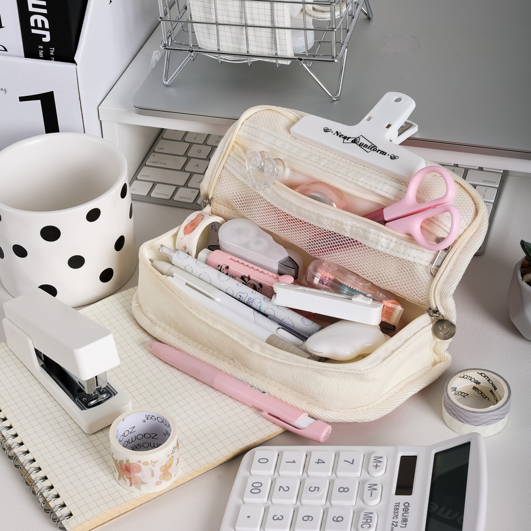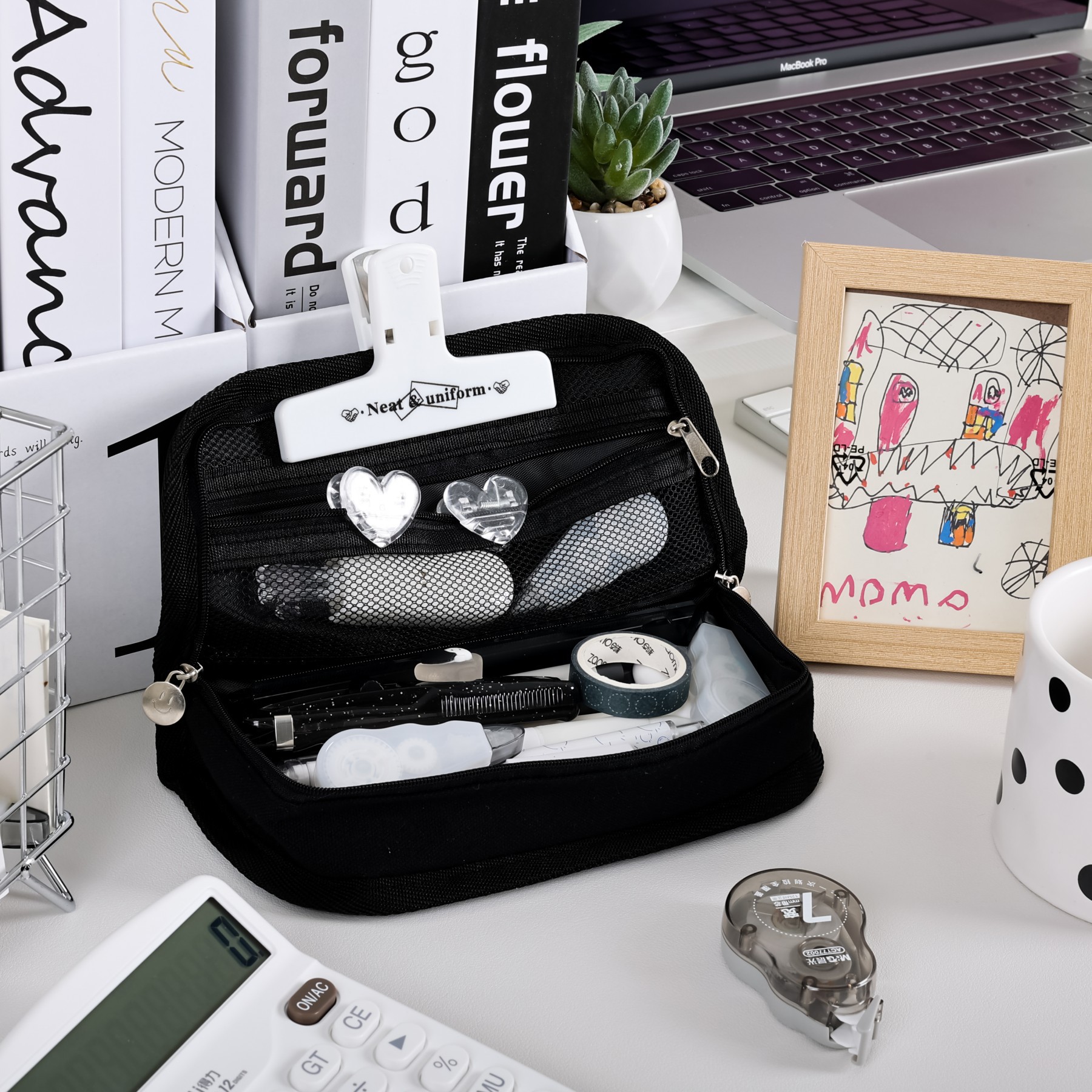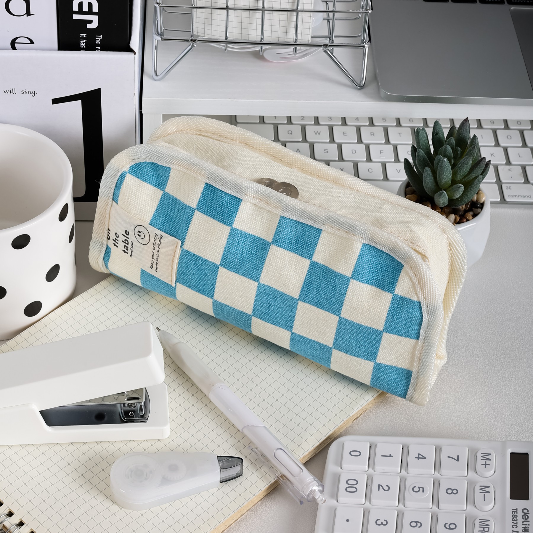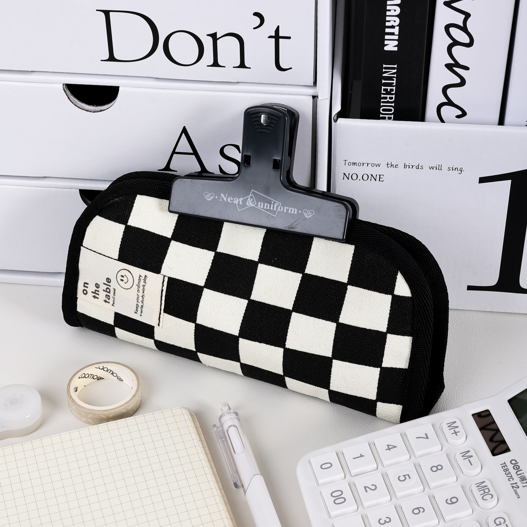 인 스타일 흑백 체스 판 연필 가방 간단한 대용량 문구 가방 하이 컬러 가치 학생 문구 연필 가방스토어 가기