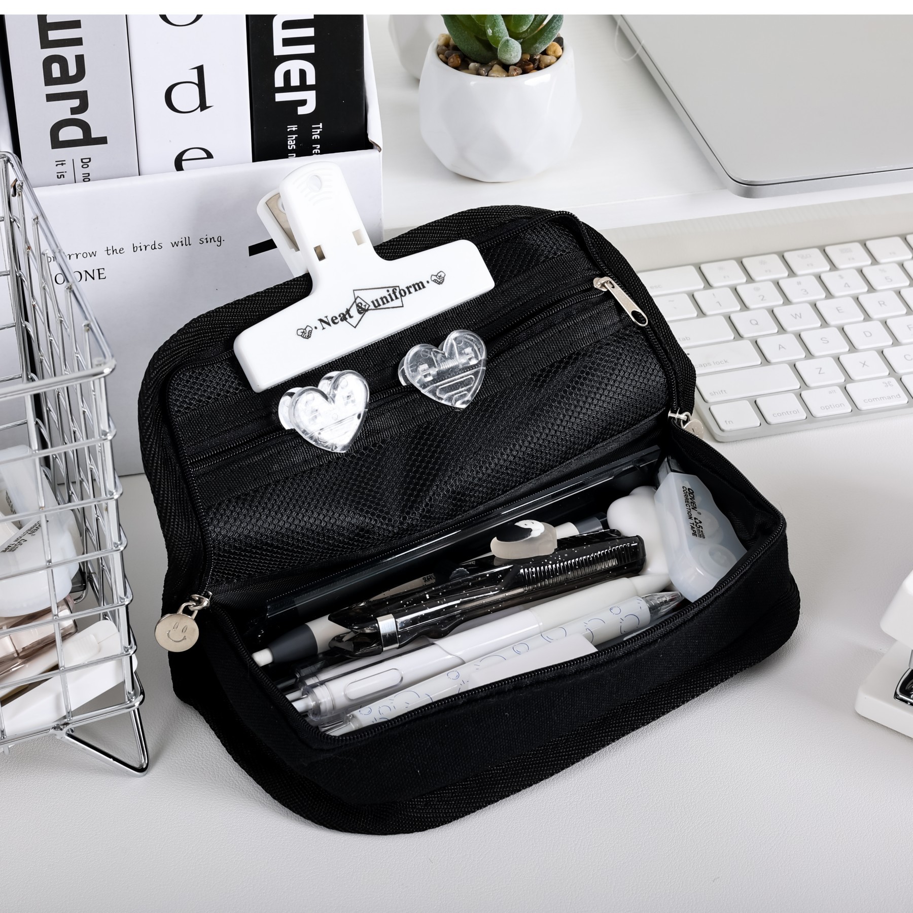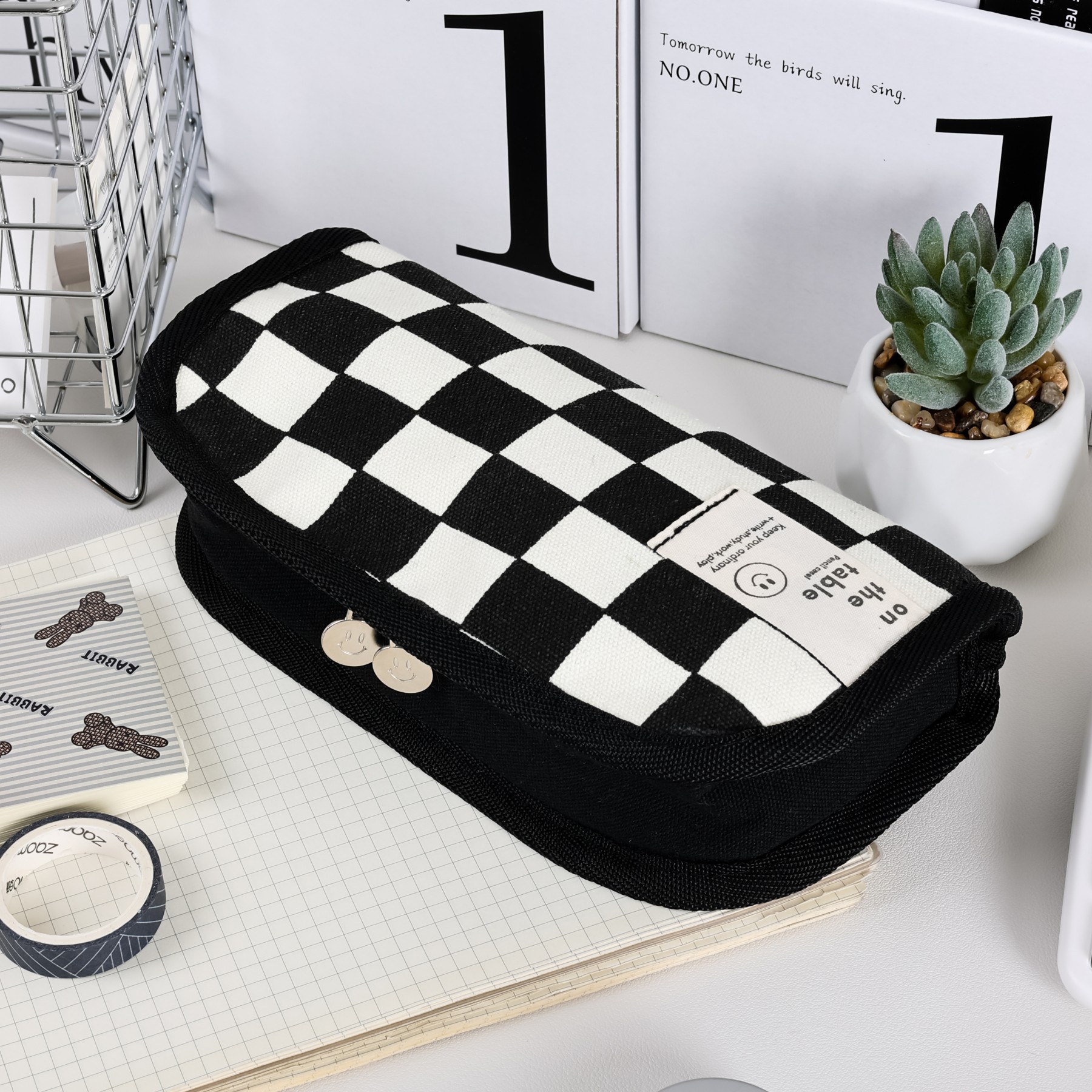 인 스타일 흑백 체스 판 연필 가방 간단한 대용량 문구 가방 하이 컬러 가치 학생 문구 연필 가방