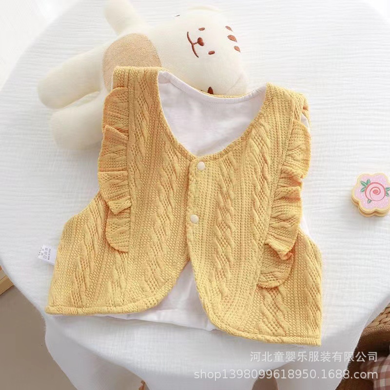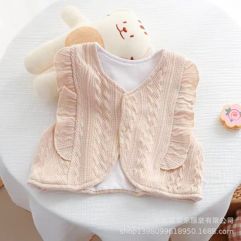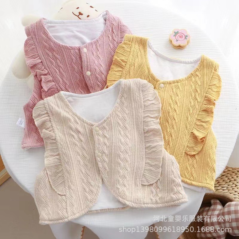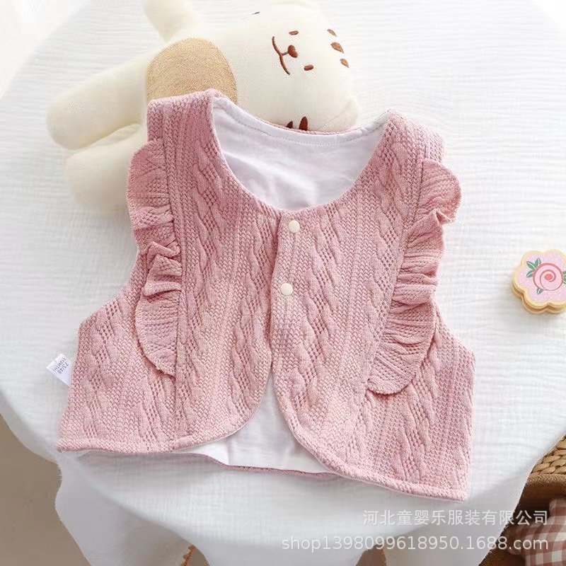 아기의 봄과 가을 한국식 아우터 조끼 귀여운 서양식 레이스 조끼 아우터웨어 더블 레이어 조끼 트렌디스토어 가기