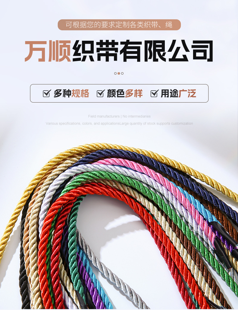 3 가닥 로프 재고 컬러 로프 휴대용 가방 로프 꼰 로프 마 로프 컬러 수제 로프 폴리 프로필렌 3 가닥 트위스트 로프 벨트스토어 가기