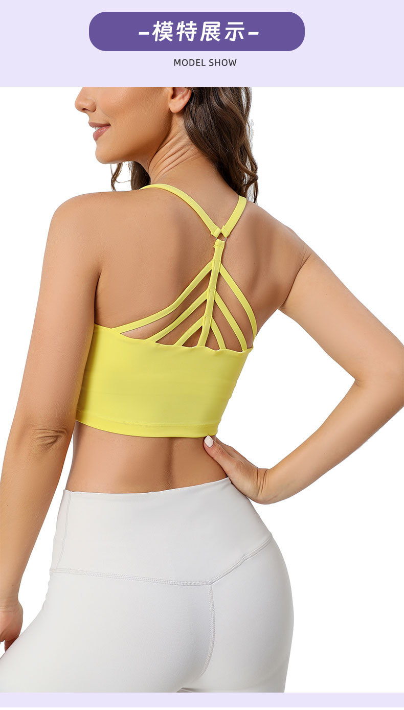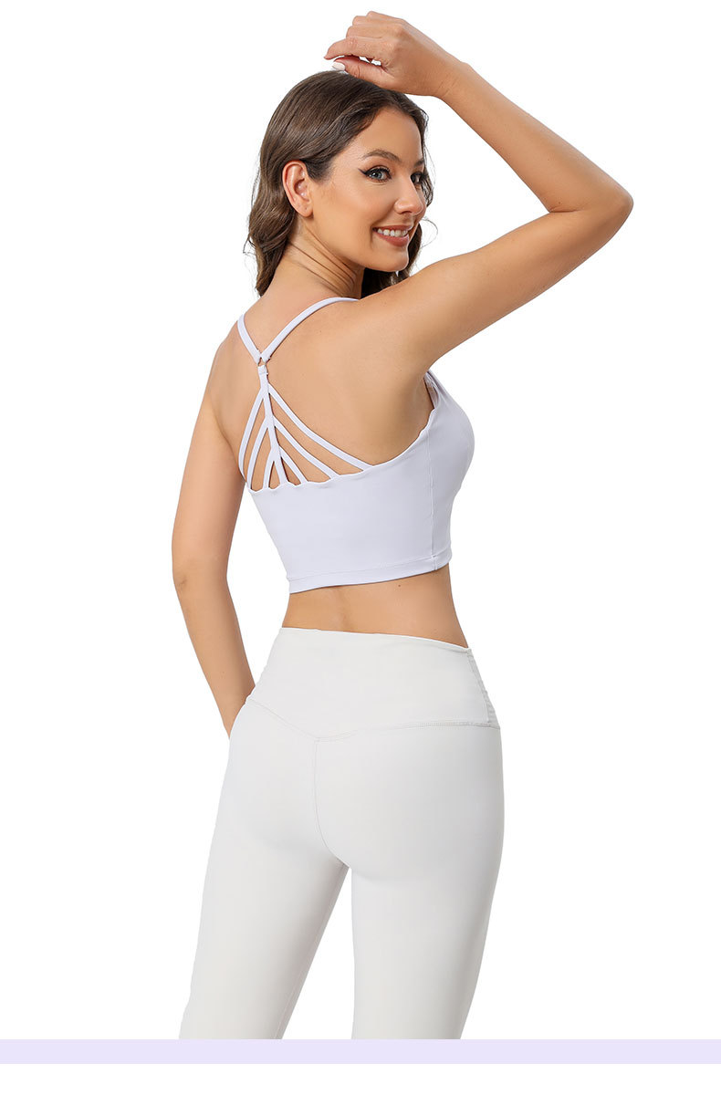 2024년 신상 섹시 피쉬본 요가 탱크탑 일체형 스포츠 브라 고정형 더블 숄더 스트랩 피트니스 백