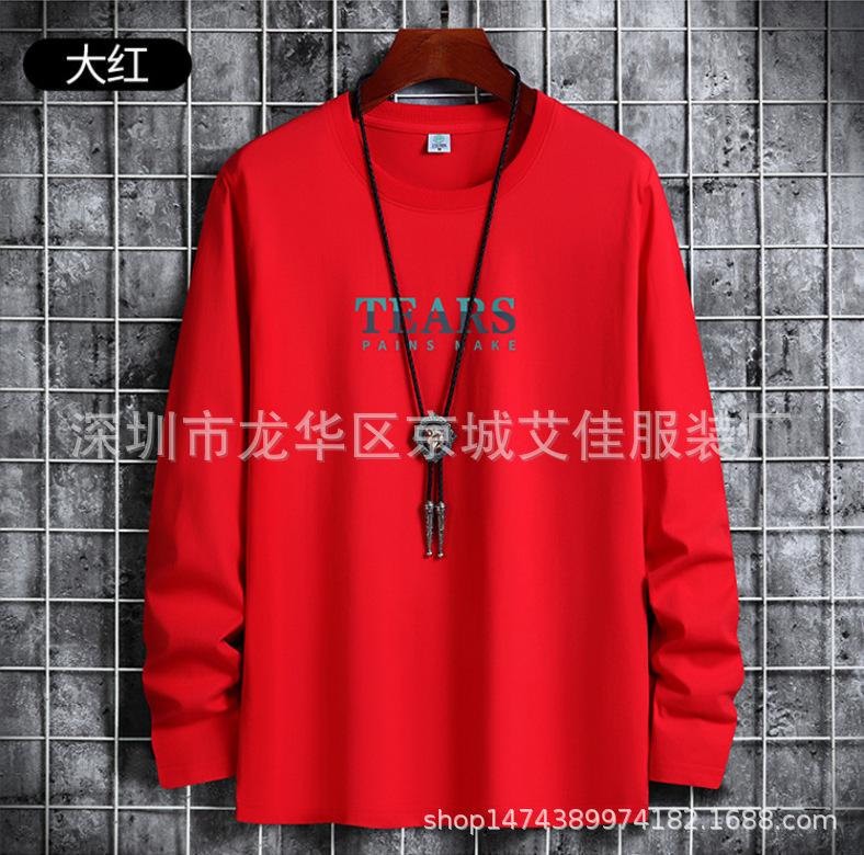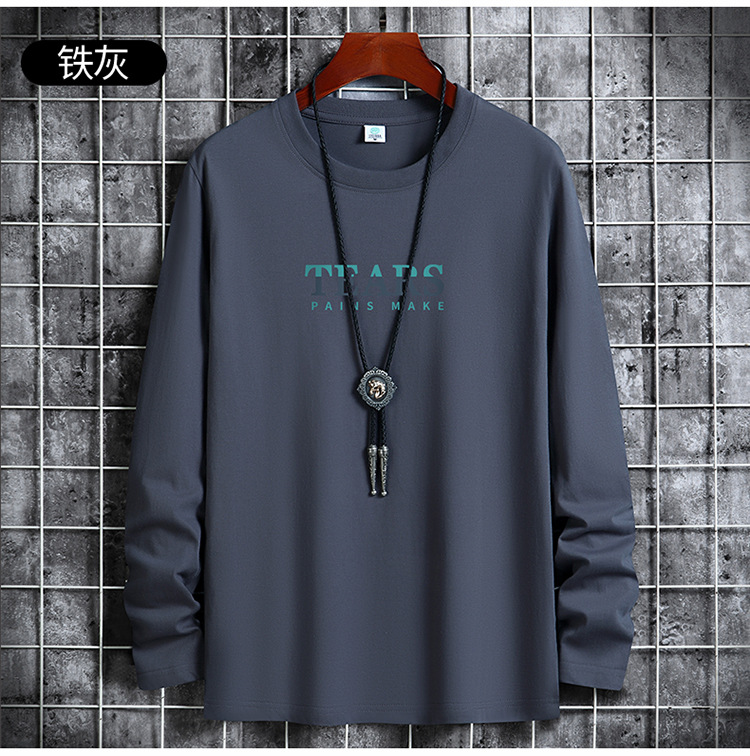 가을 면 긴팔 티셔츠 남자의 신학생 올 매치 캐주얼 티셔츠 탑 라운드 넥 가을 옷 베이스 셔츠 남자스토어 가기