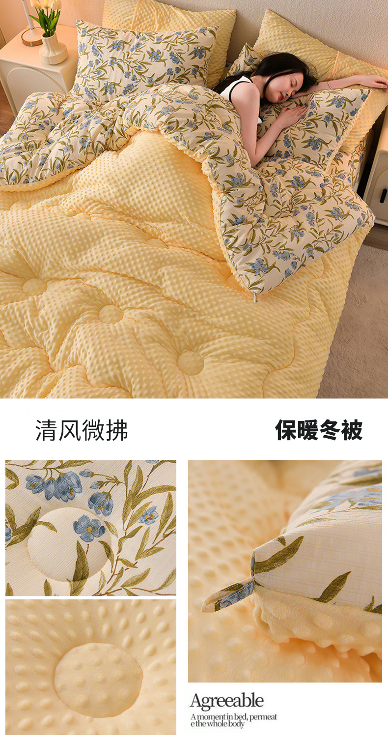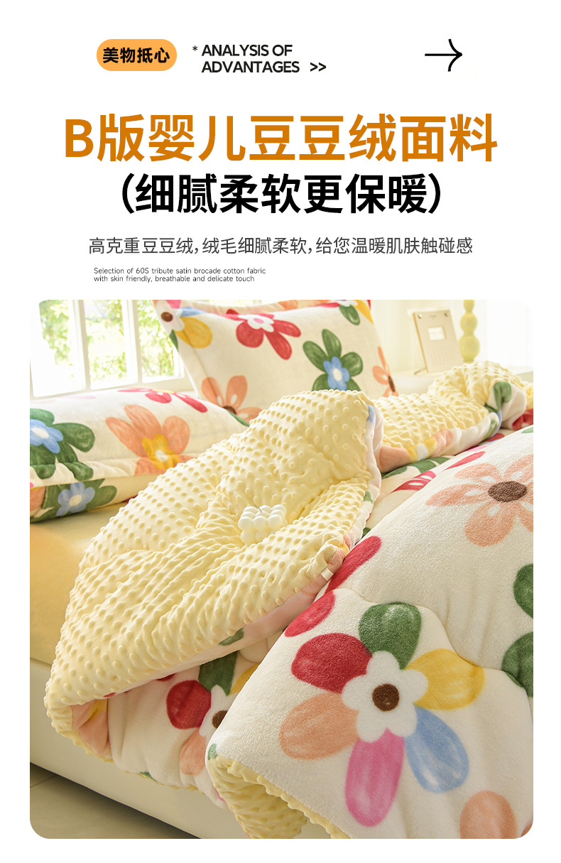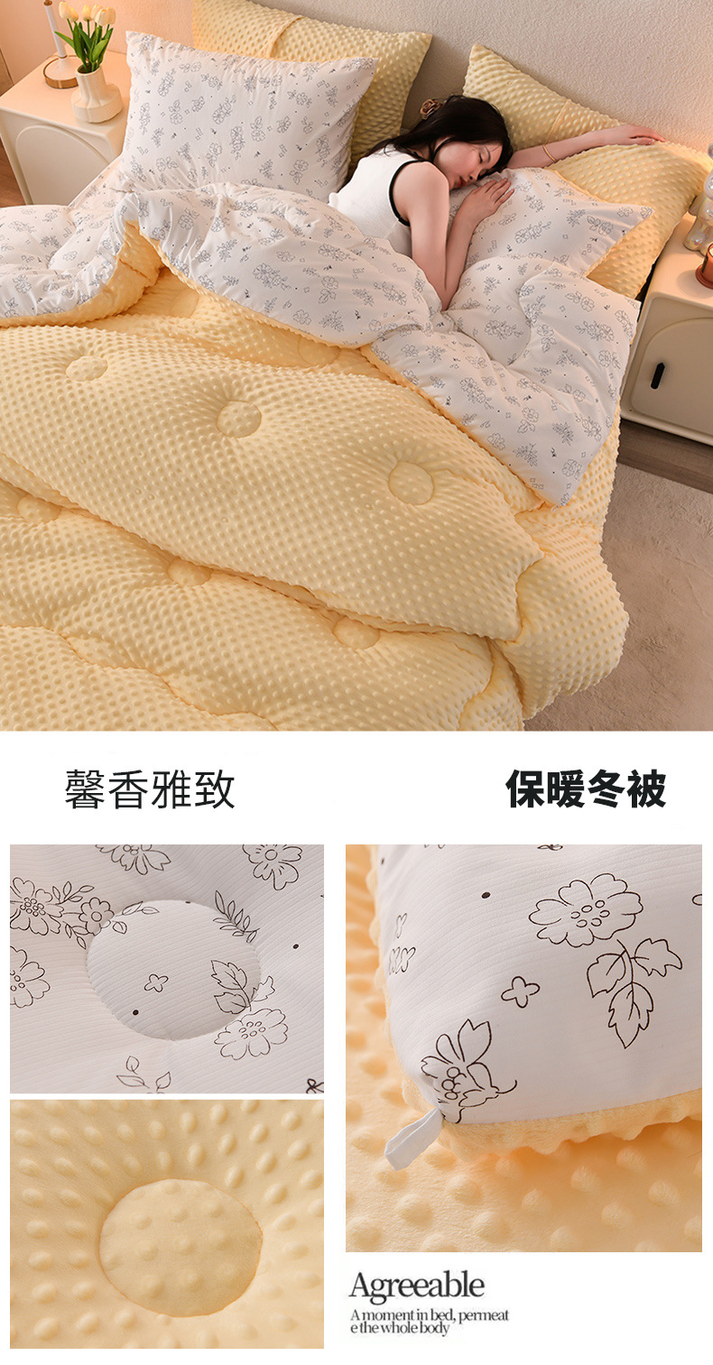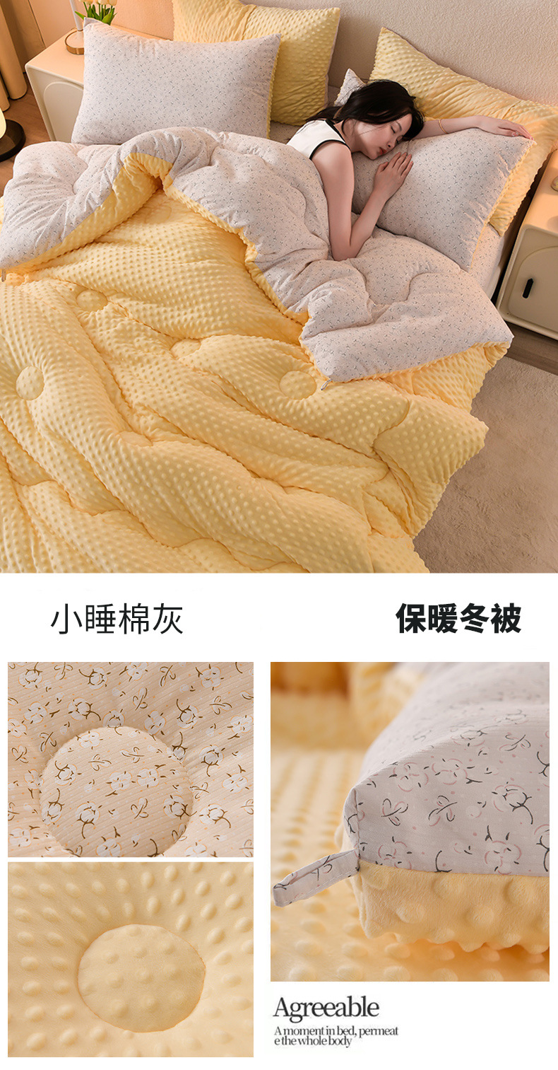 [무료배송] 뉴 주 스몰 코튼 + 완두콩 벨벳 따뜻한 겨울 이불 두꺼운 싱글 더블 퀼트 코어 빨