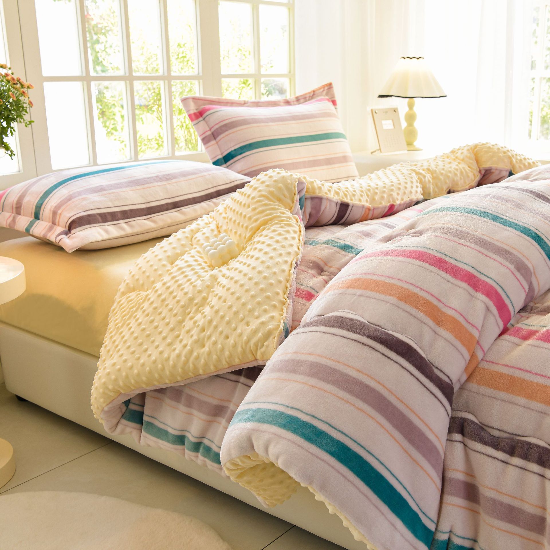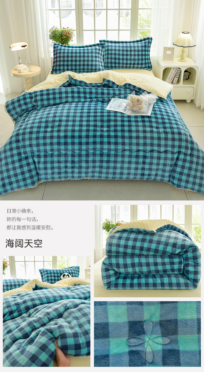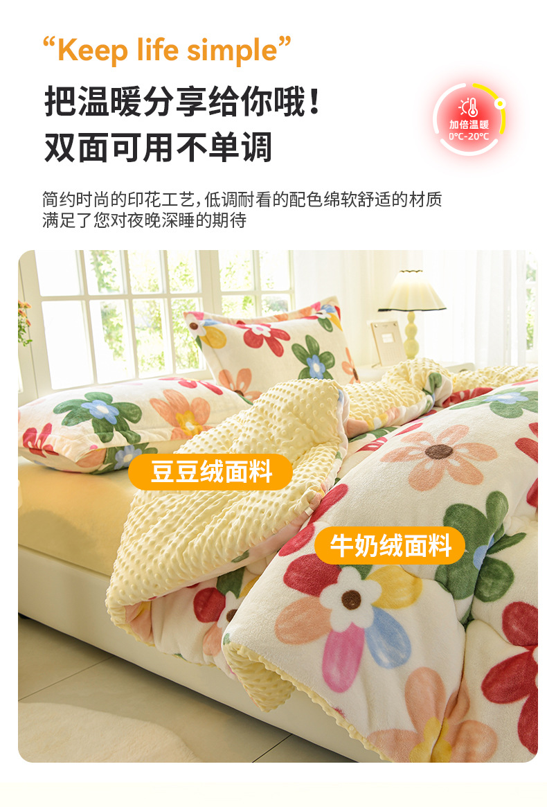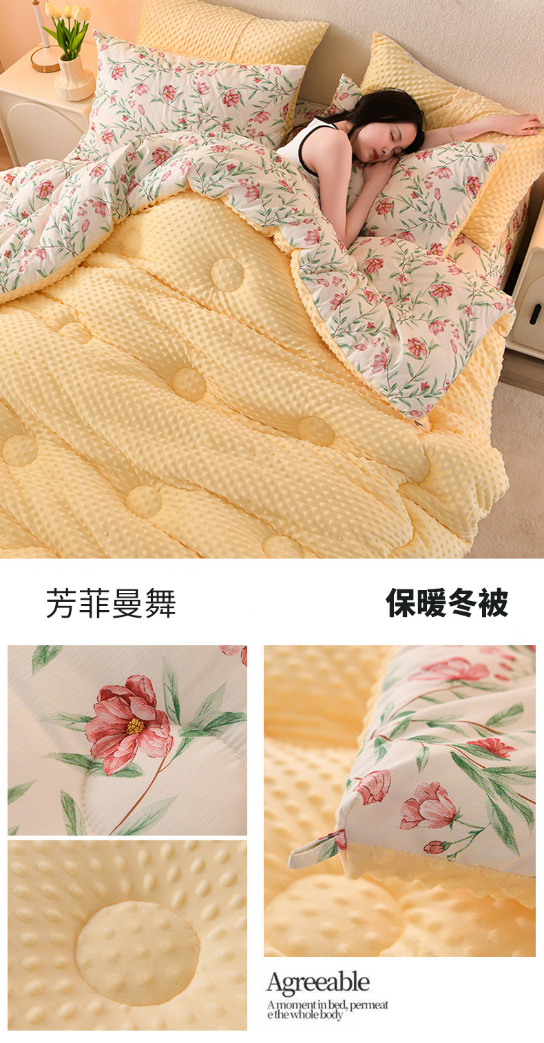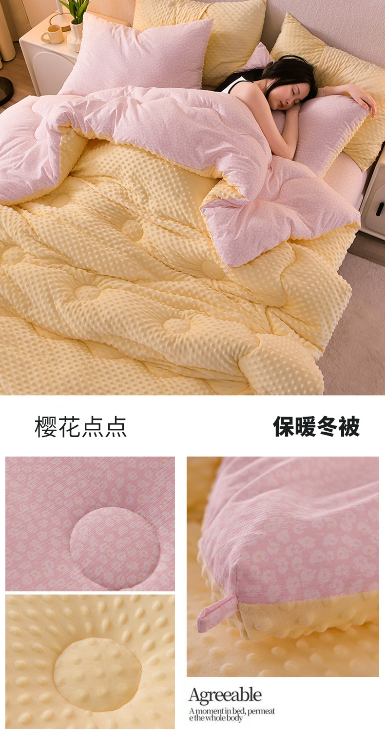 [무료배송] 뉴 주 스몰 코튼 + 완두콩 벨벳 따뜻한 겨울 이불 두꺼운 싱글 더블 퀼트 코어 빨