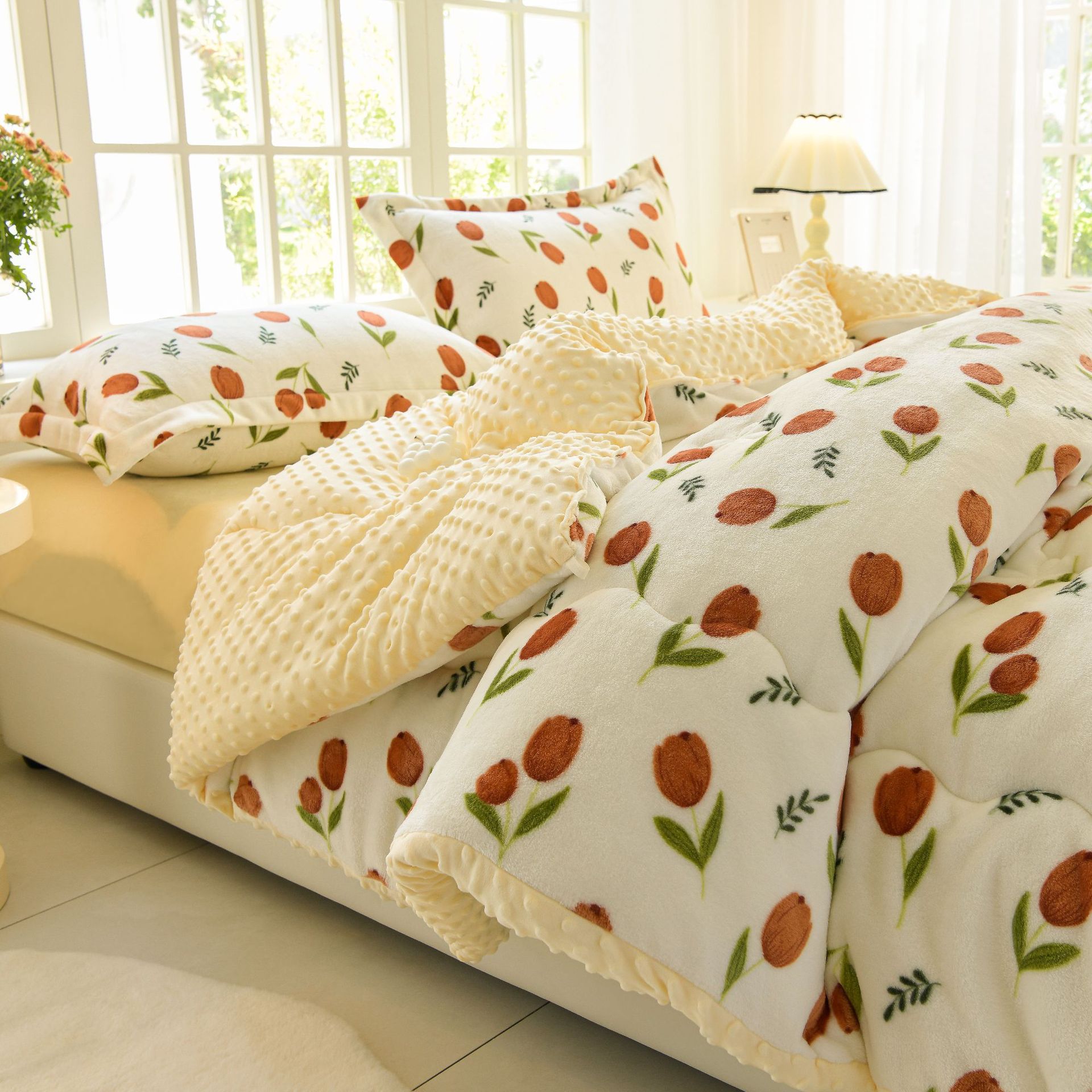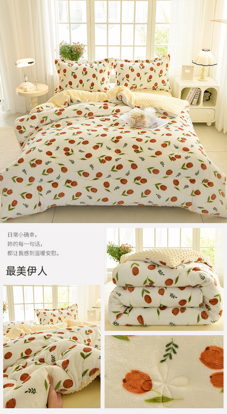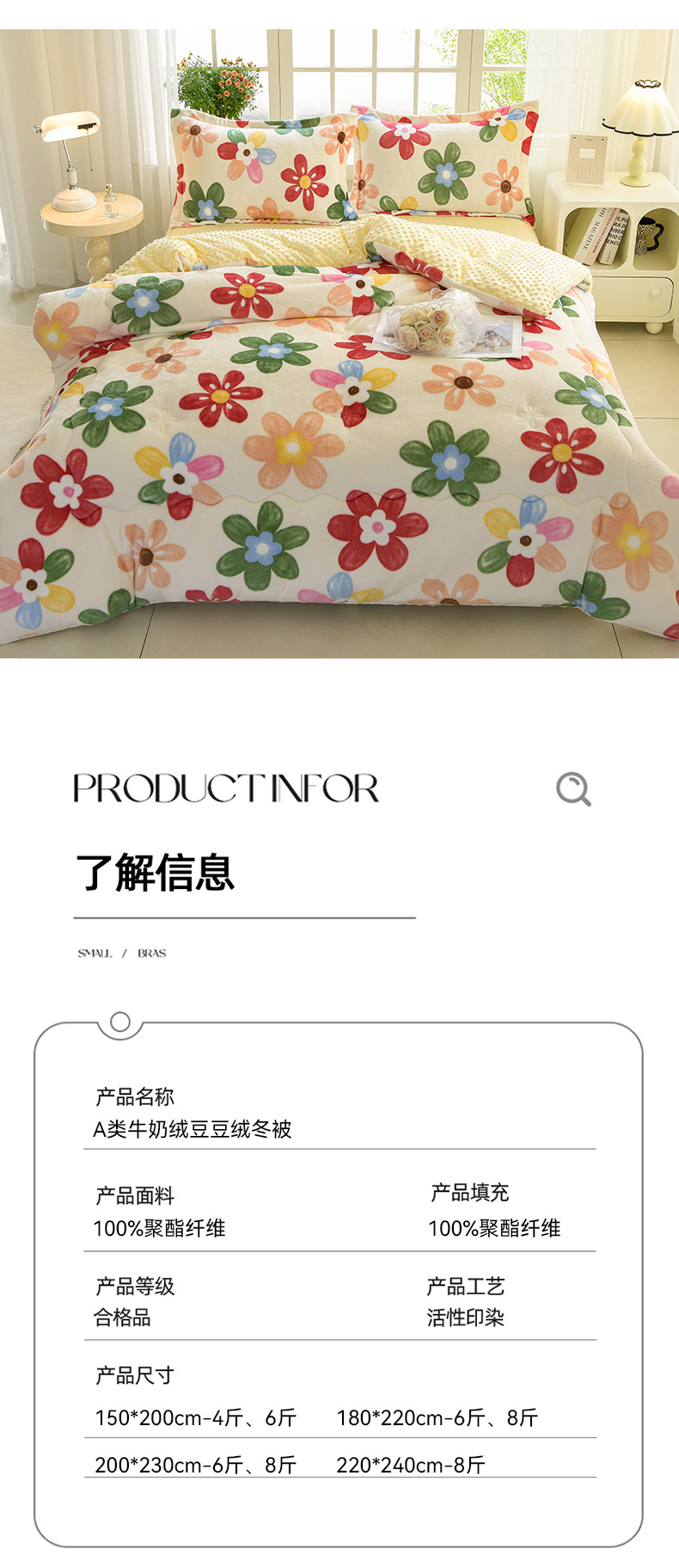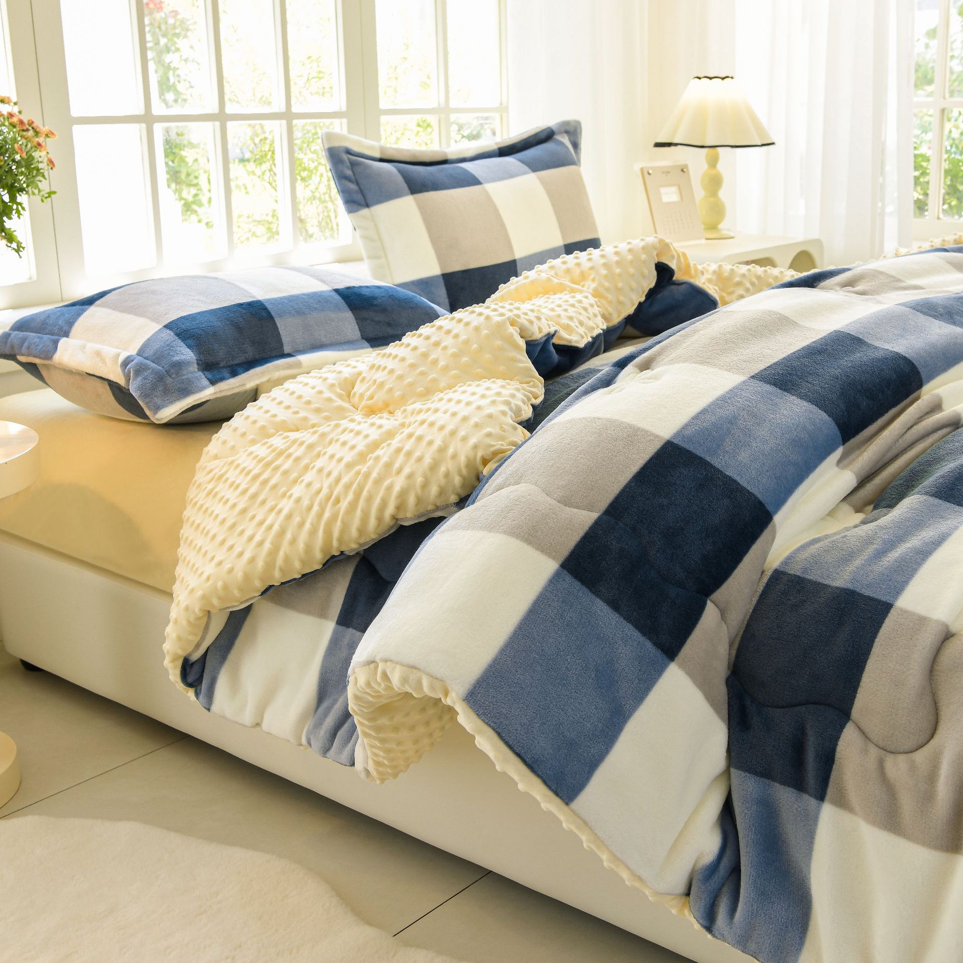 [무료배송] 뉴 주 스몰 코튼 + 완두콩 벨벳 따뜻한 겨울 이불 두꺼운 싱글 더블 퀼트 코어 빨