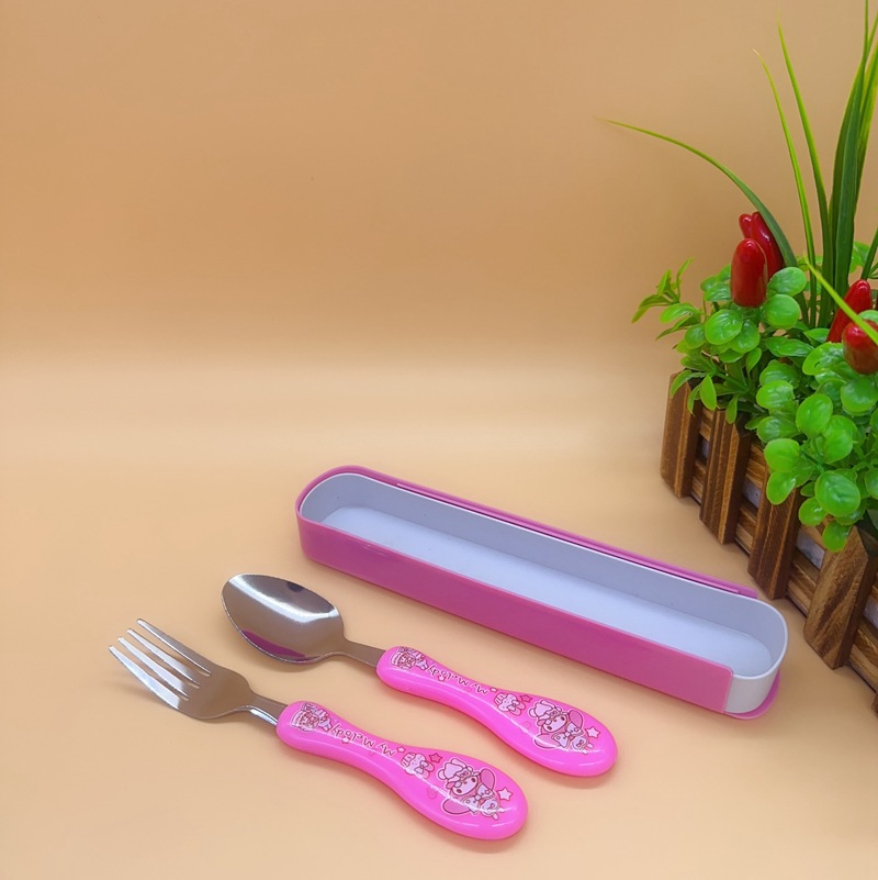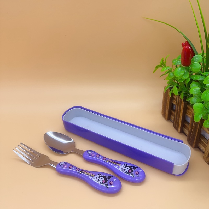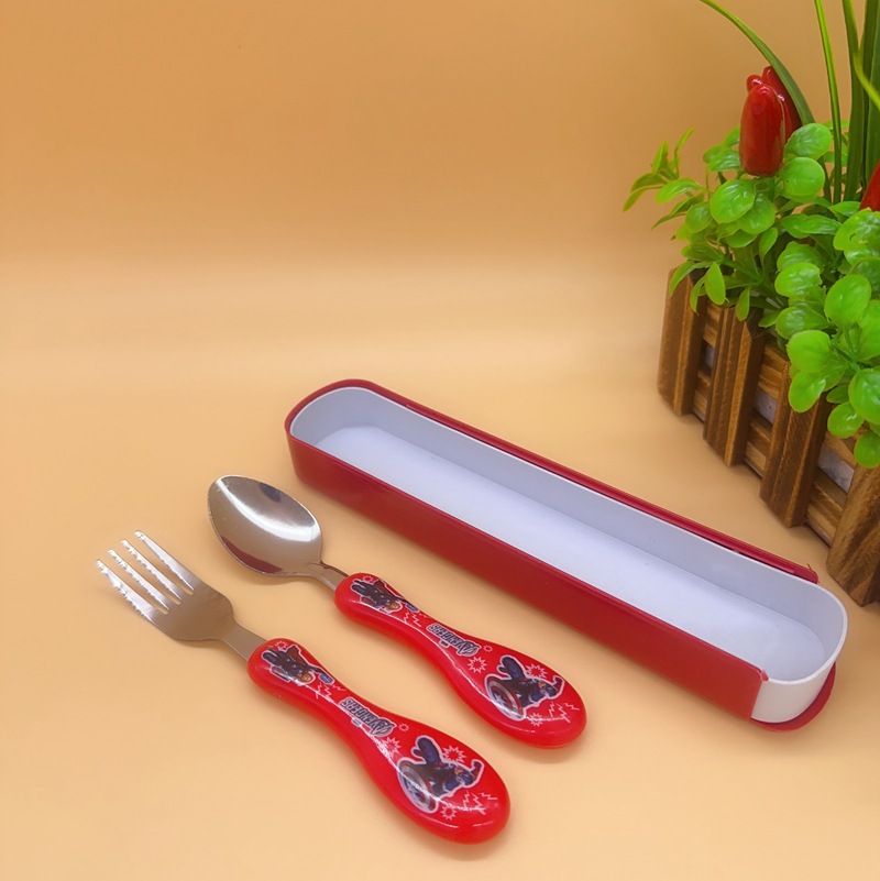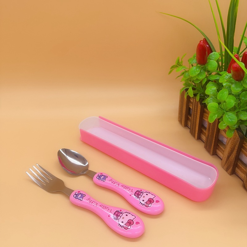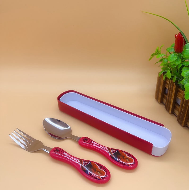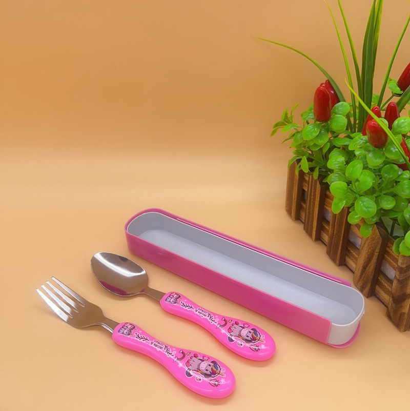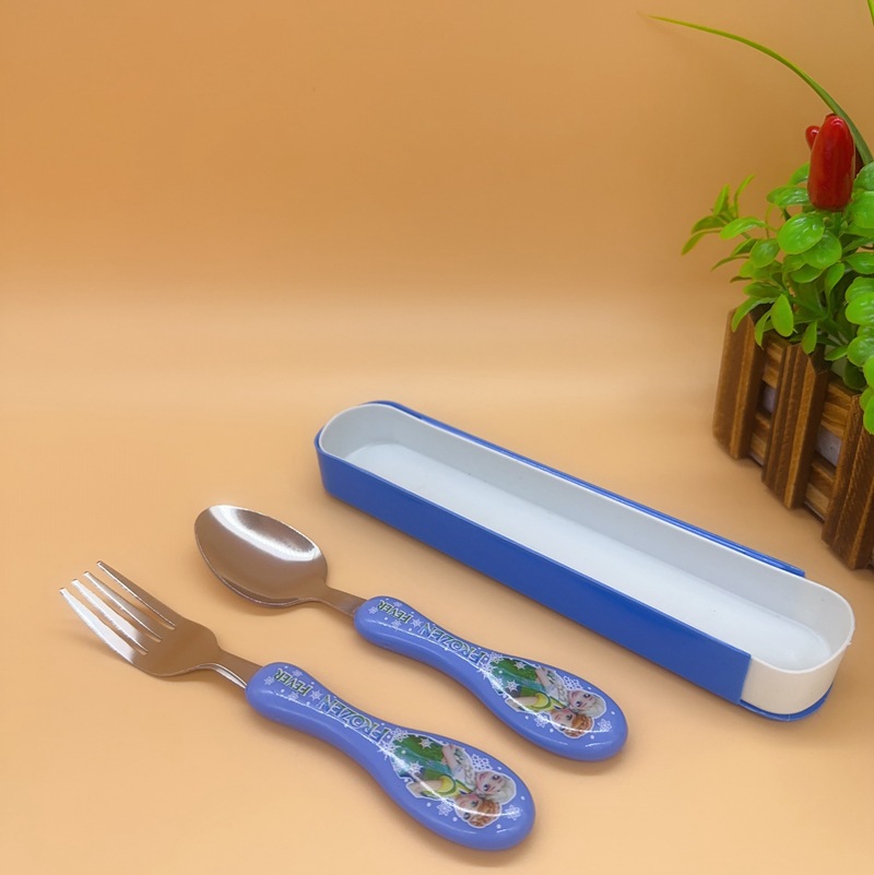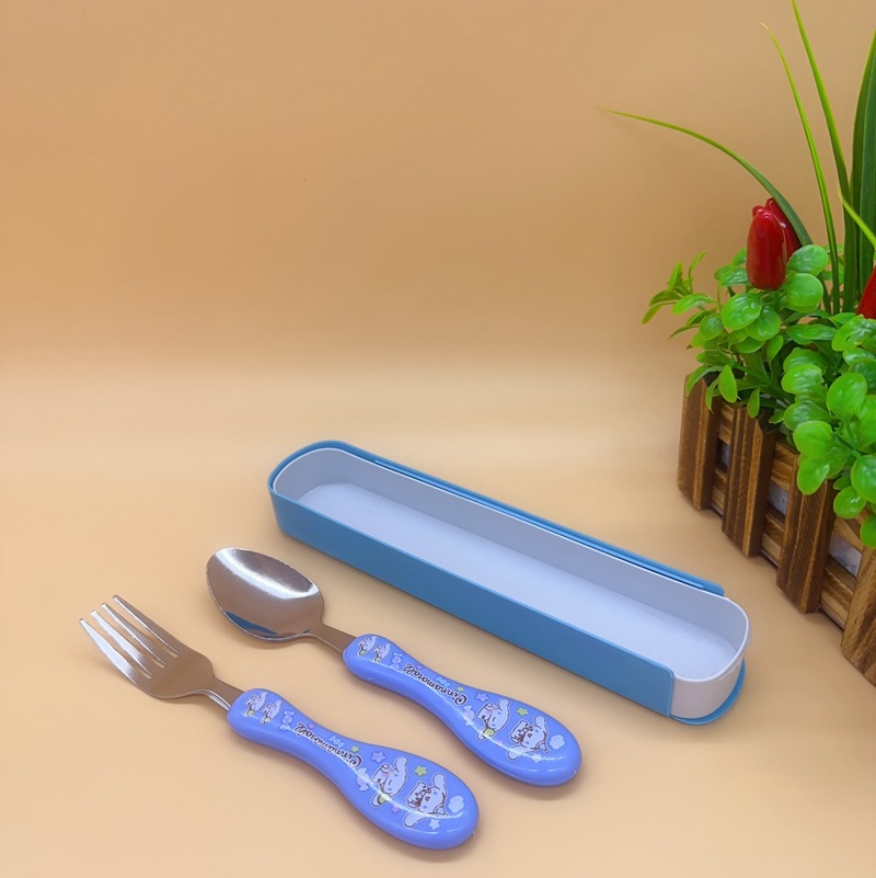 귀여운 만화 포크 스푼 2 대 1 식기 학생 어린이 캠퍼스 스테인레스 스틸 휴대용 식기 상자 작은 선물