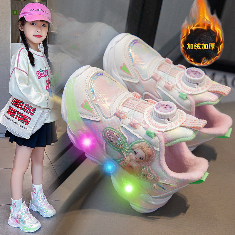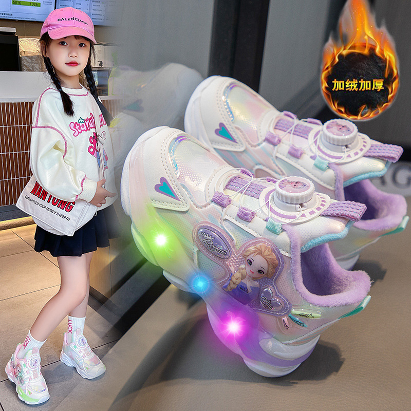 소녀 신발 2024 봄 어린이 가죽 메쉬 가벼운 소녀의 스위블 버클 런닝 슈즈와 함께 빛나는 운동화스토어 가기