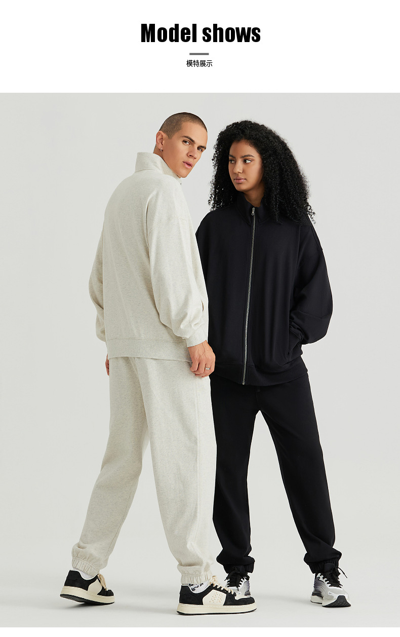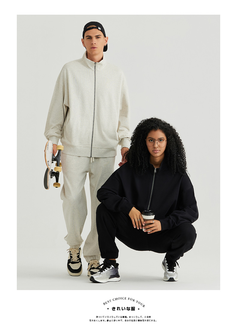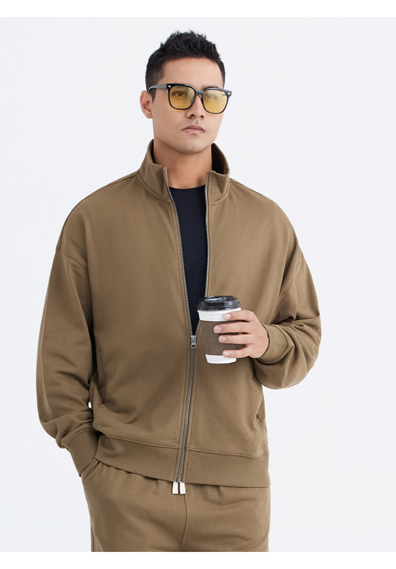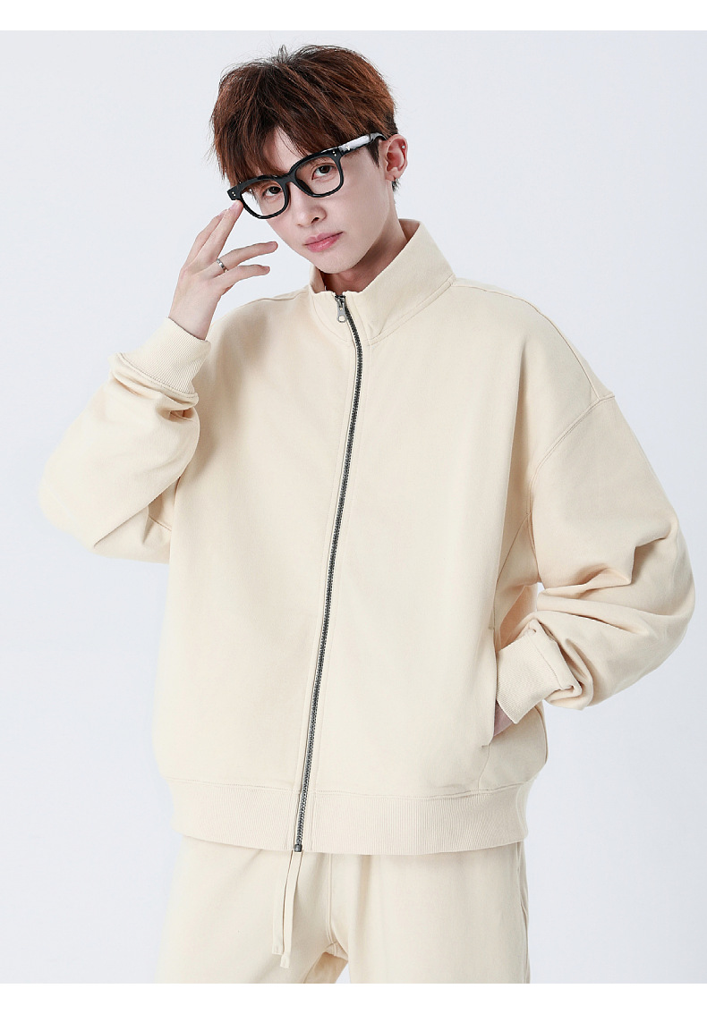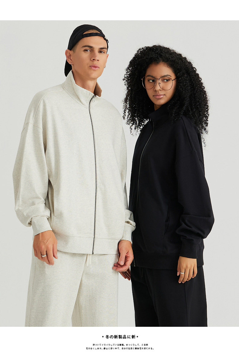 LVLV | 330g 헤비웨이트 순면 테리 소재 드롭숄더 스웨트셔츠, 스탠드 칼라, 아메리칸 스타일 트렌디 풀오버 캐주얼 지퍼 가디건
