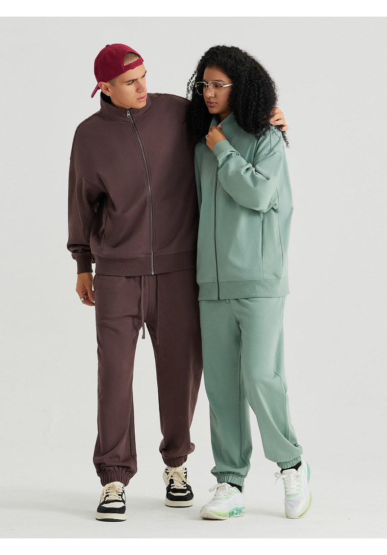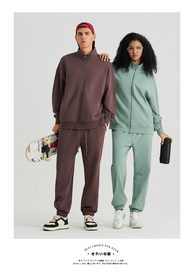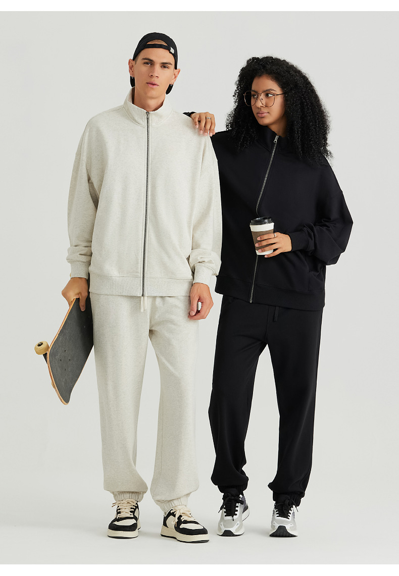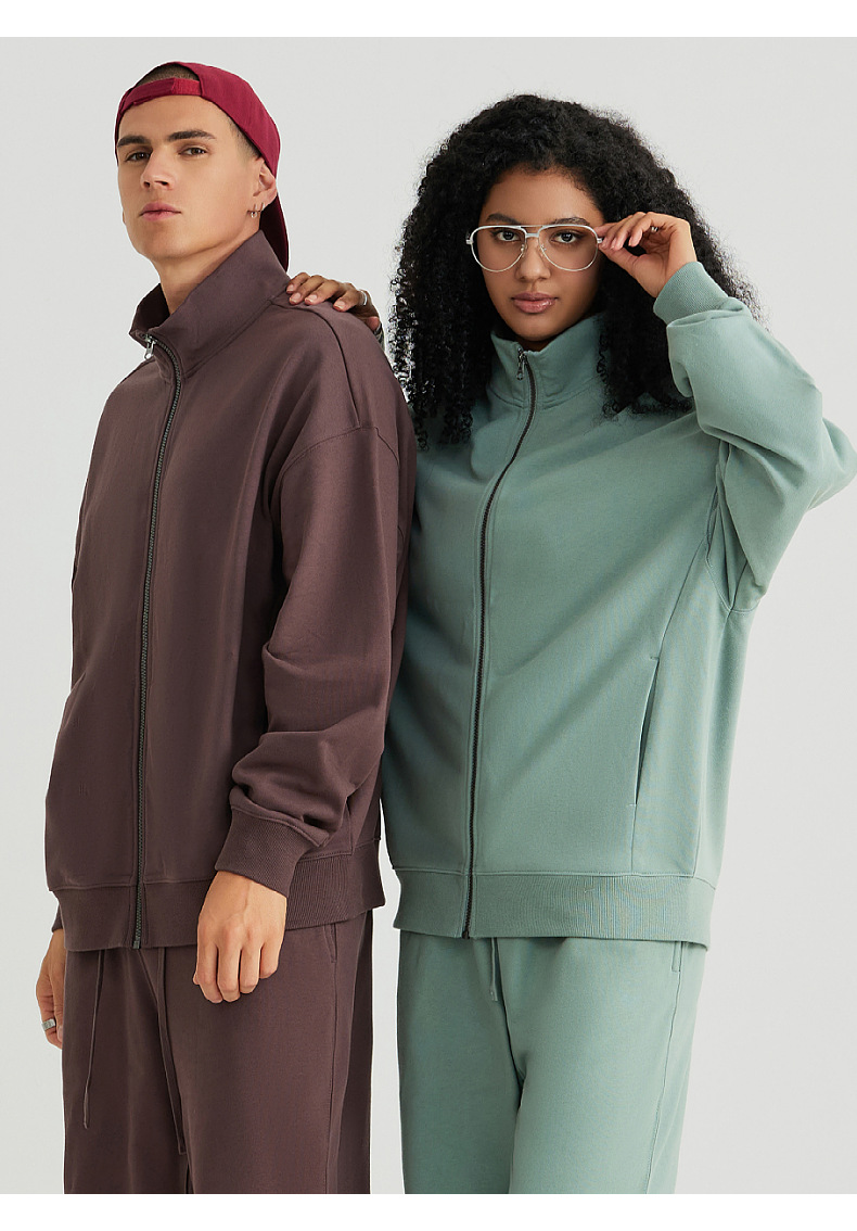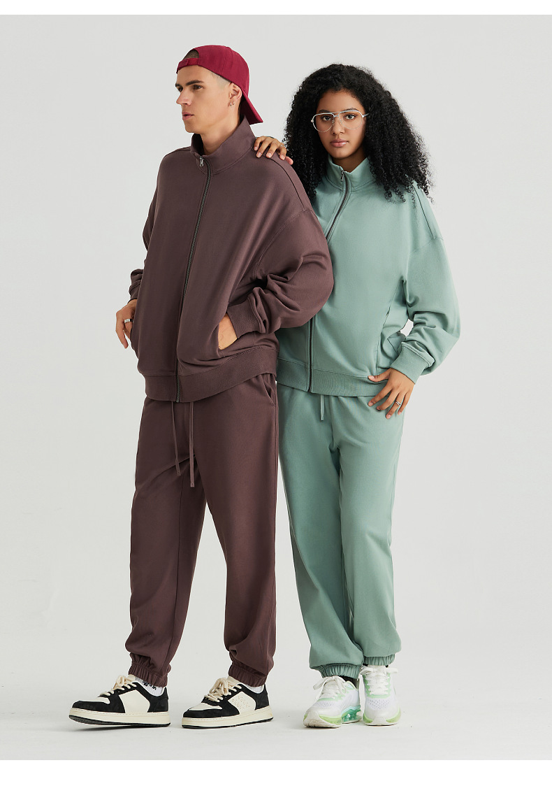 LVLV | 330g 헤비웨이트 순면 테리 소재 드롭숄더 스웨트셔츠, 스탠드 칼라, 아메리칸 스타일 트렌디 풀오버 캐주얼 지퍼 가디건