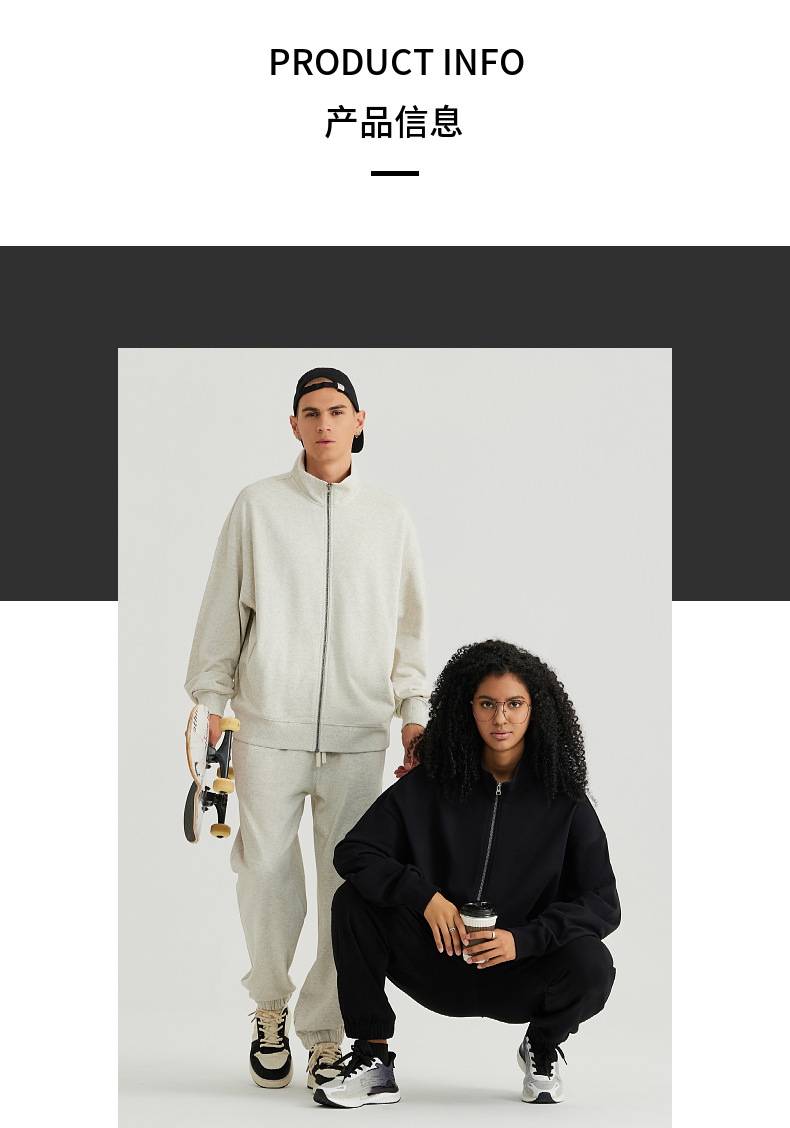 LVLV | 330g 헤비웨이트 순면 테리 소재 드롭숄더 스웨트셔츠, 스탠드 칼라, 아메리칸 스타일 트렌디 풀오버 캐주얼 지퍼 가디건스토어 가기