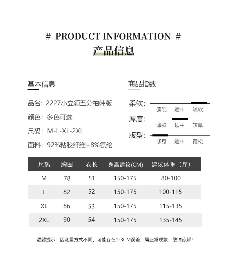 가을과 겨울 스몰 스탠드 칼라 반팔 티셔츠 여성용 초가을 새로운 한국식 슬림핏 하프 하이 칼라 5 점 슬리브 단색 내부 탑