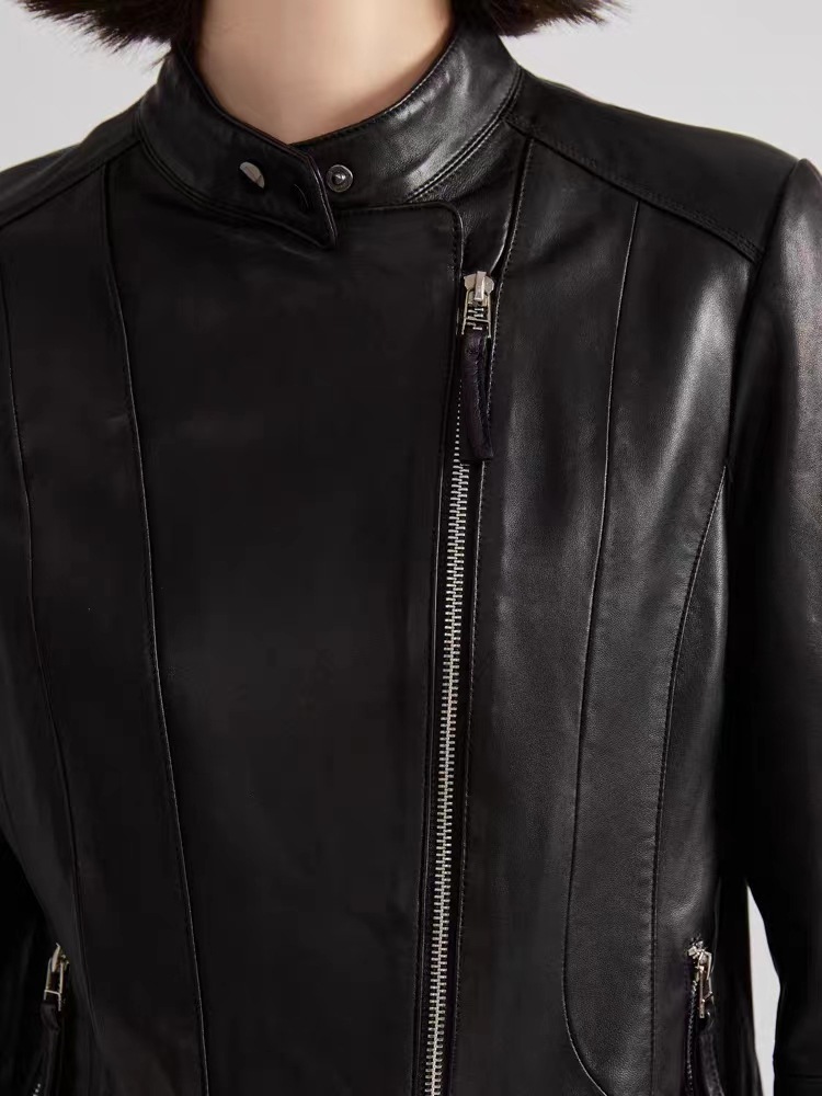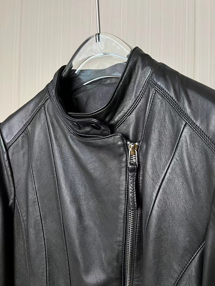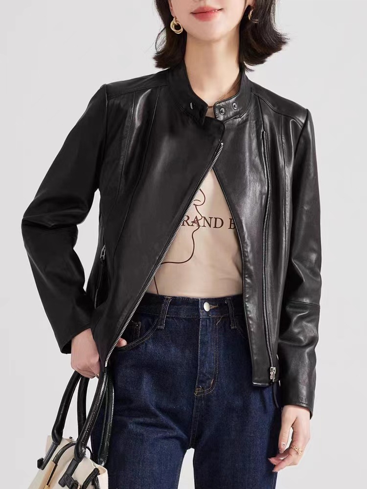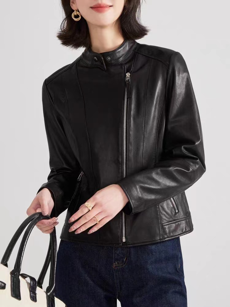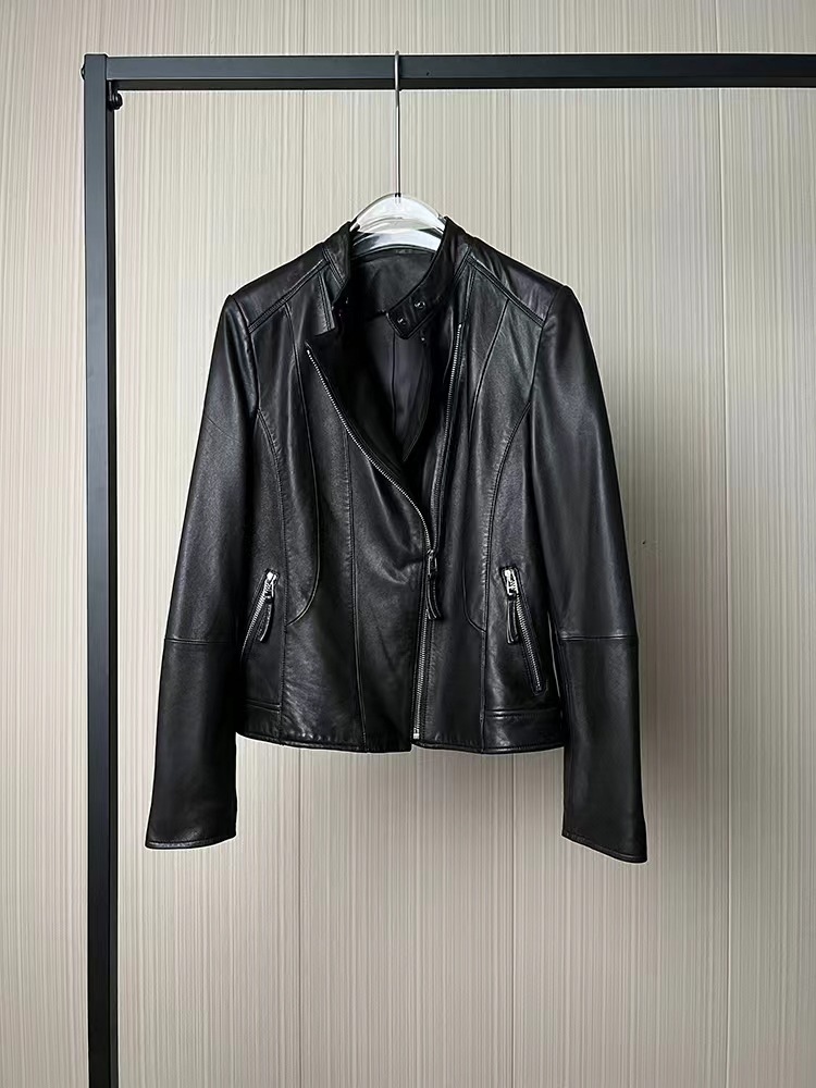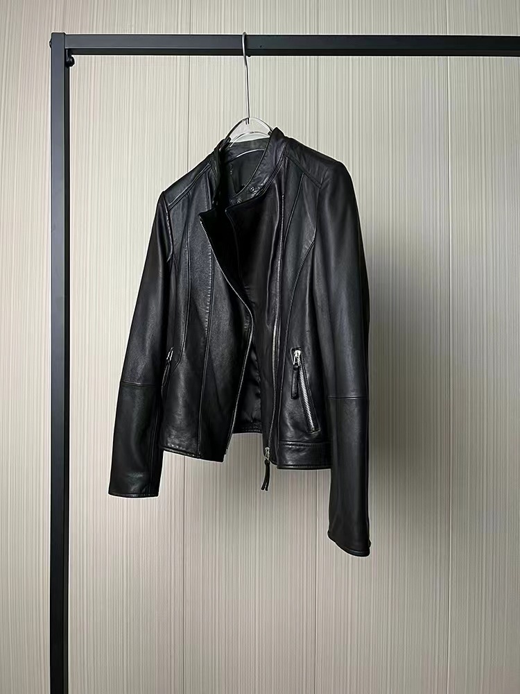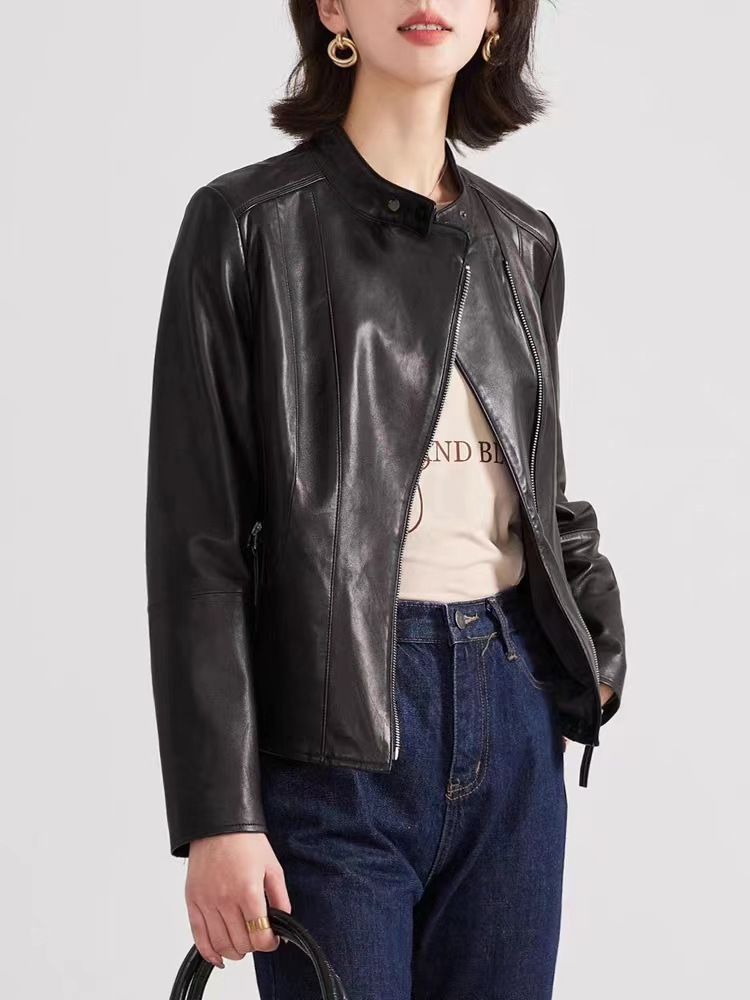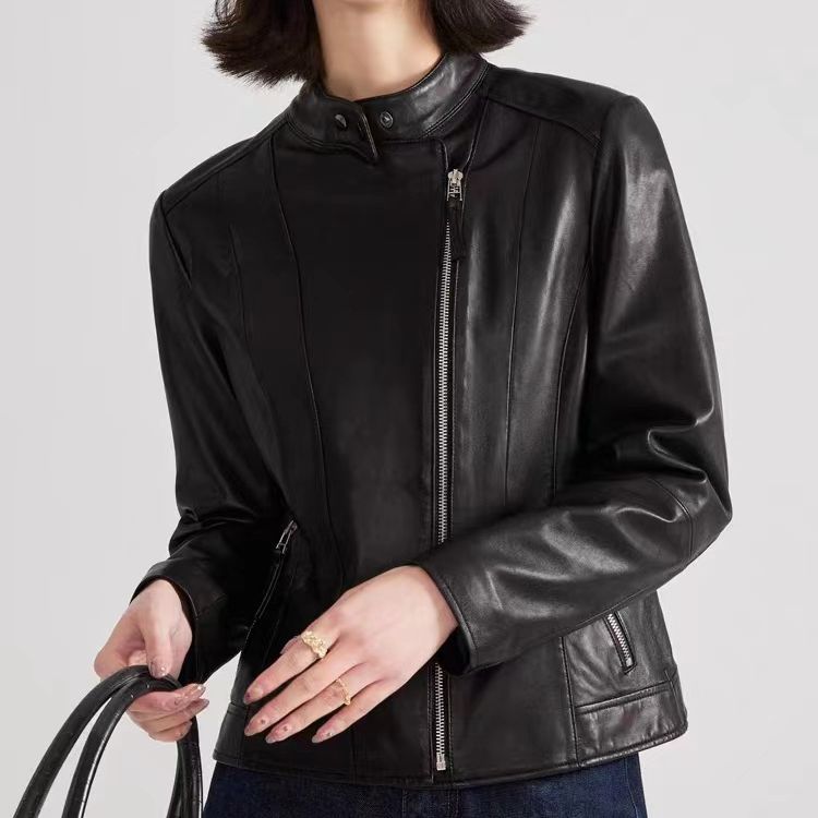 2023 정품 가죽 여성용 반 심은 양가죽 오토바이 가죽 자켓 짧은 슬림핏 칼라 봄과 가을 패션 잘 생긴스토어 가기