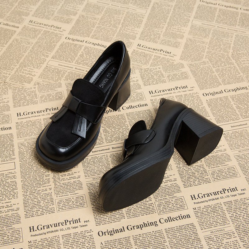 픽업 여자 712-6 이른 가을 새로운 여성 신발 로퍼 두꺼운 뒤꿈치 하이힐 폭발 여성의 다크 브라운 작은 가죽 신발스토어 가기