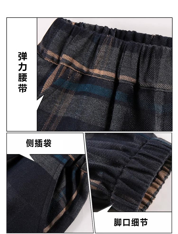 • 줄무늬 격자 무늬 빨간 줄무늬 바지 기모