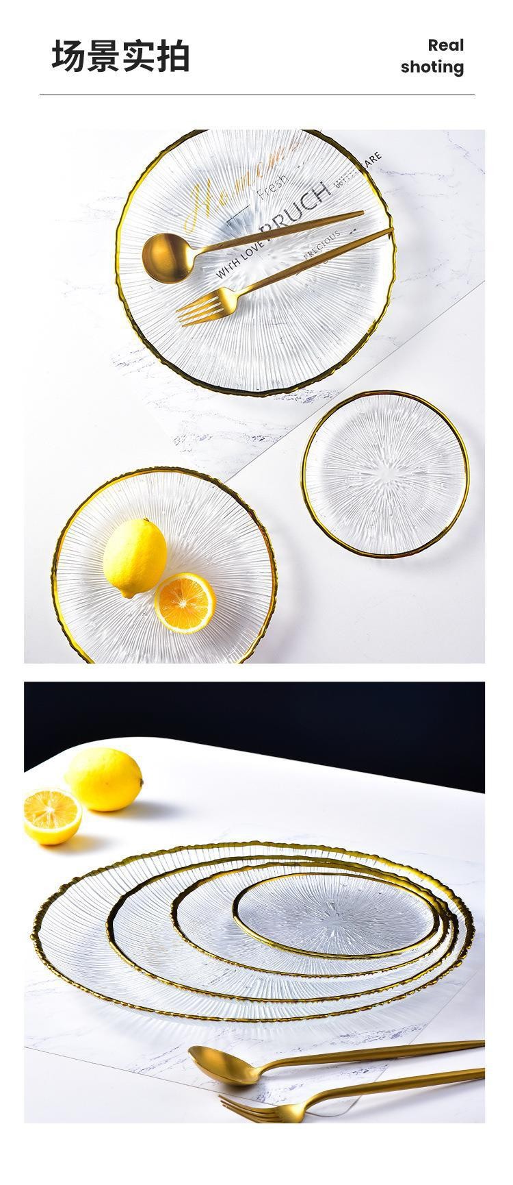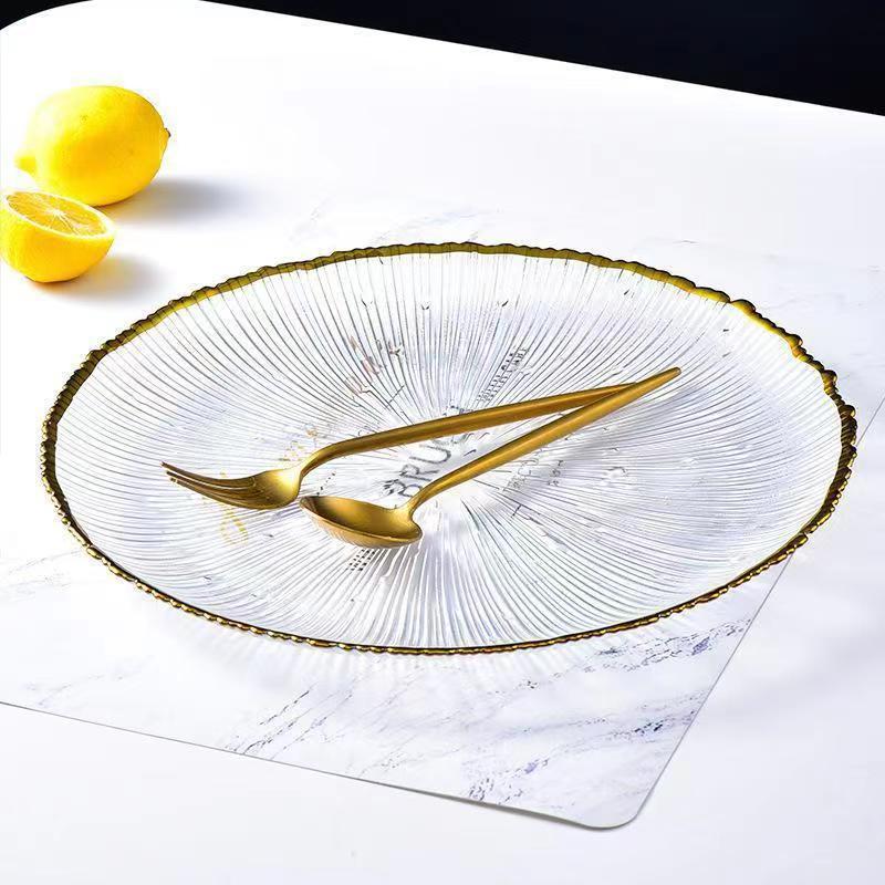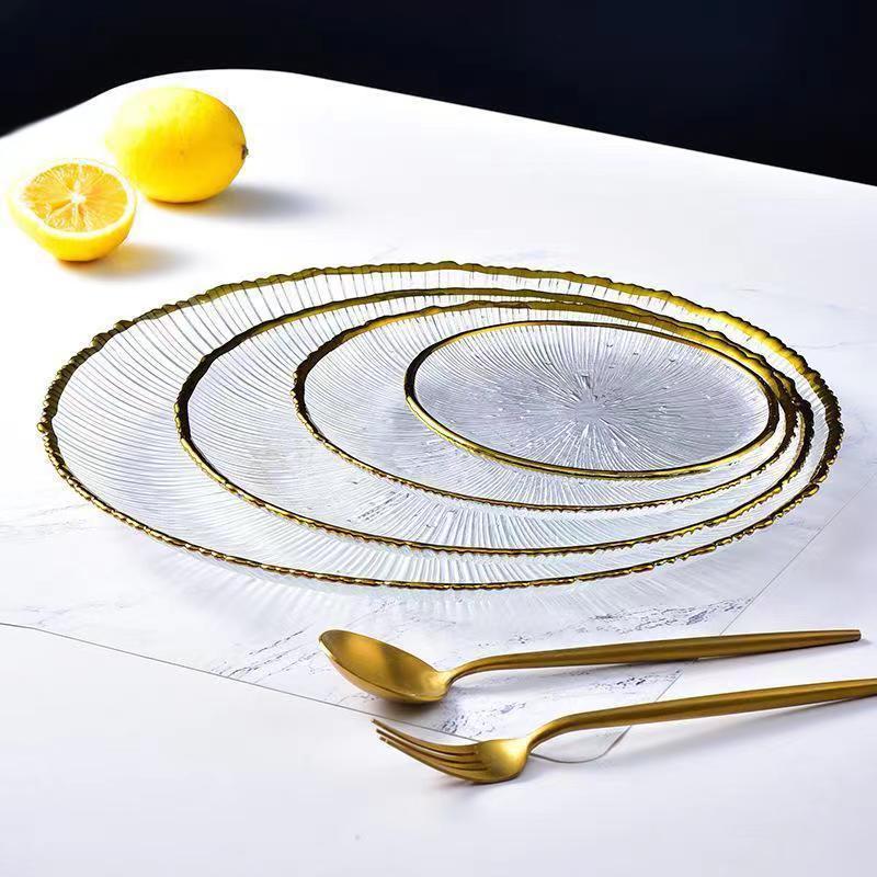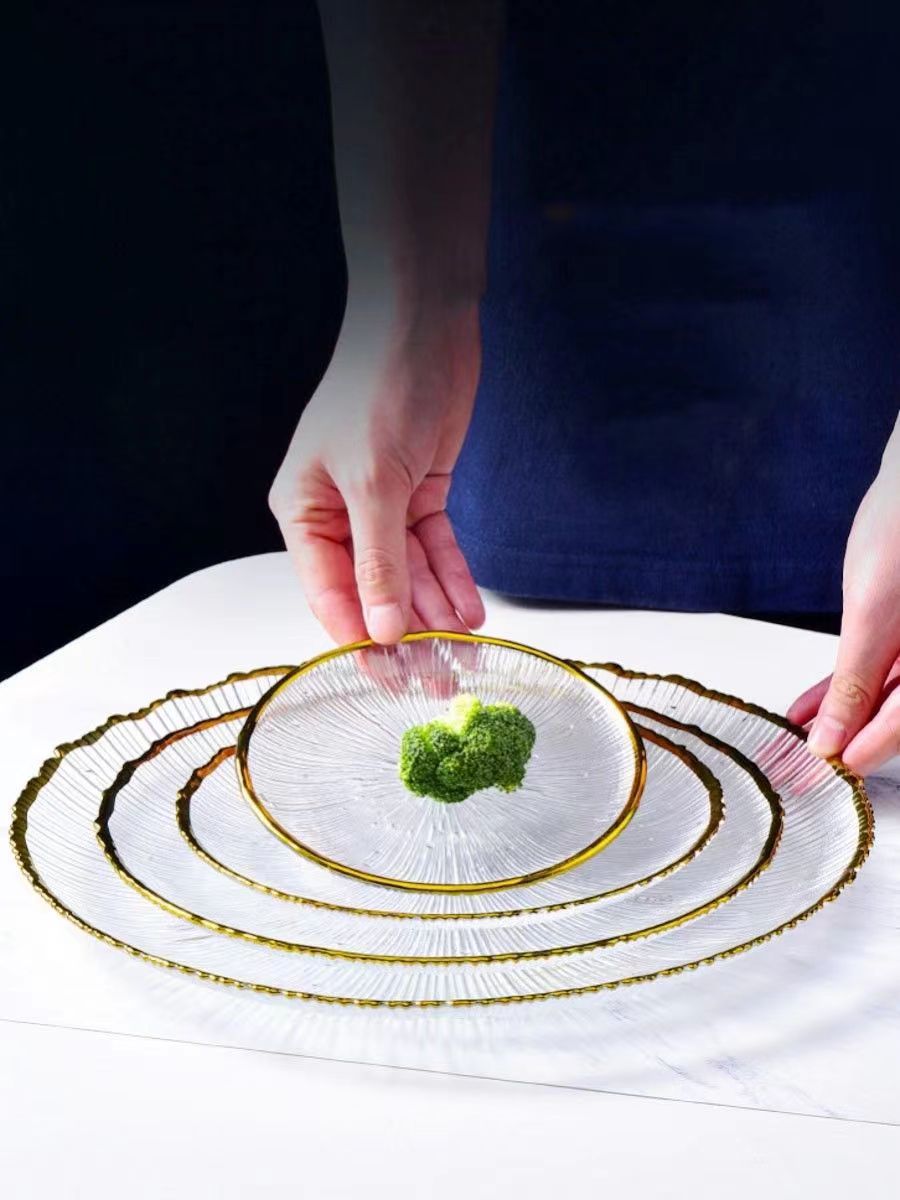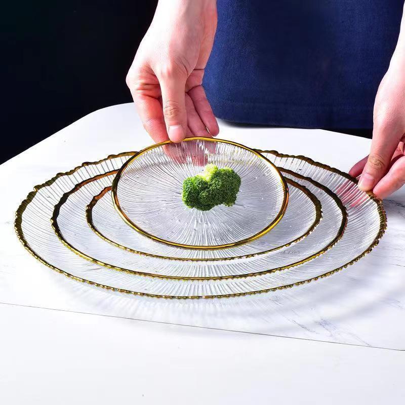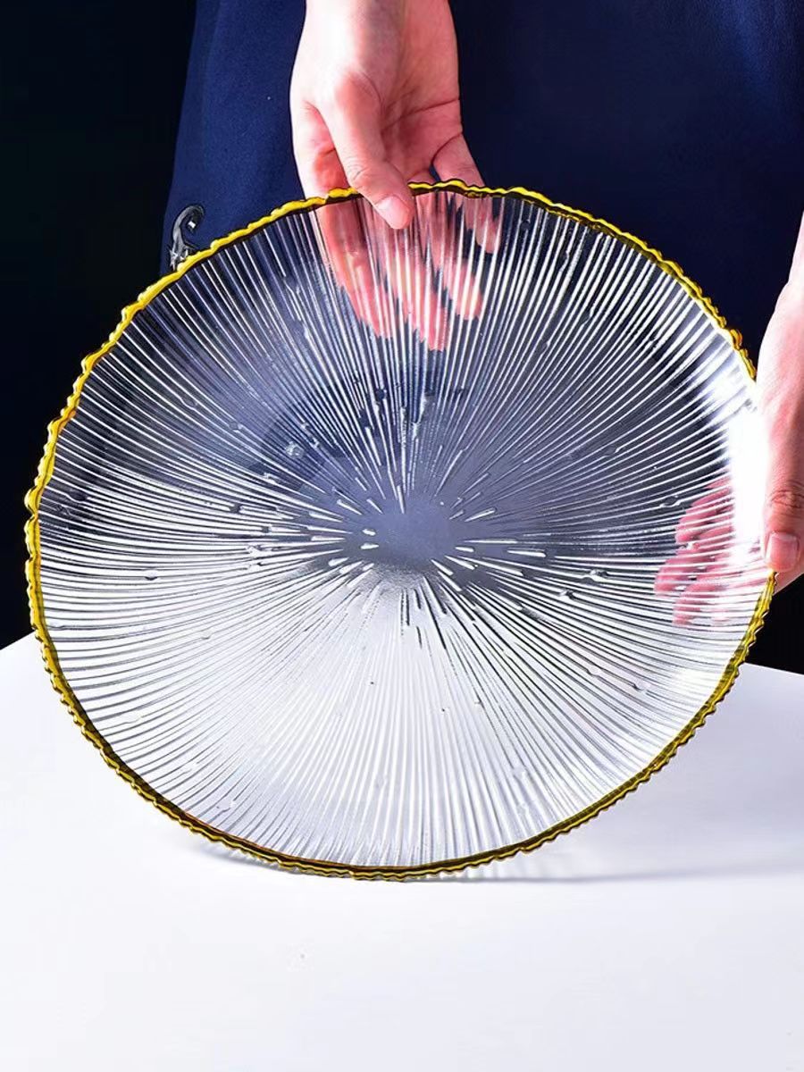 일본식 줄무늬 유리 접시, 인터넷 인기 가정용 투명 식기, 과일 접시, 양식 샐러드 그릇, 디너 접시, 접시, 불꽃놀이스토어 가기