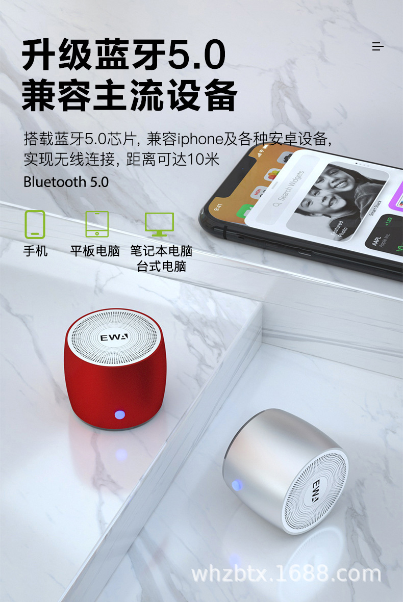 사랑을위한 EWA 사운드 103 무선 블루투스 소형 스테레오 서브 우퍼 미니 야외 자동차 플레이어 휴대용 워크맨스토어 가기