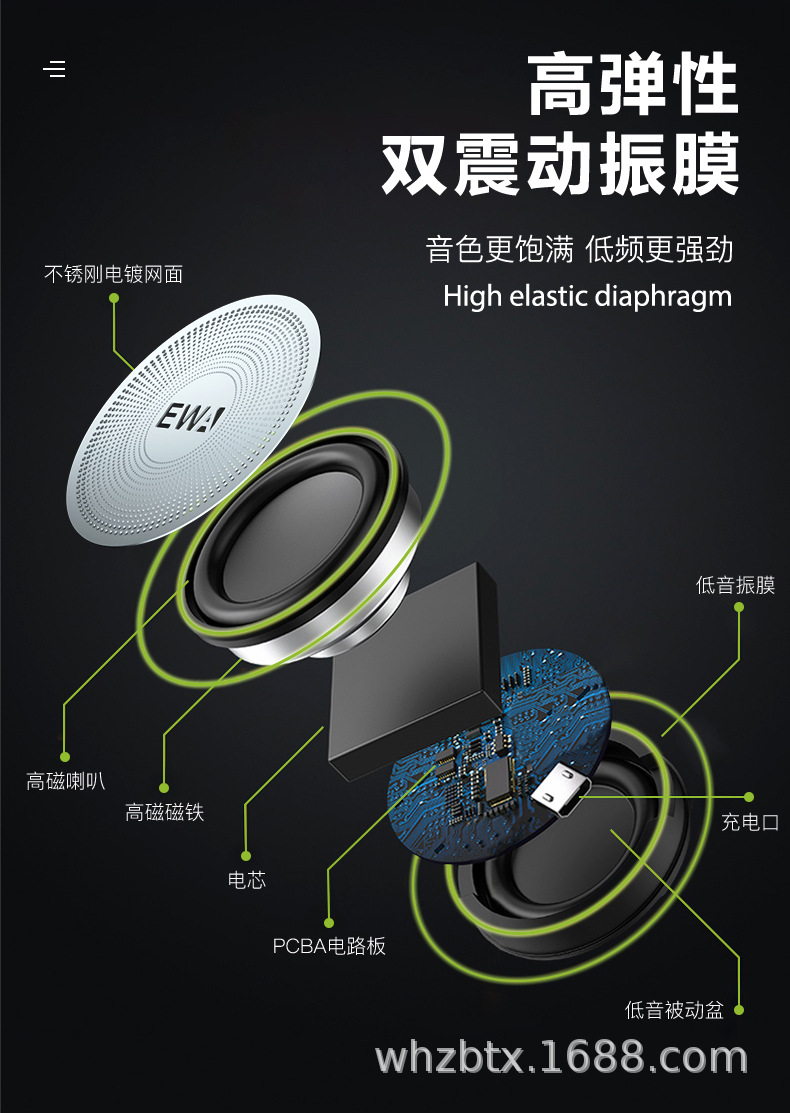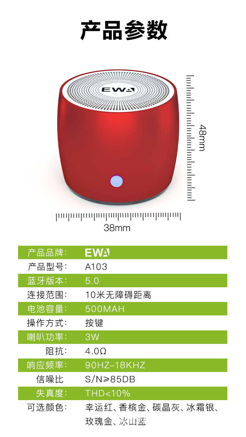 사랑을위한 EWA 사운드 103 무선 블루투스 소형 스테레오 서브 우퍼 미니 야외 자동차 플레이어 휴대용 워크맨