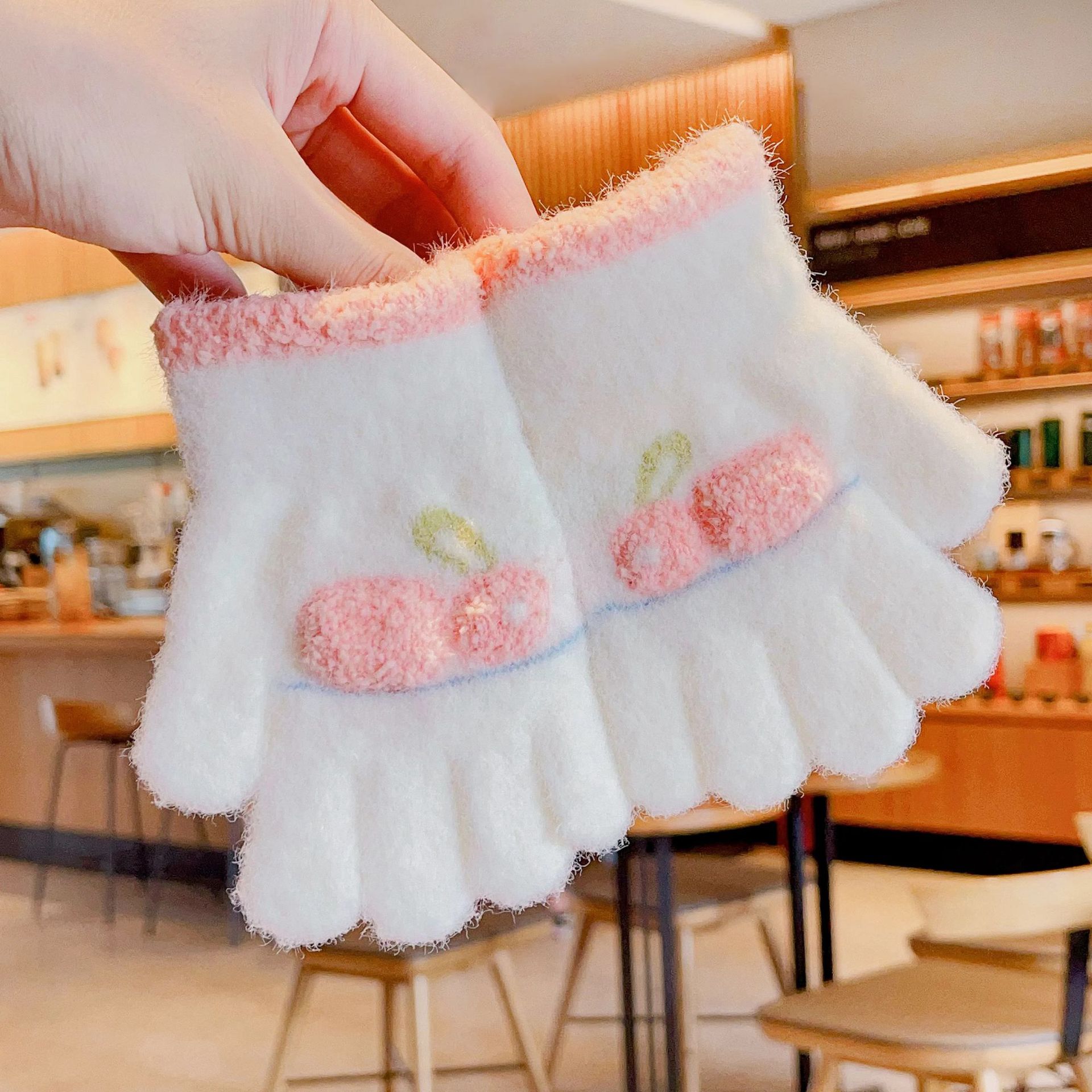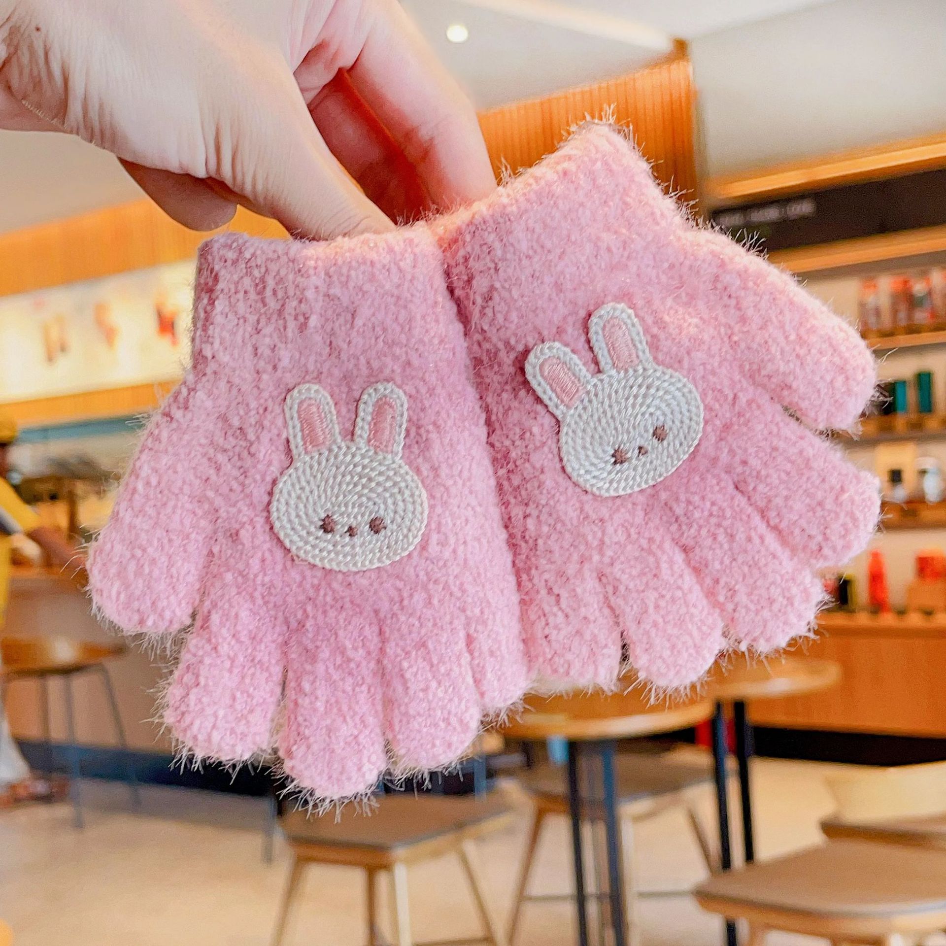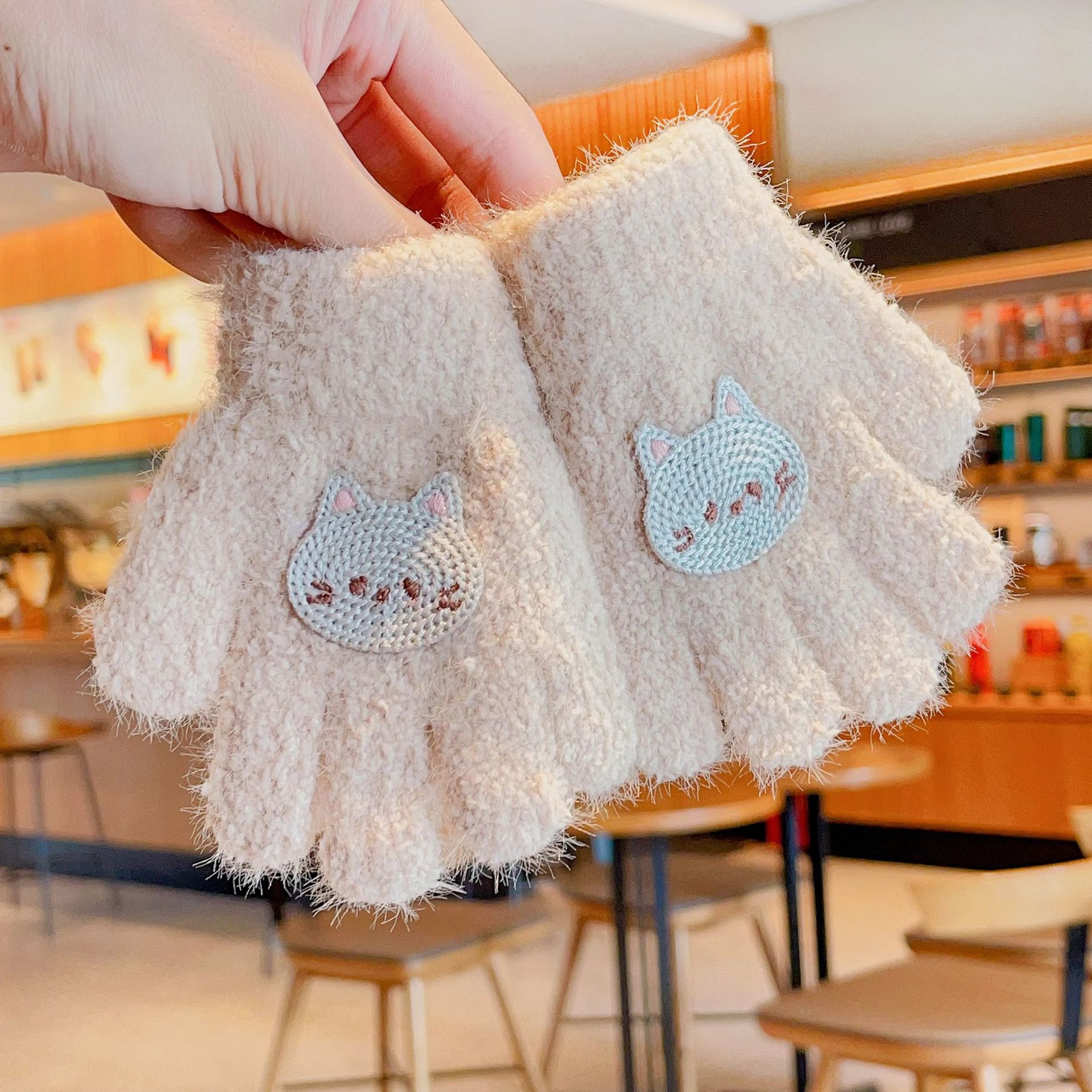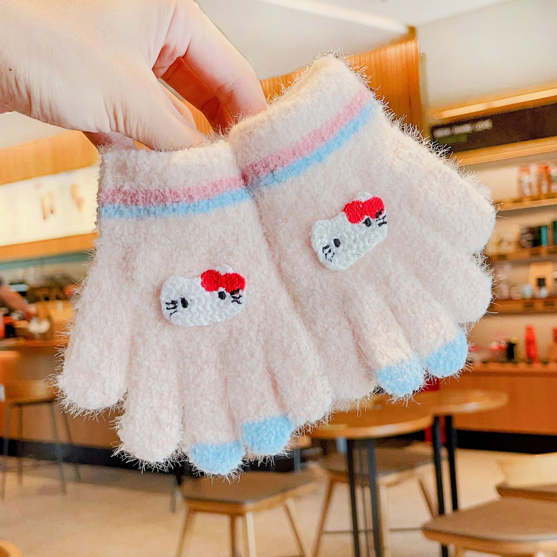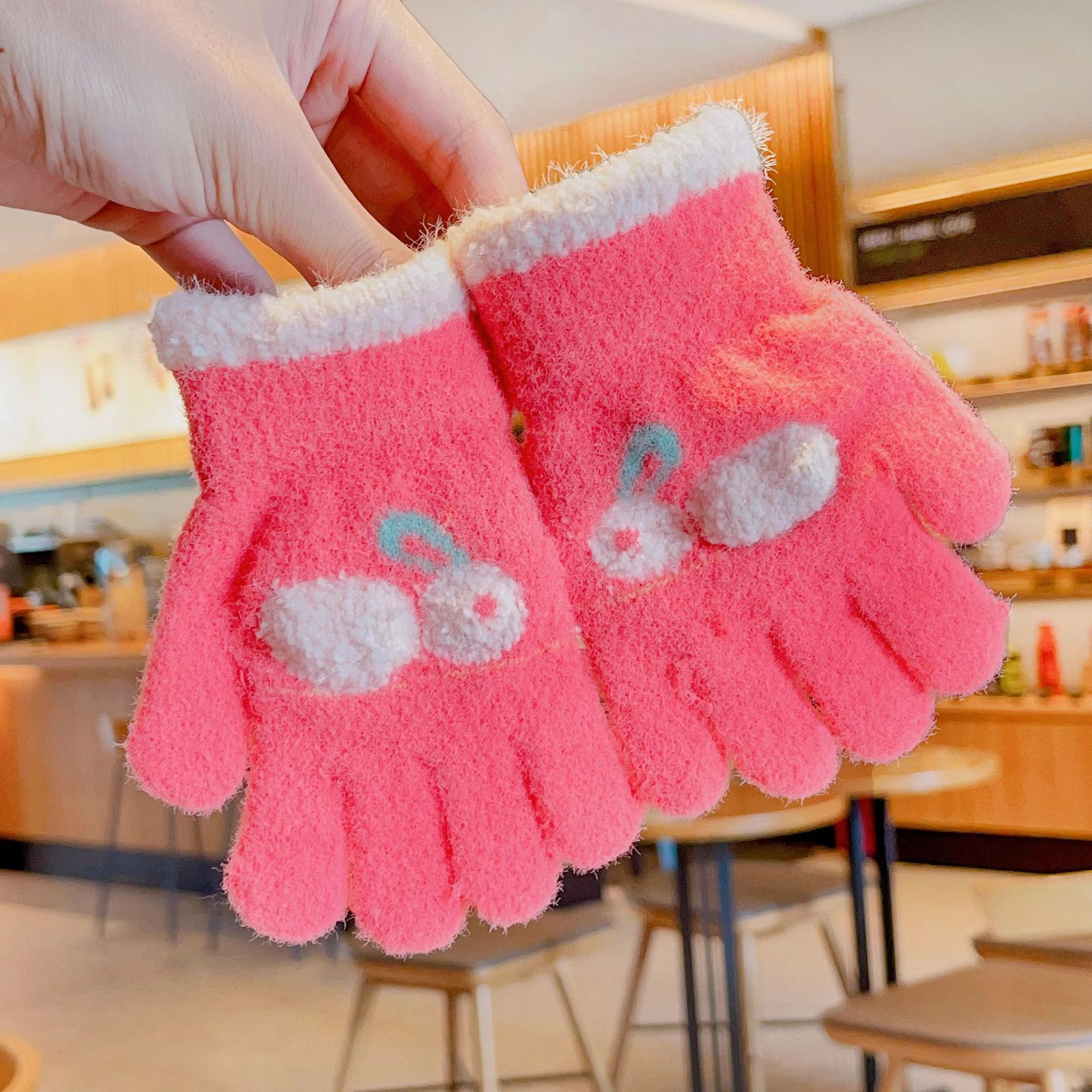 2023 가을과 겨울 새 어린이 귀여운 곰 따뜻한 장갑 아기 겨울 니트 다섯 손가락 니트 따뜻한 장갑스토어 가기