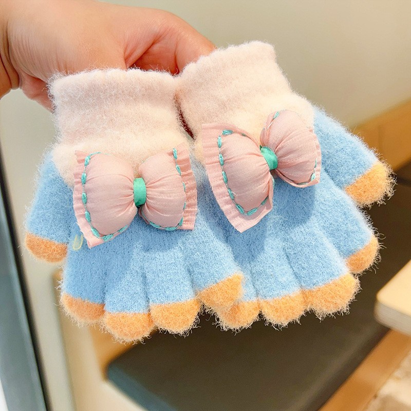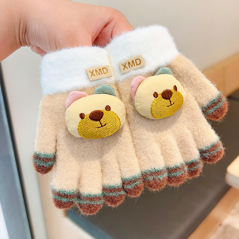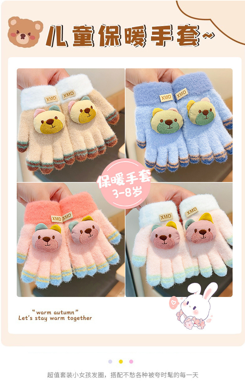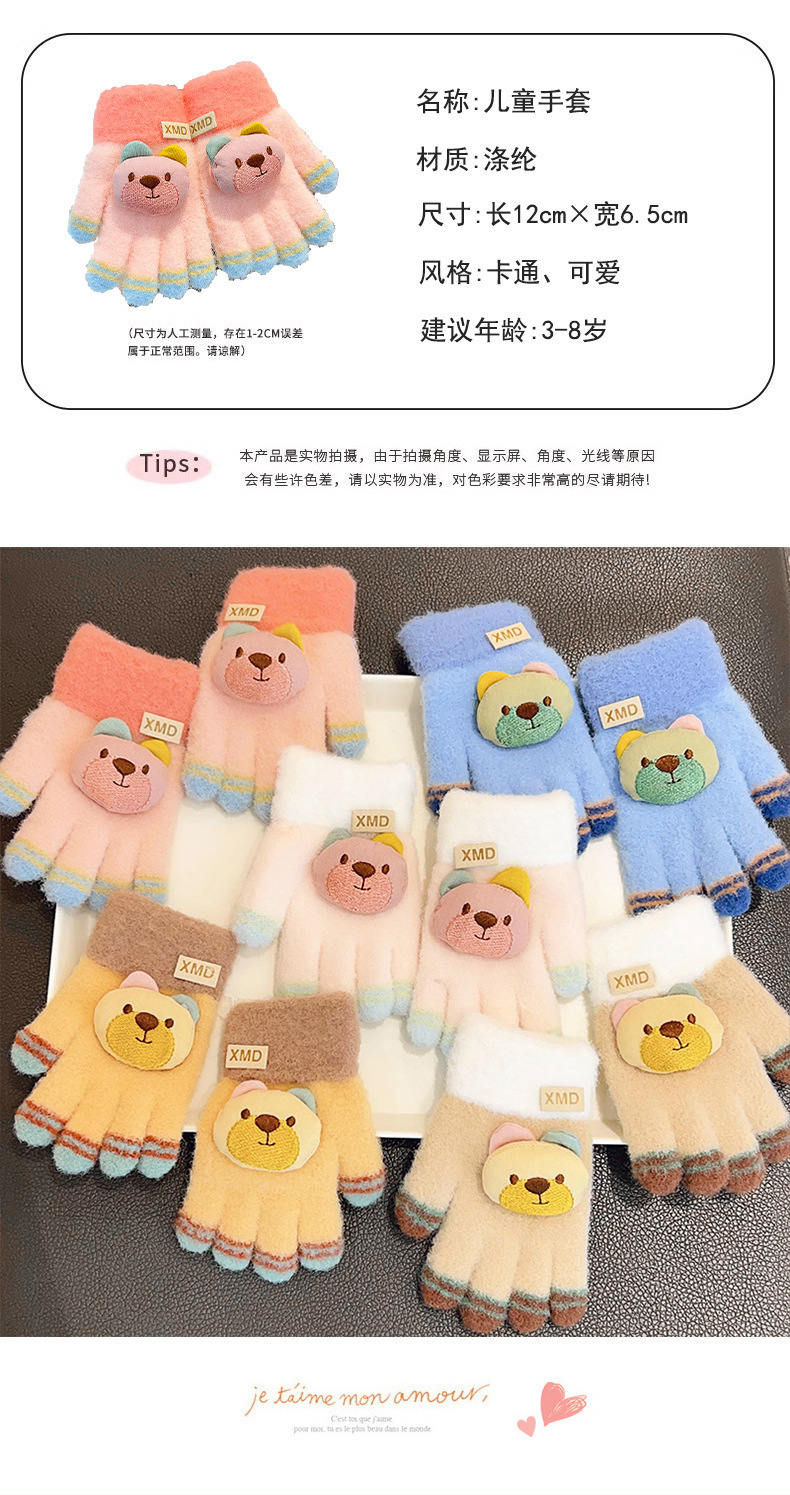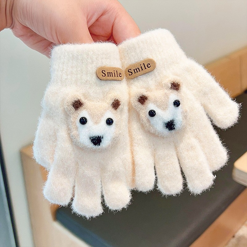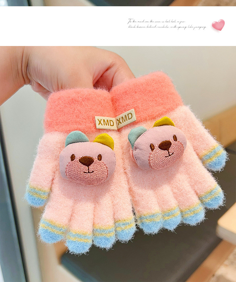 2023 가을과 겨울 새 어린이 귀여운 곰 따뜻한 장갑 아기 겨울 니트 다섯 손가락 니트 따뜻한 장갑