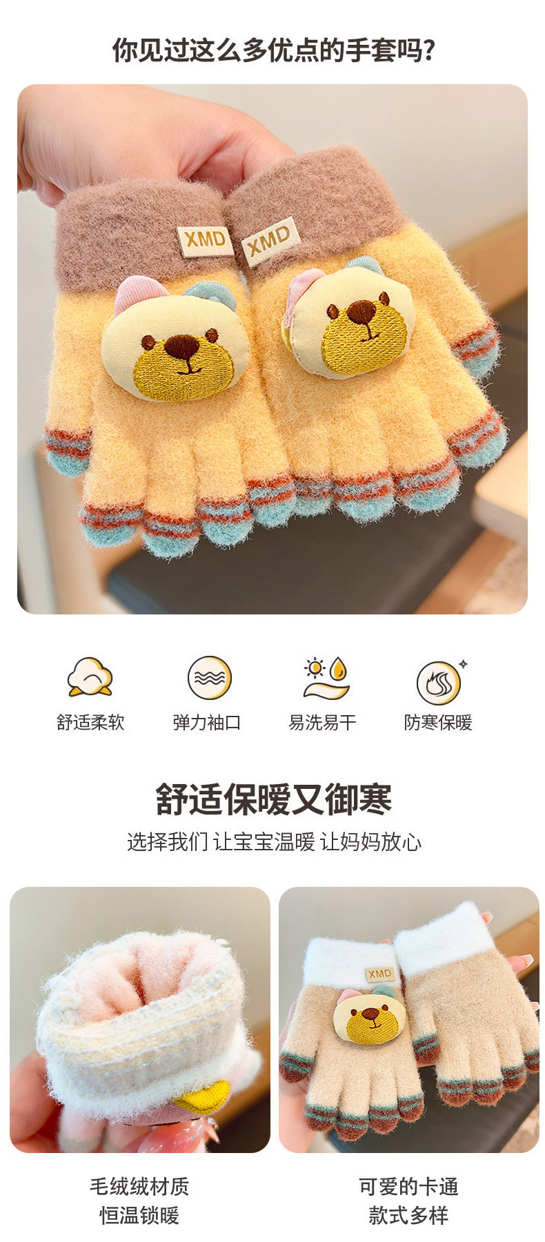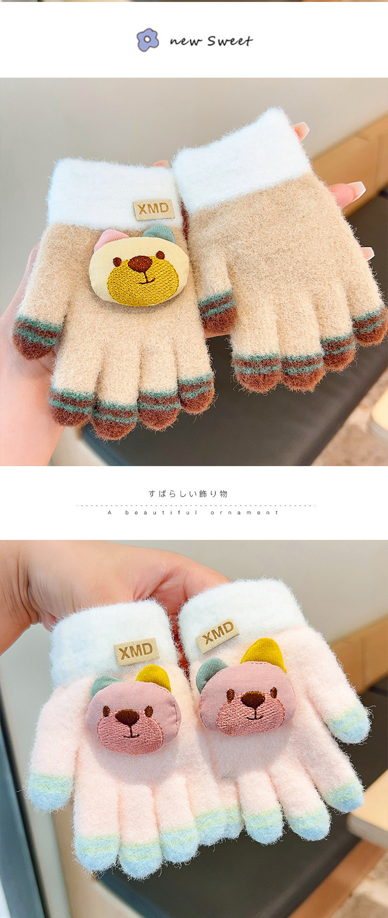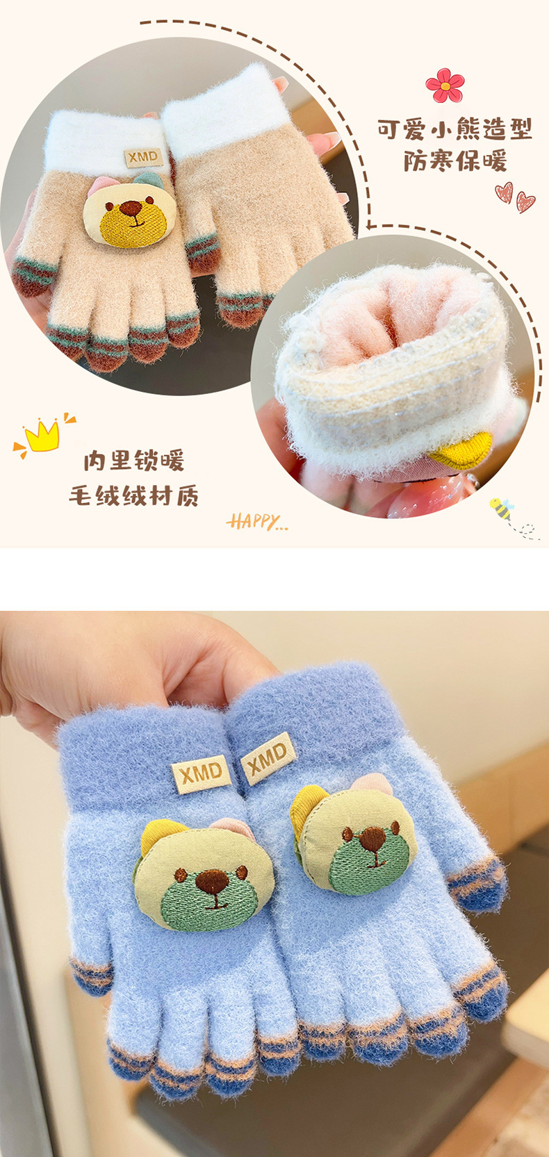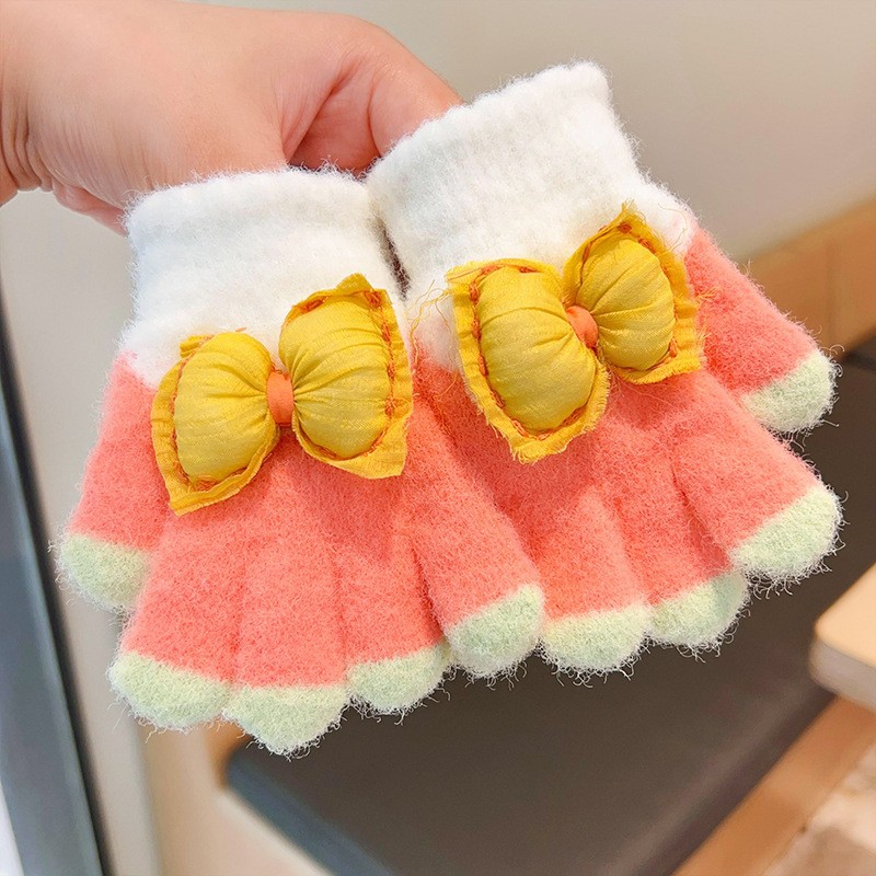 2023 가을과 겨울 새 어린이 귀여운 곰 따뜻한 장갑 아기 겨울 니트 다섯 손가락 니트 따뜻한 장갑