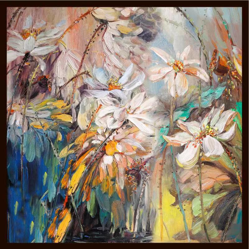 • 짙은 보라색 테두리가 있는 유화 꽃병