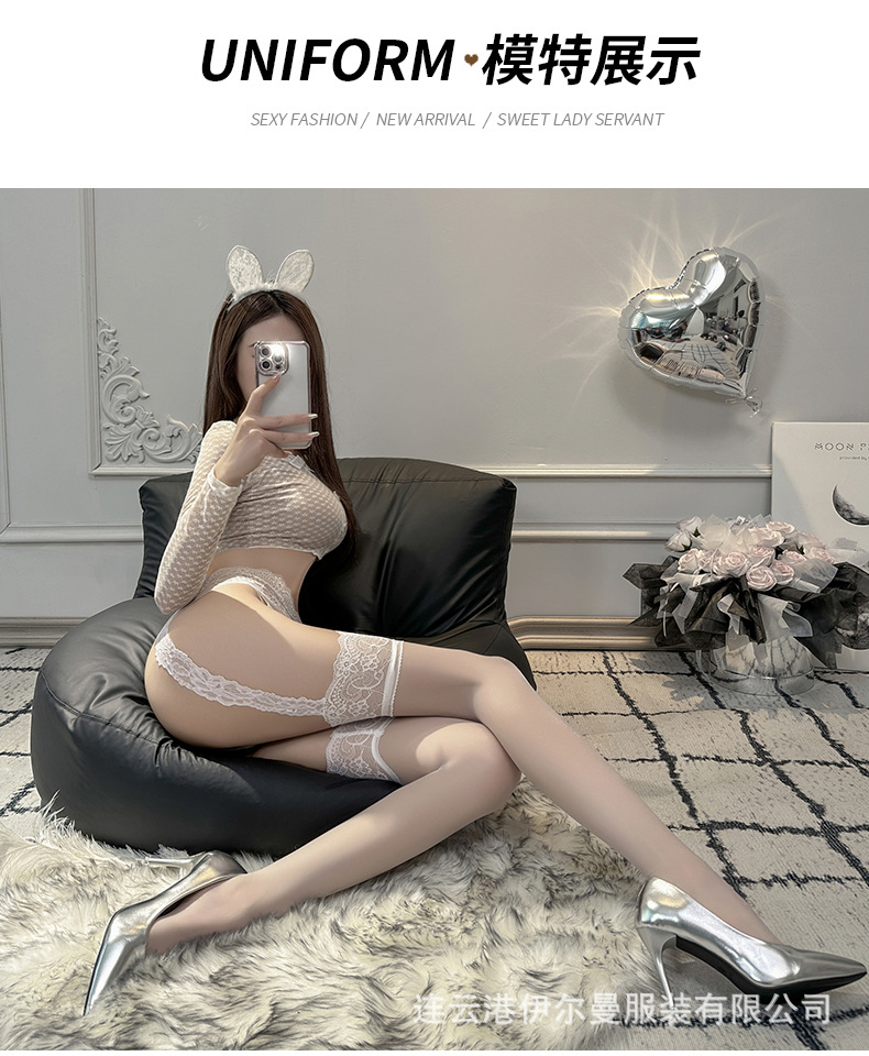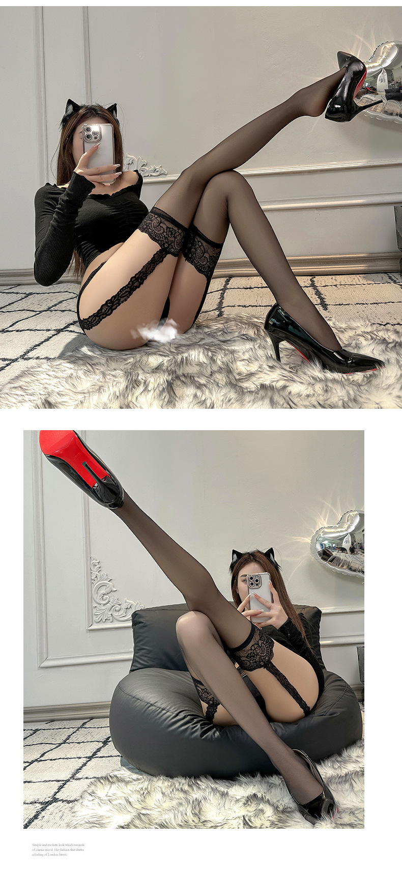 재미있는 유럽과 미국 여성의 인터넷 유명인 섹시한 Didi Reveling 스타킹 가터 벨트 조각 중공 레이스 관점 높은 튜브 그물 스타킹스토어 가기