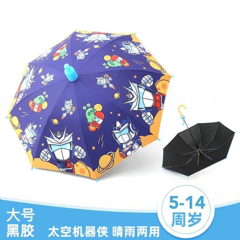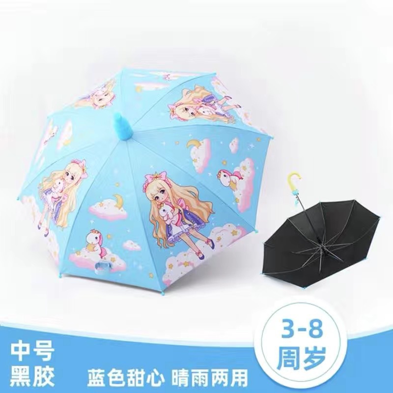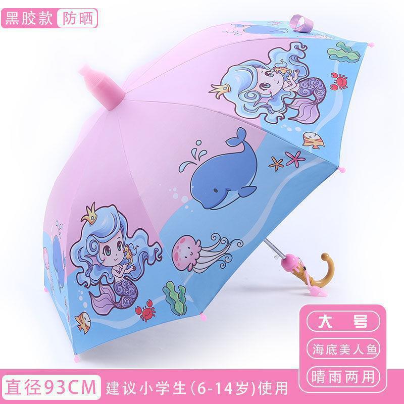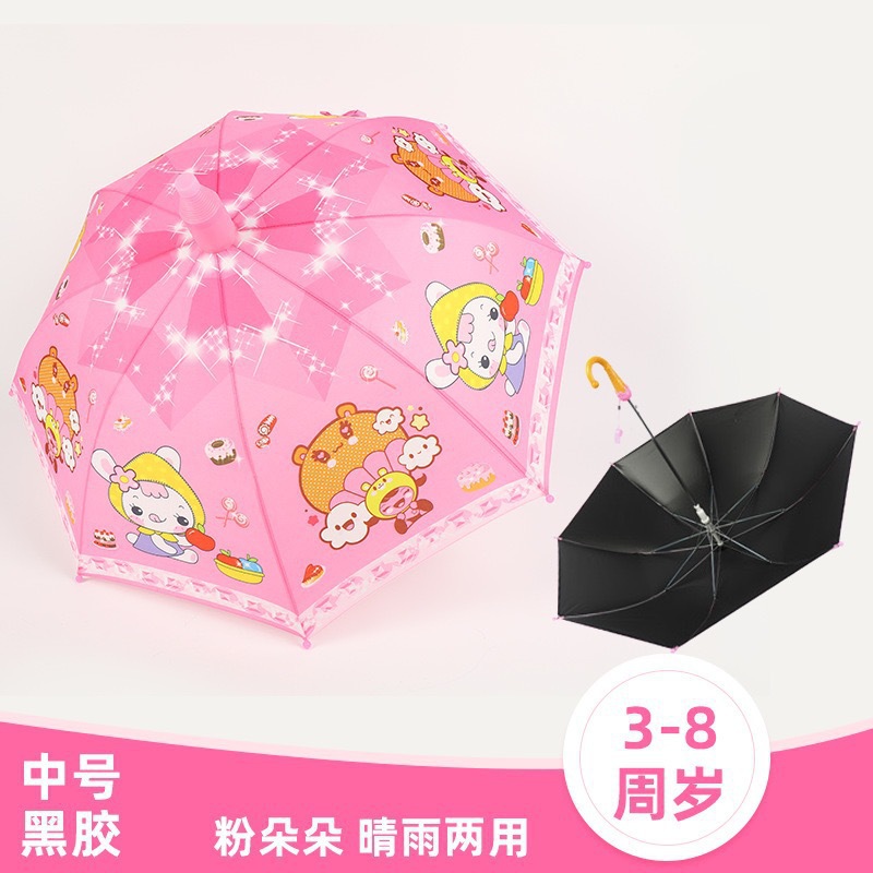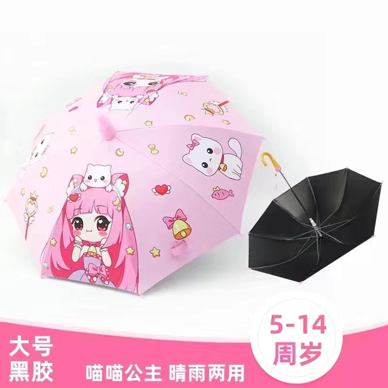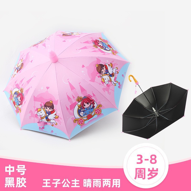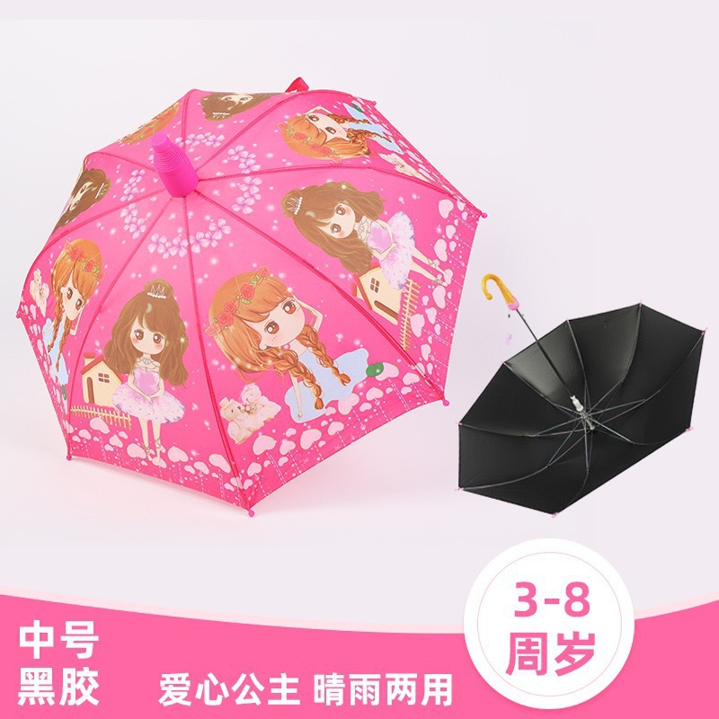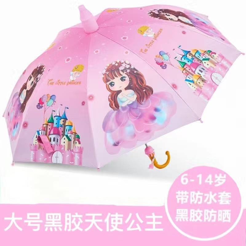 어린이 검은 고무 맑고 비 이중 목적 긴 손잡이 우산 유치원 초경량 초등학교 소년 소녀 자동 공주 작은 우산