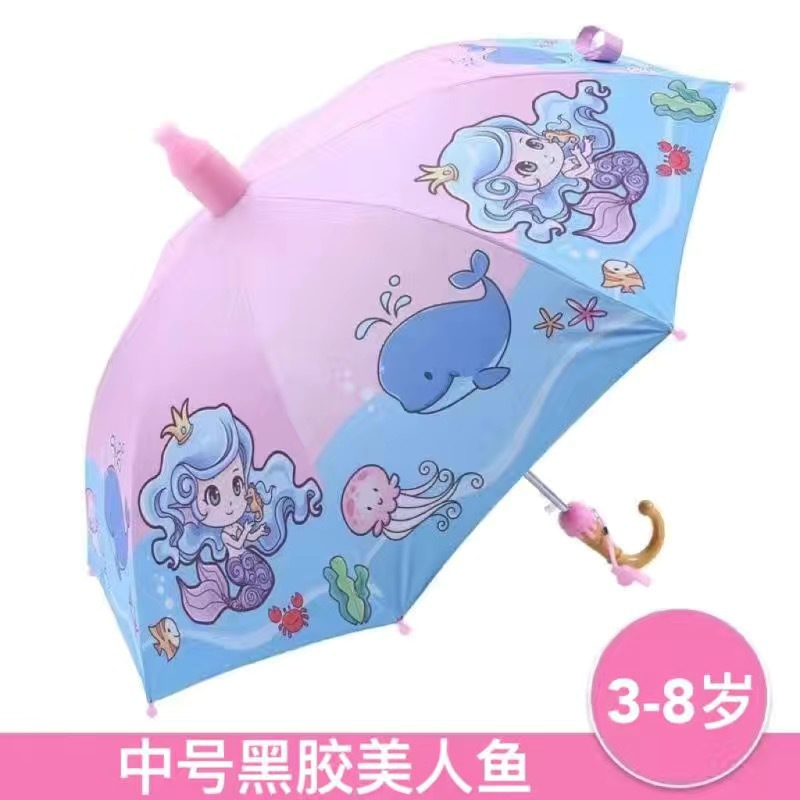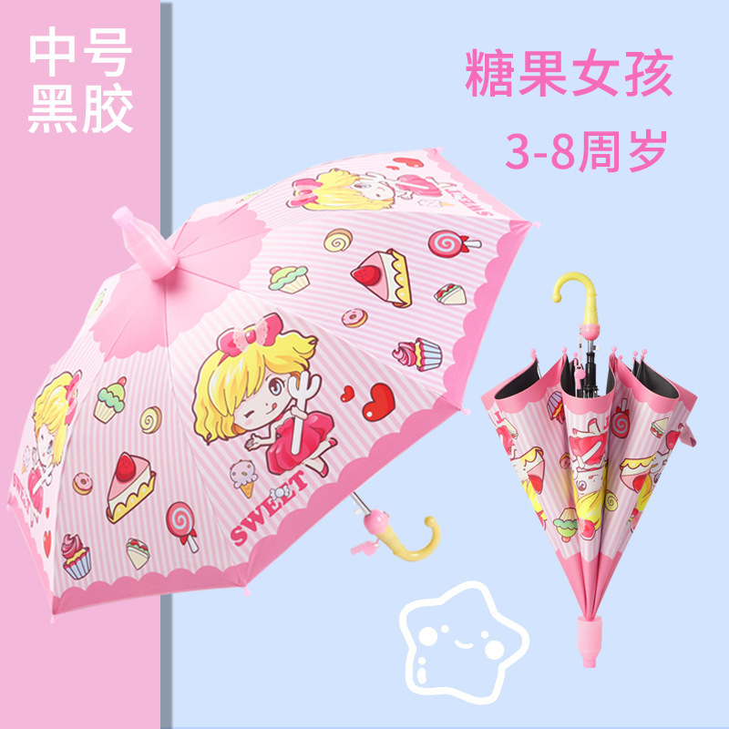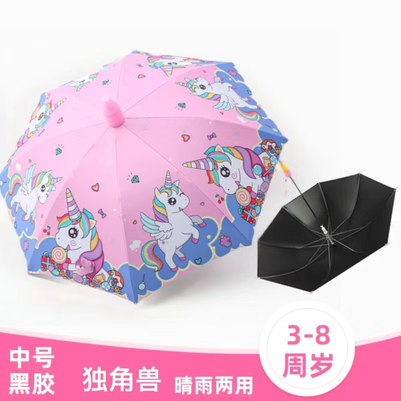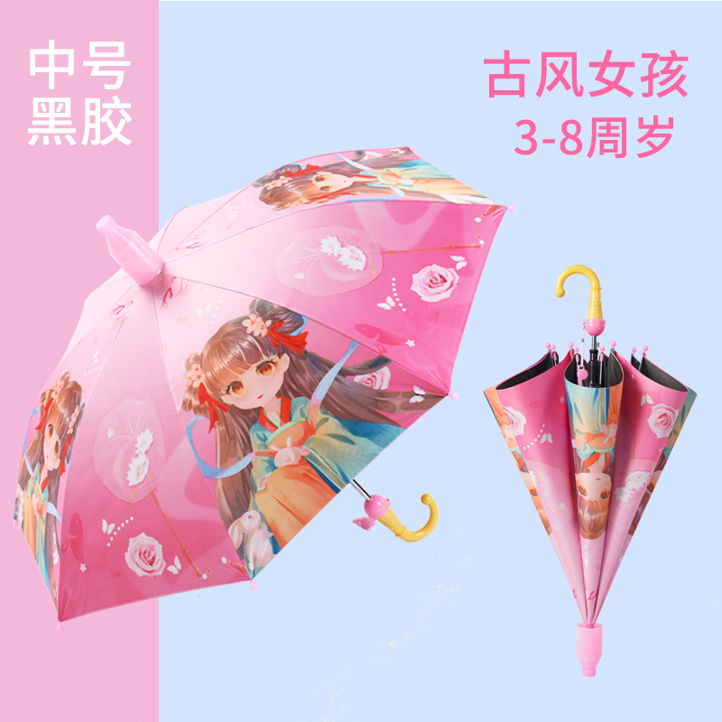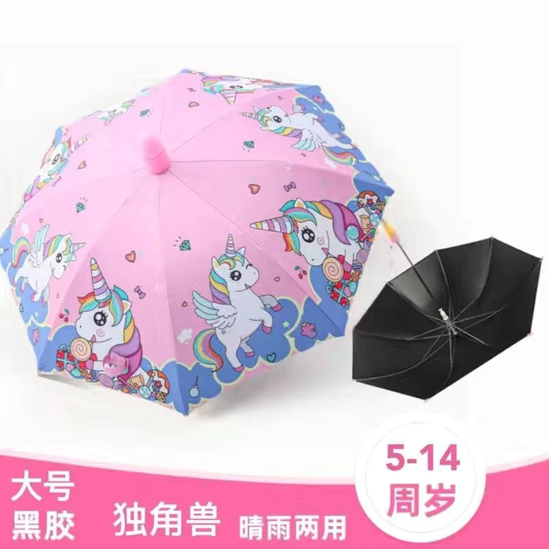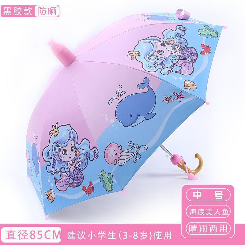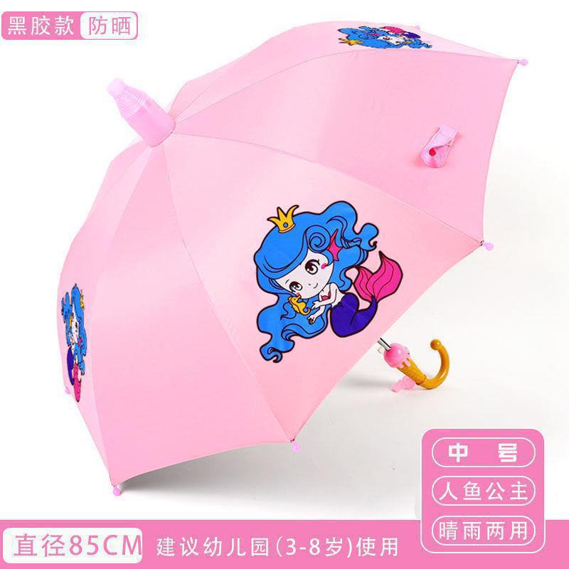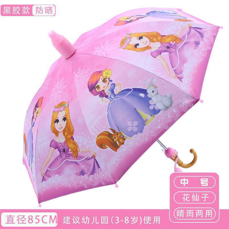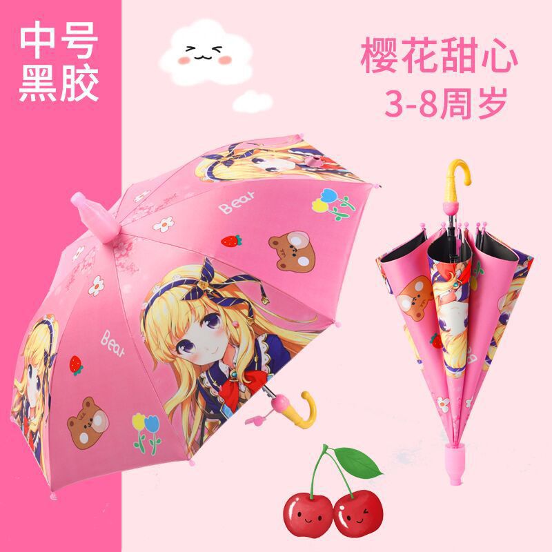 어린이 검은 고무 맑고 비 이중 목적 긴 손잡이 우산 유치원 초경량 초등학교 소년 소녀 자동 공주 작은 우산