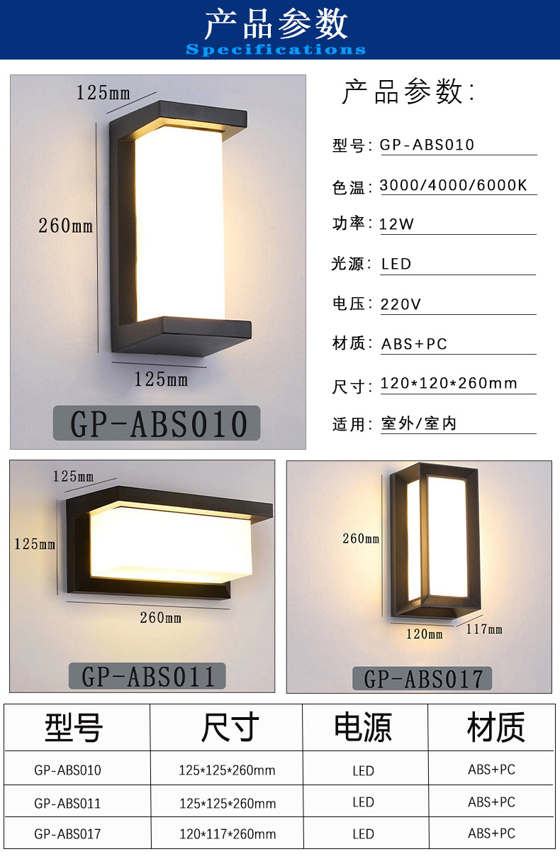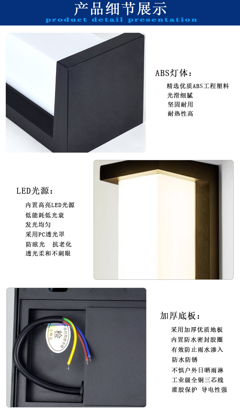 플라스틱 야외 벽등 LED 심플 모던 방수 복도 현관 정원 발코니 테라스 야외 벽 정원등