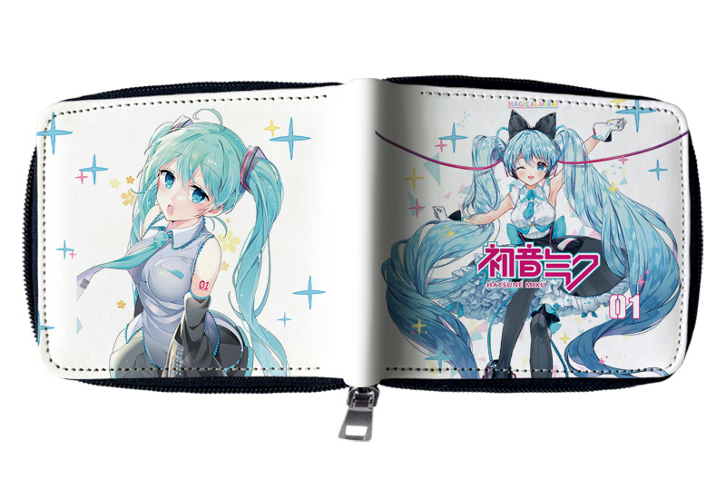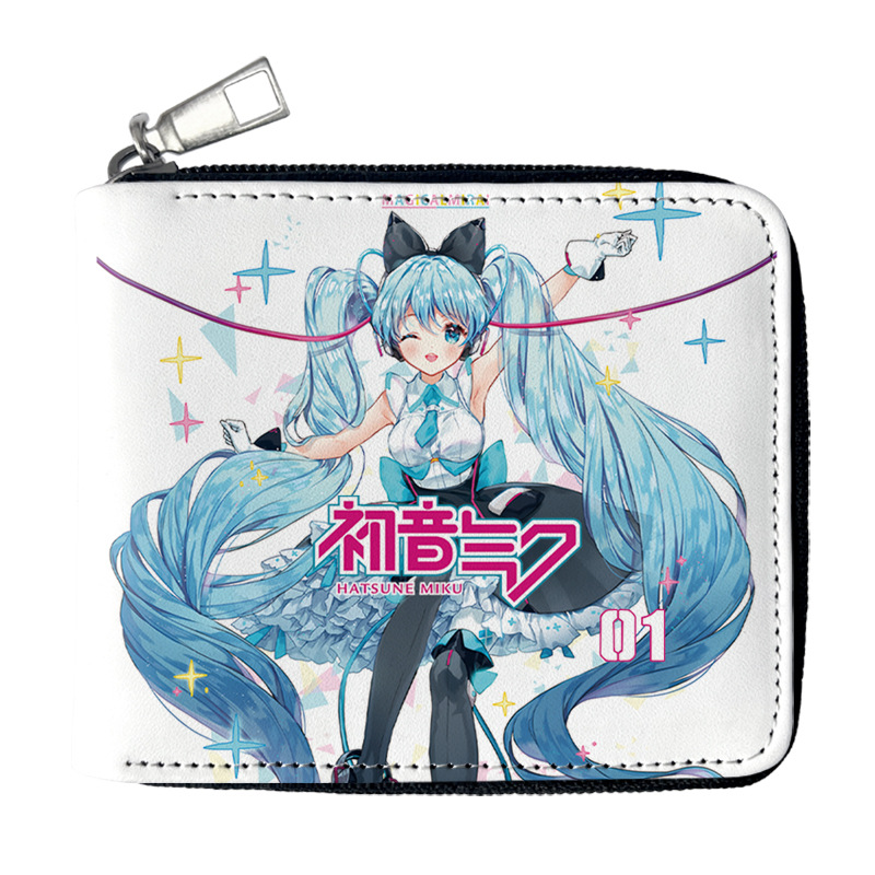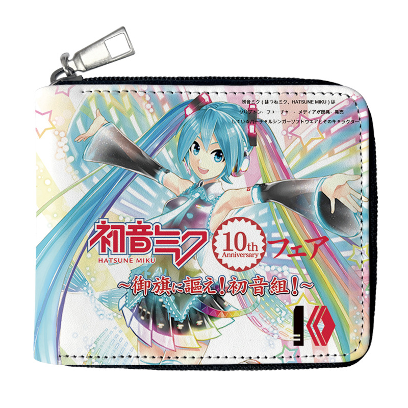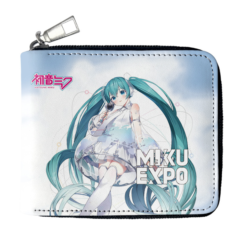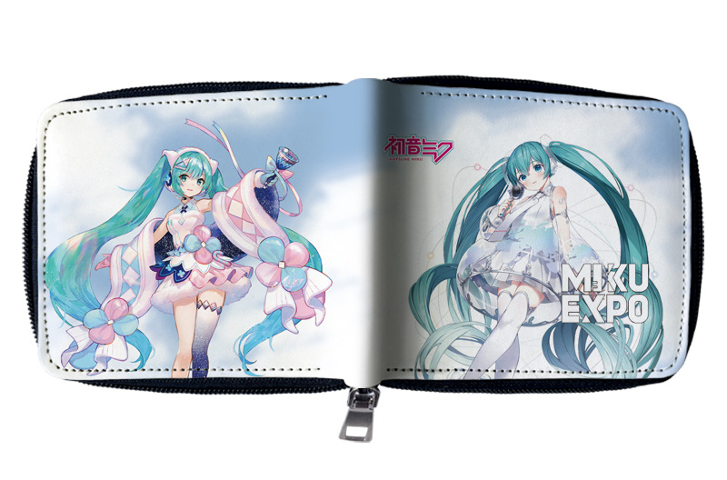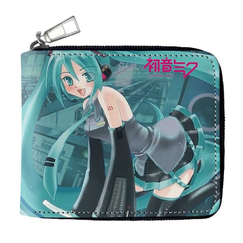 하츠네 미래 애니메이션 주변기기 짧은 지퍼 지갑 학생 애니메이션 접는 가죽 지갑 카드 가방 동전 지갑