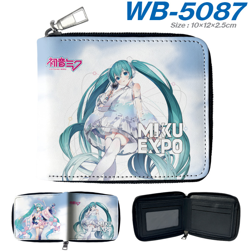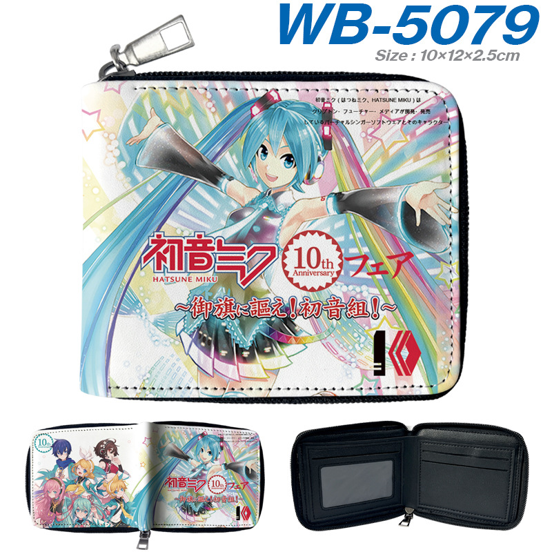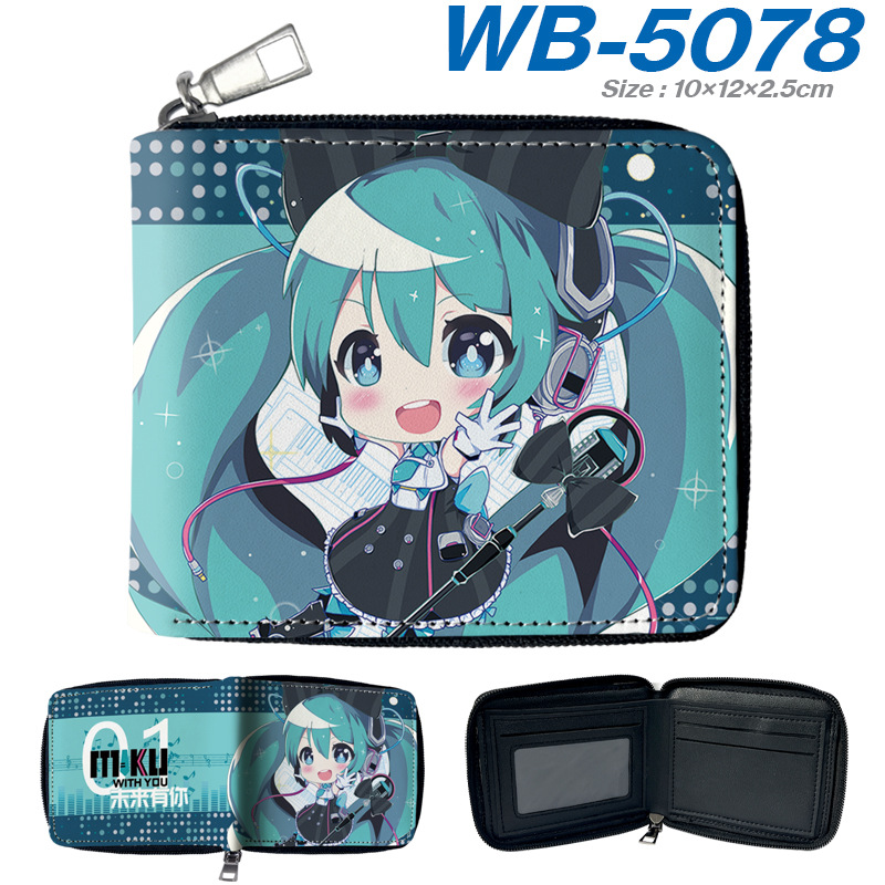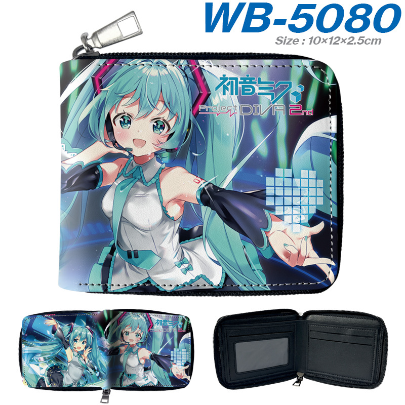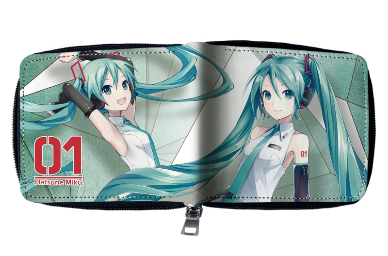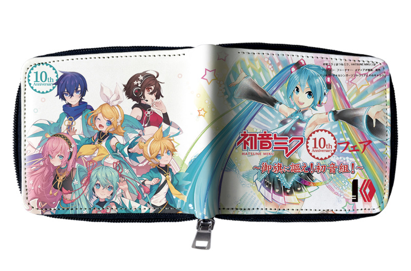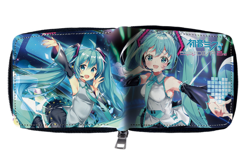 하츠네 미래 애니메이션 주변기기 짧은 지퍼 지갑 학생 애니메이션 접는 가죽 지갑 카드 가방 동전 지갑