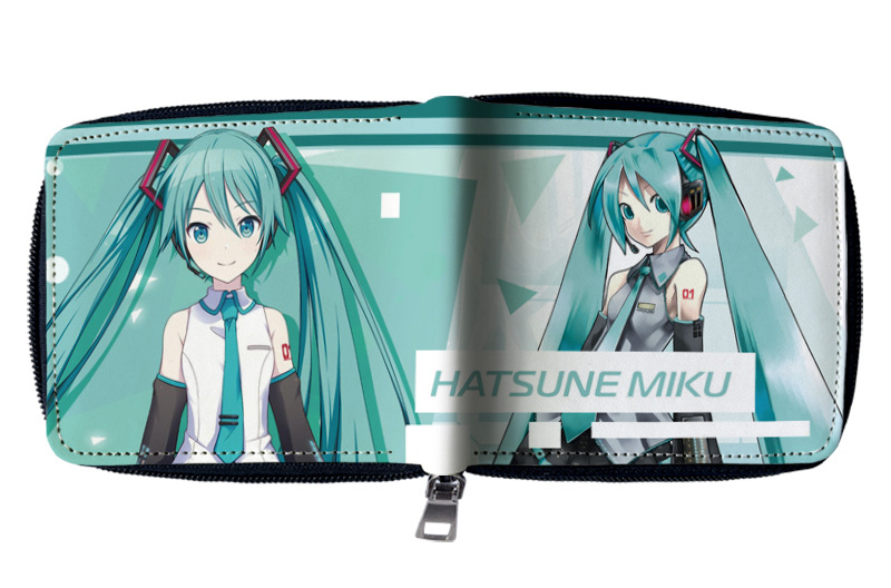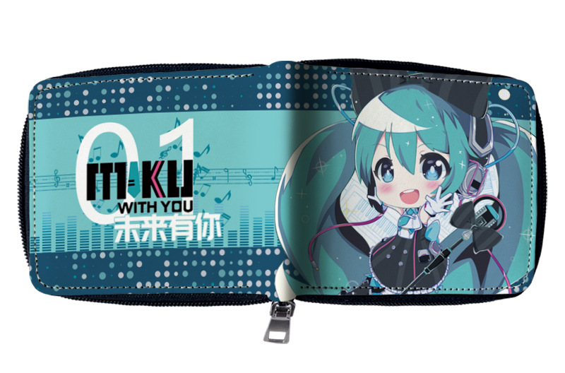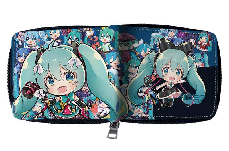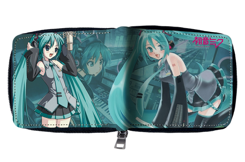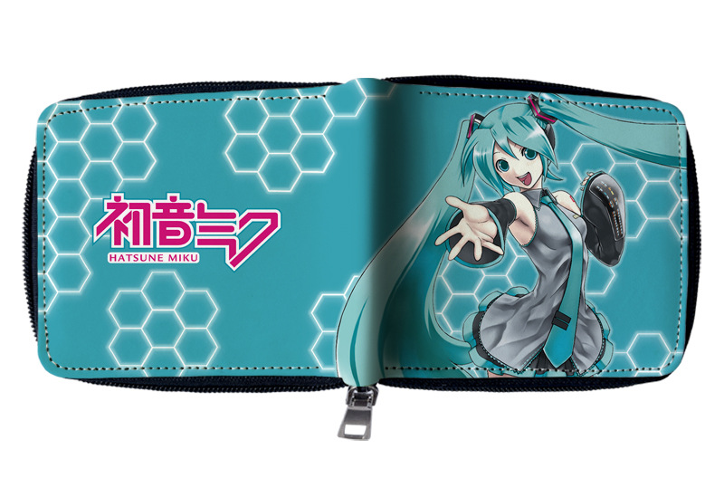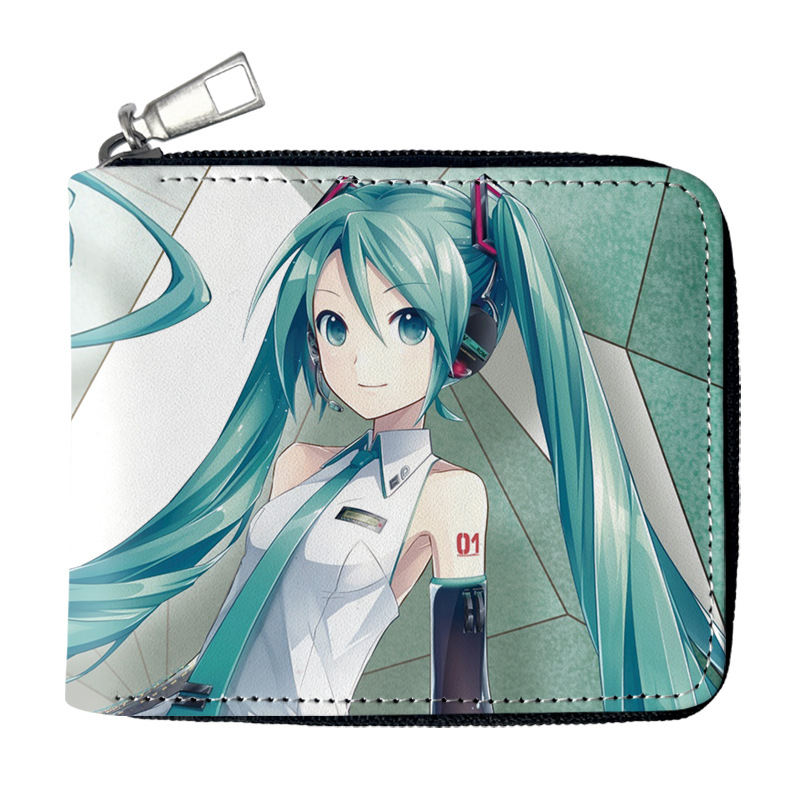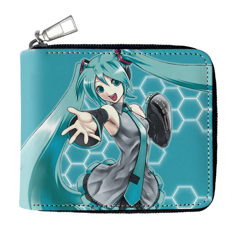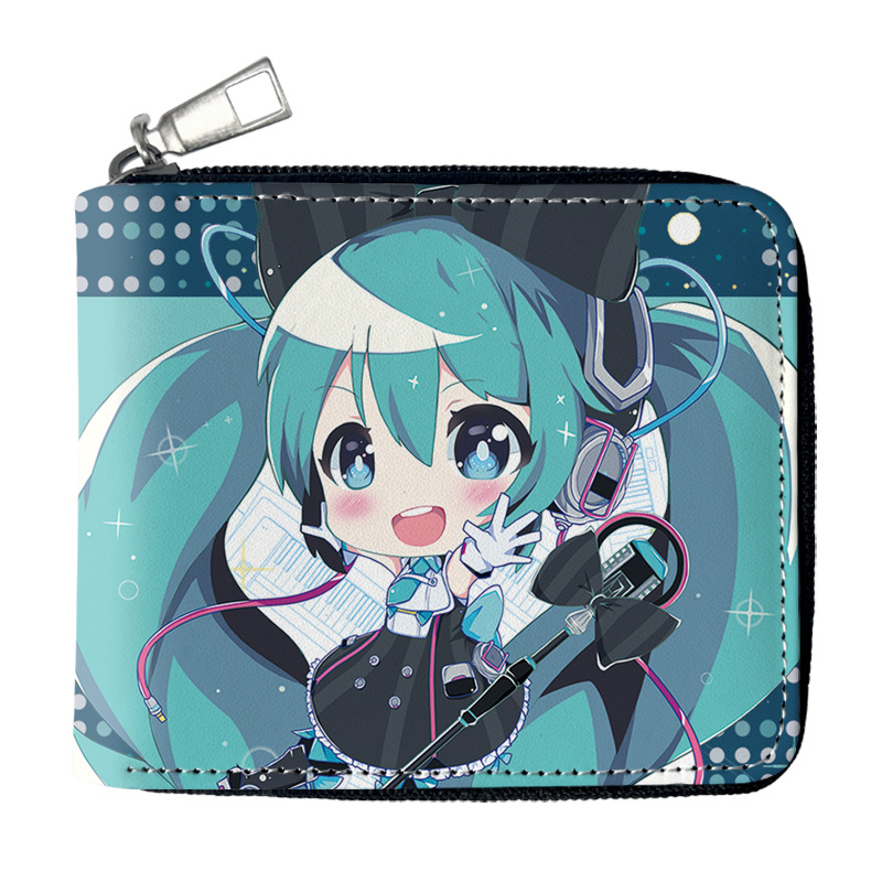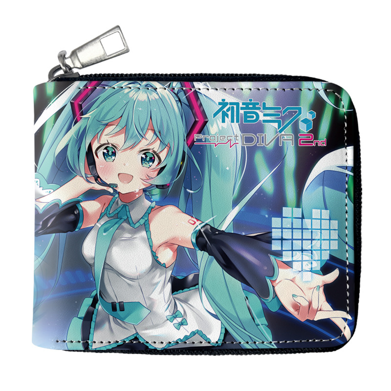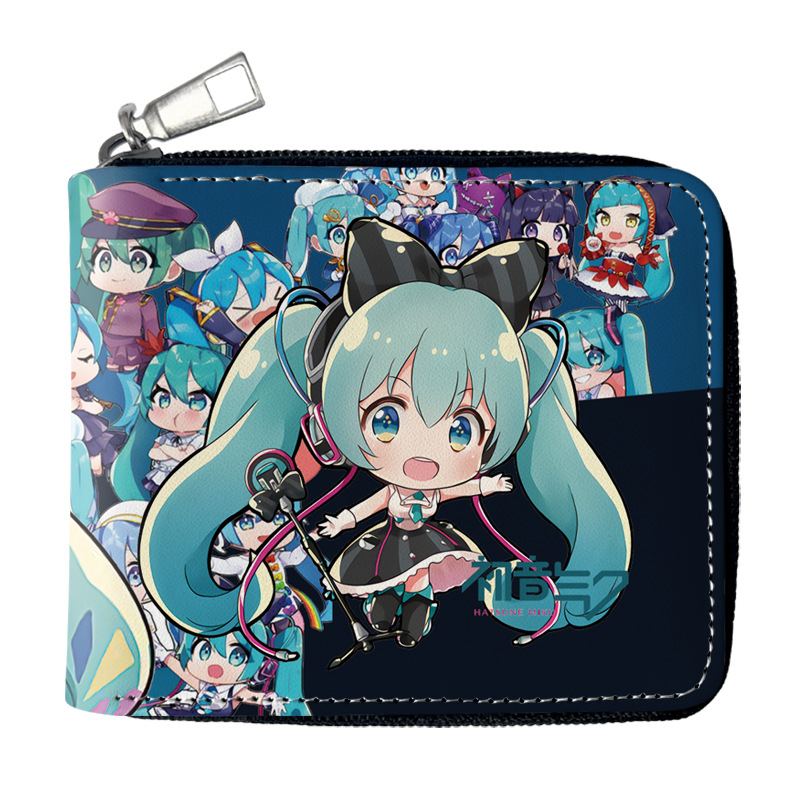 하츠네 미래 애니메이션 주변기기 짧은 지퍼 지갑 학생 애니메이션 접는 가죽 지갑 카드 가방 동전 지갑스토어 가기