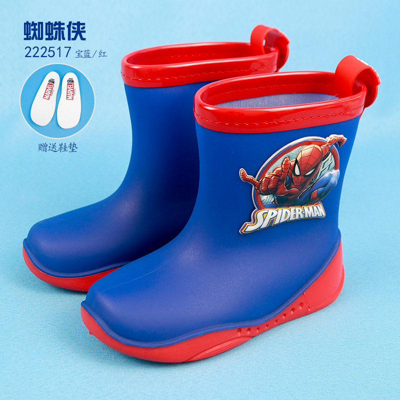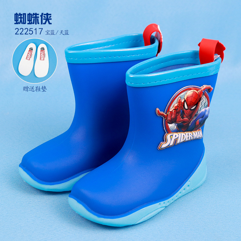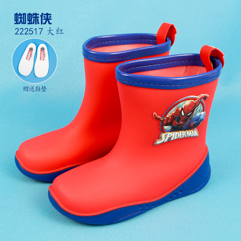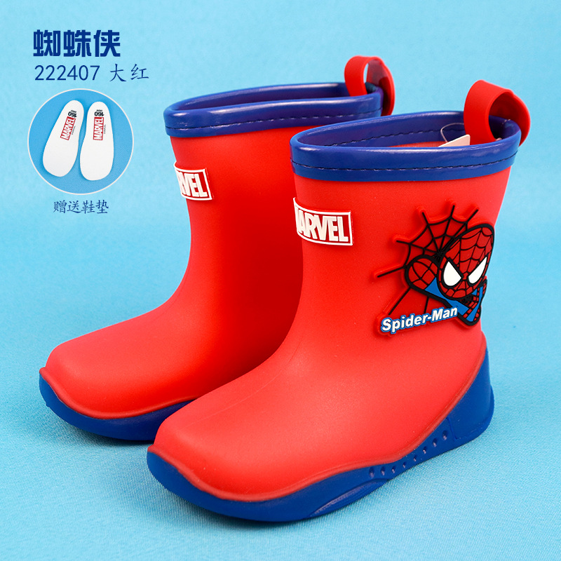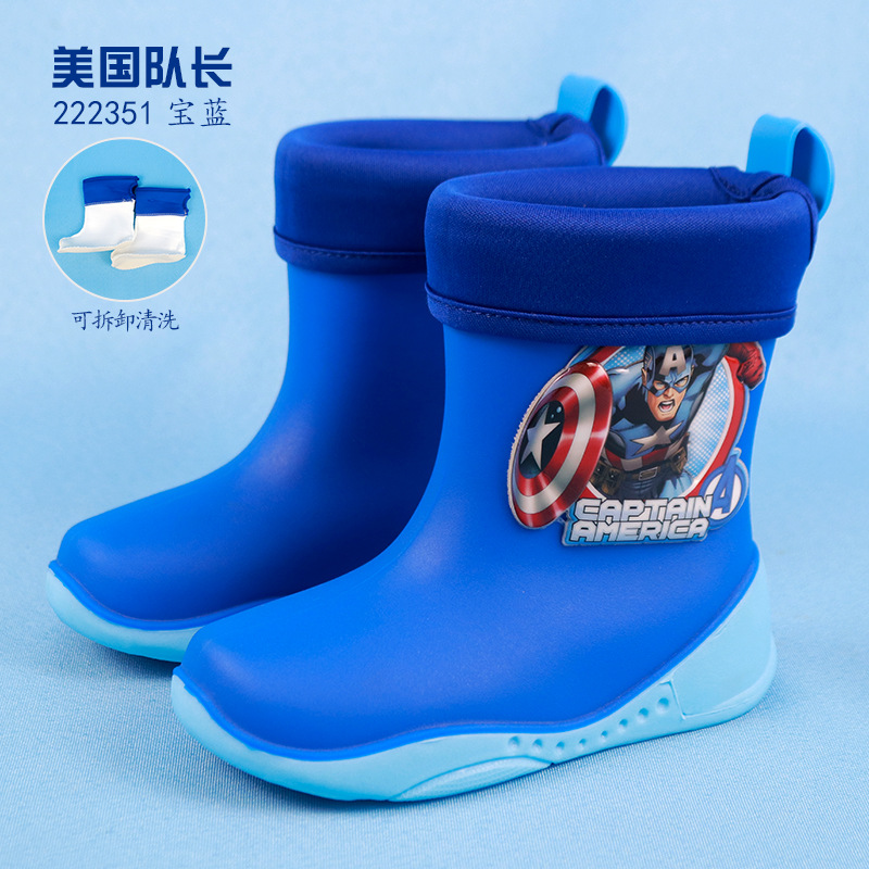 어린이 비 부츠 장화 소년 캡틴 아메리카 중간 실린더 미끄럼 방지 PVC 방수 분리 가능한 라이너 IV스토어 가기